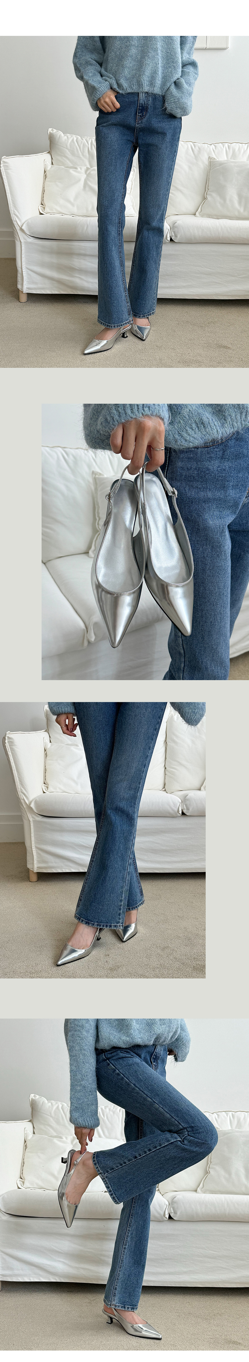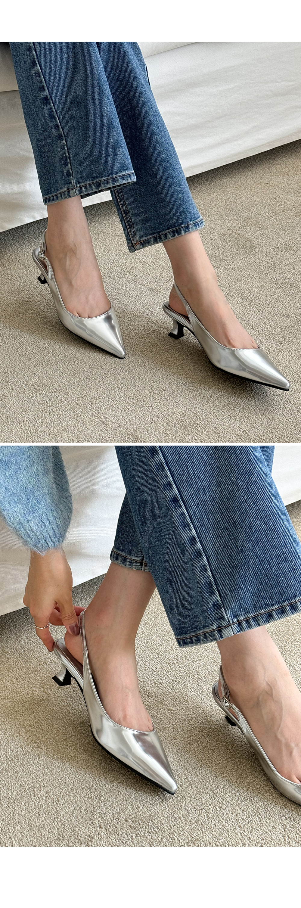 스틸레토 쉐입으로 여리여리하게 디자인하여 신었을때