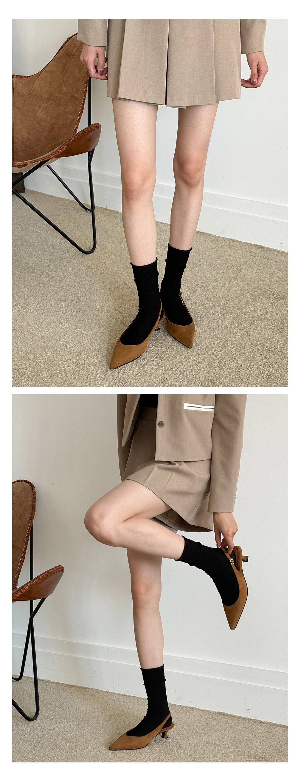 베이지 컬러는 스웨이드 소재로 제작했으며