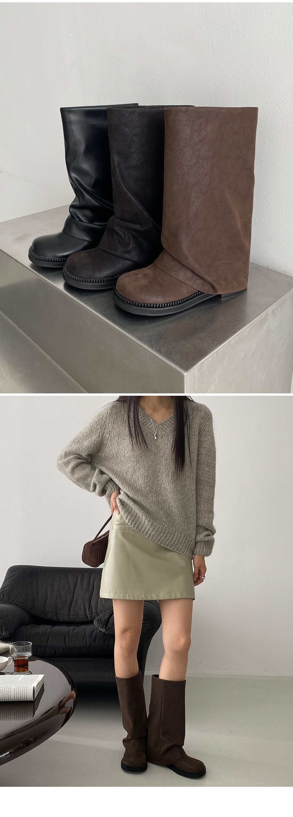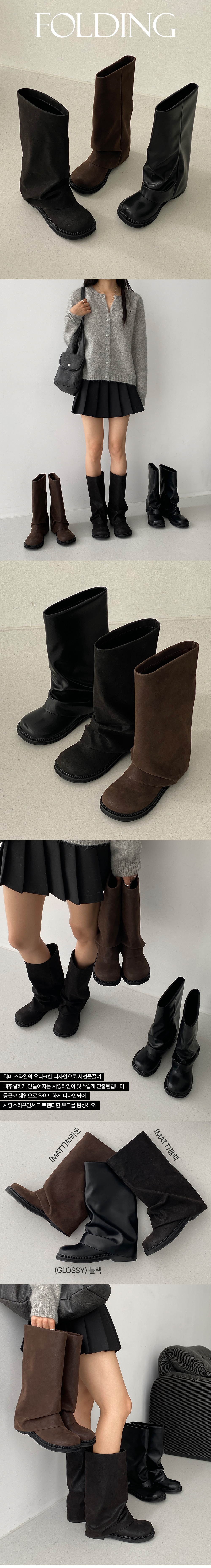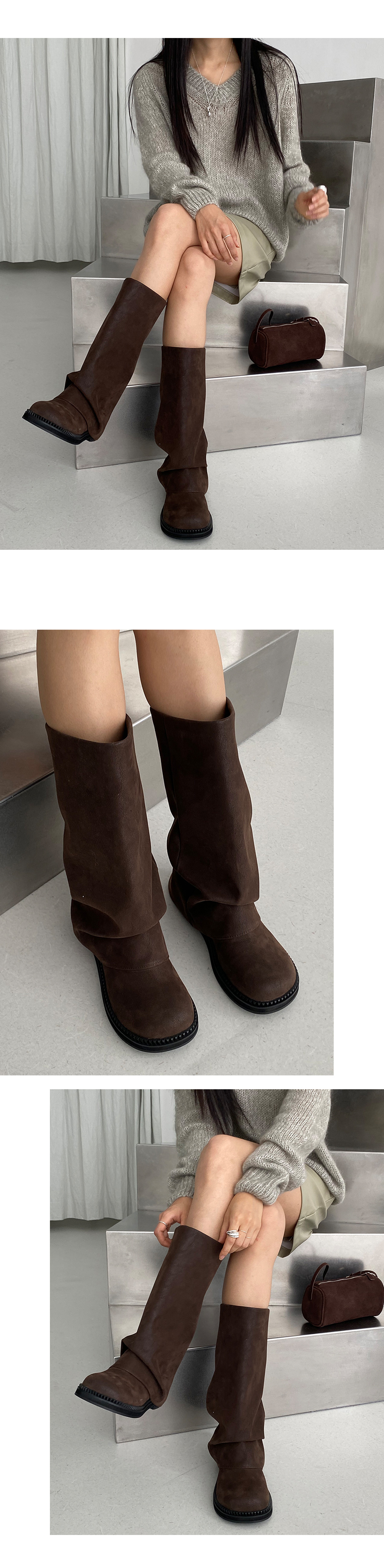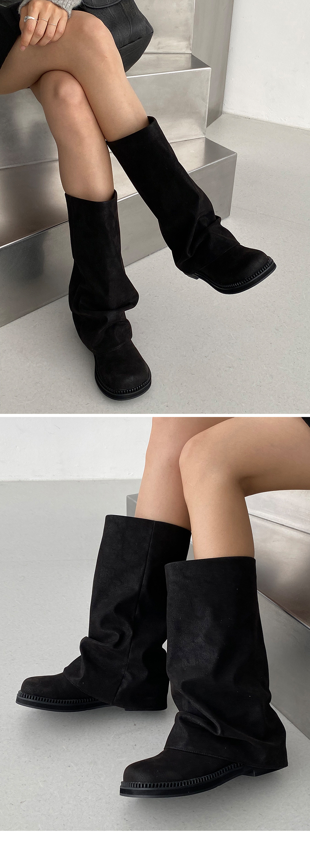 아잉 어글리 둥근코 와이드 셔링 워머 삭스 폴딩 미들 롱부츠