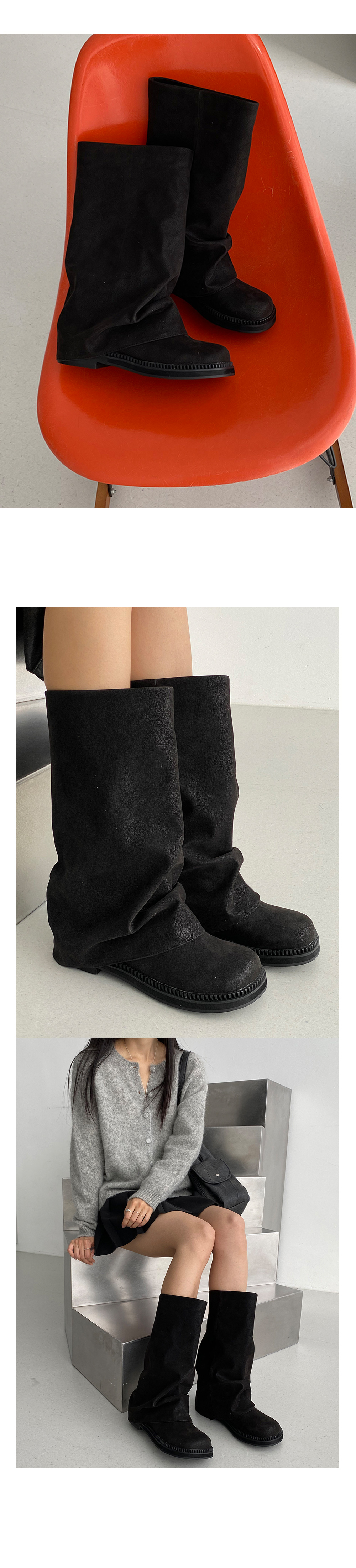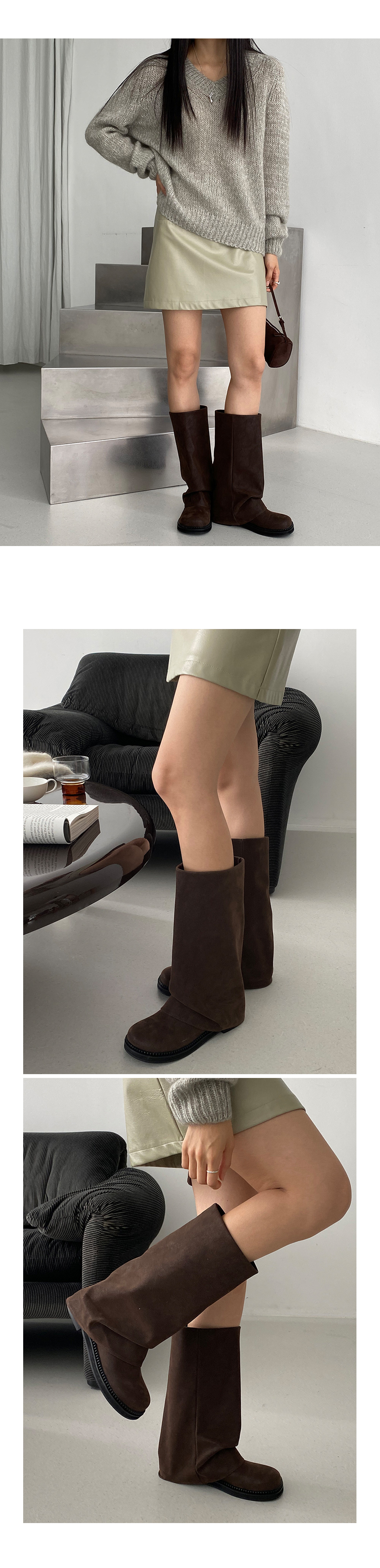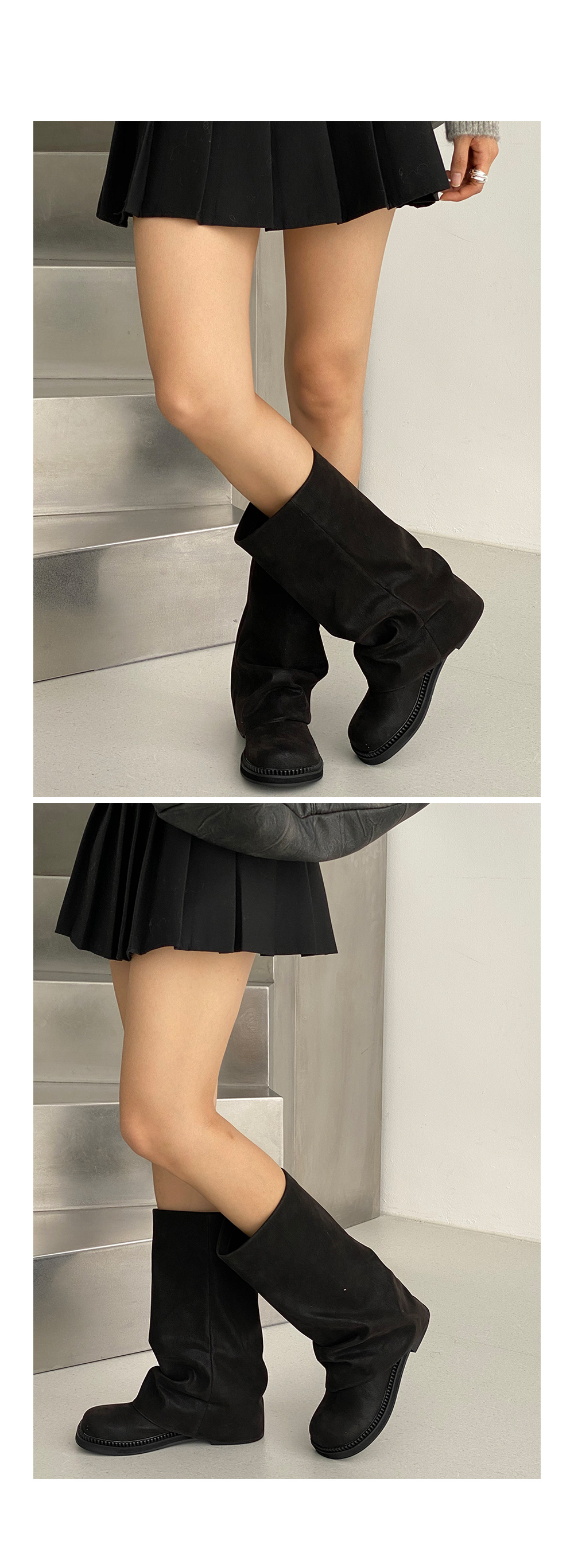 아잉 어글리 둥근코 와이드 셔링 워머 삭스 폴딩 미들 롱부츠