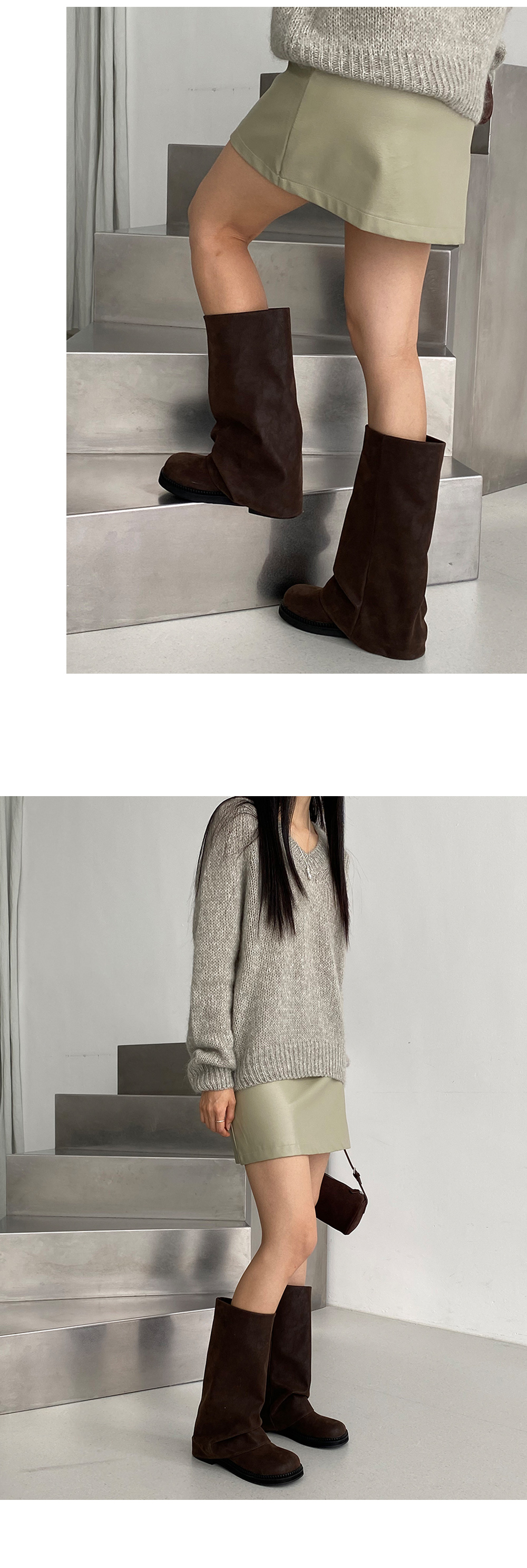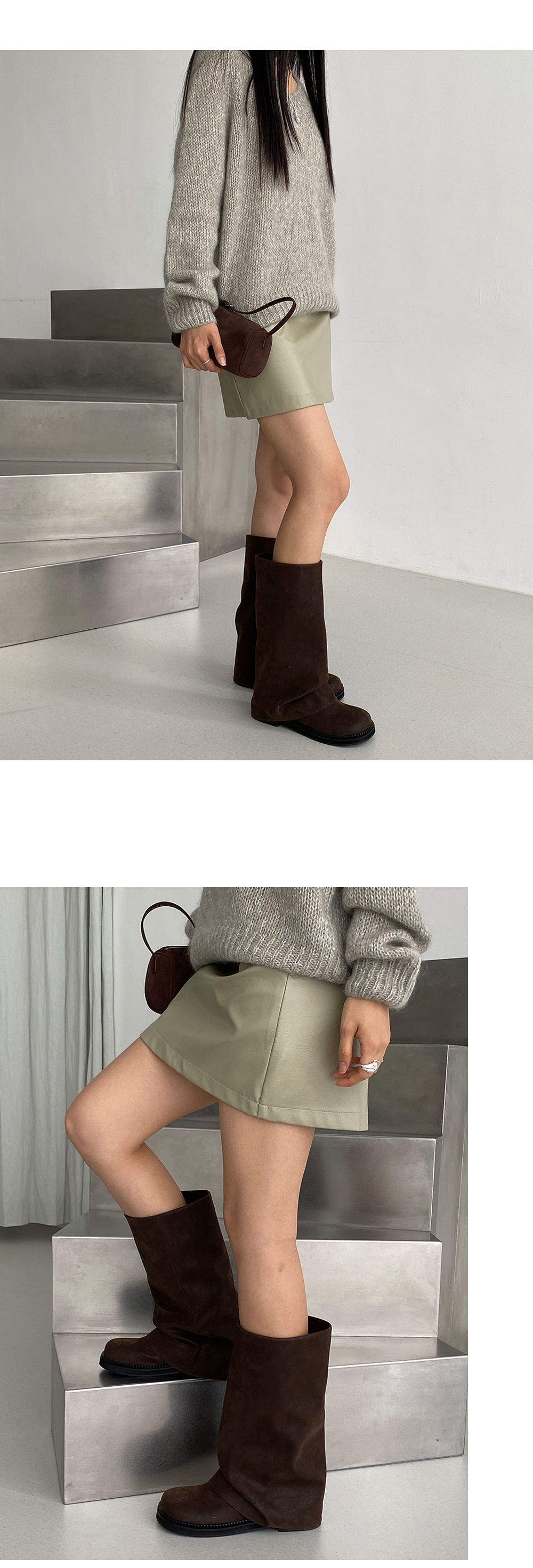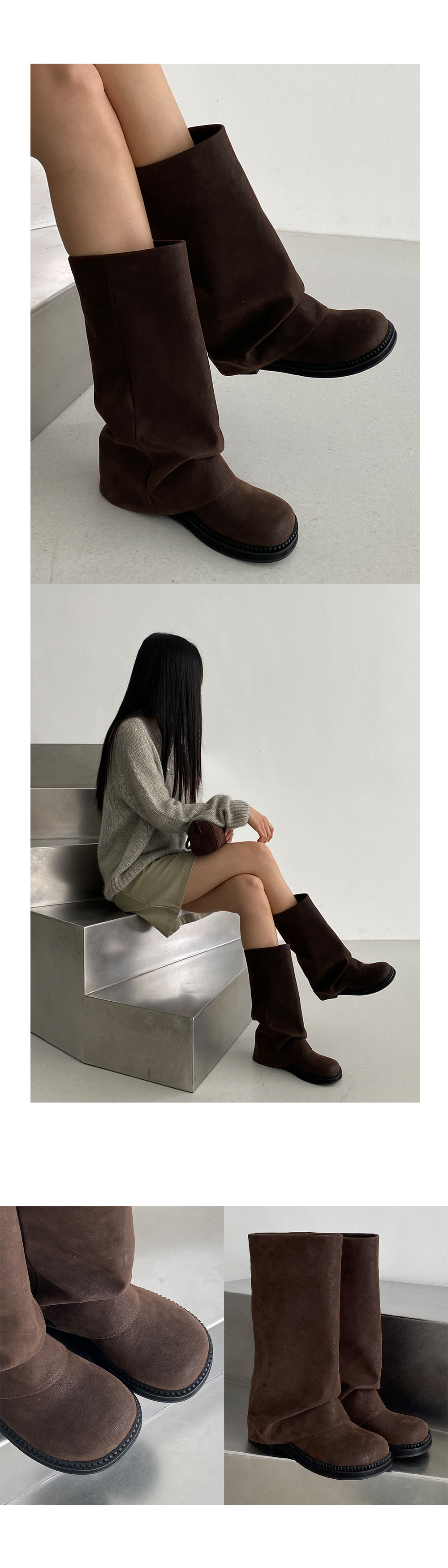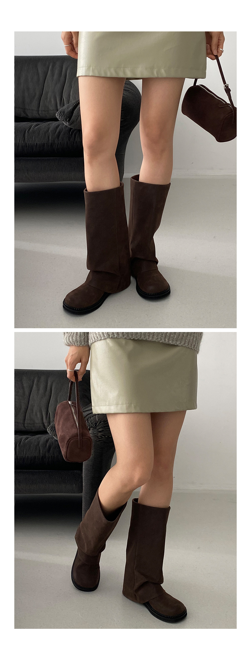 아잉 어글리 둥근코 와이드 셔링 워머 삭스 폴딩 미들 롱부츠