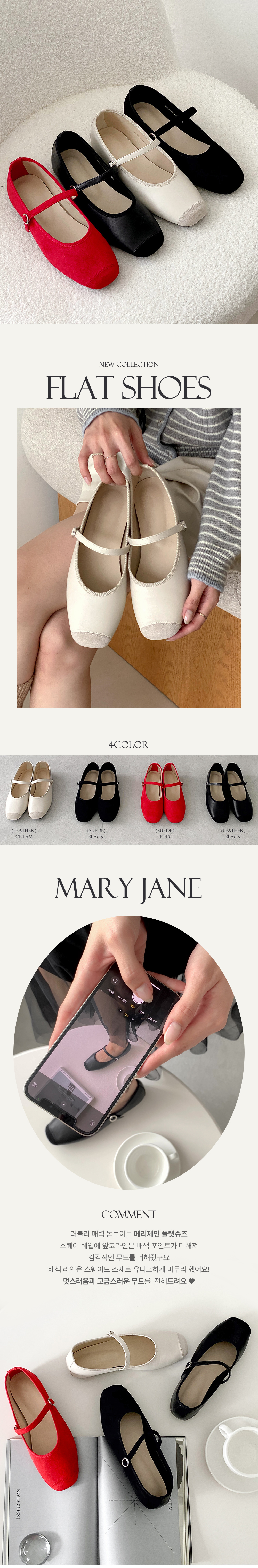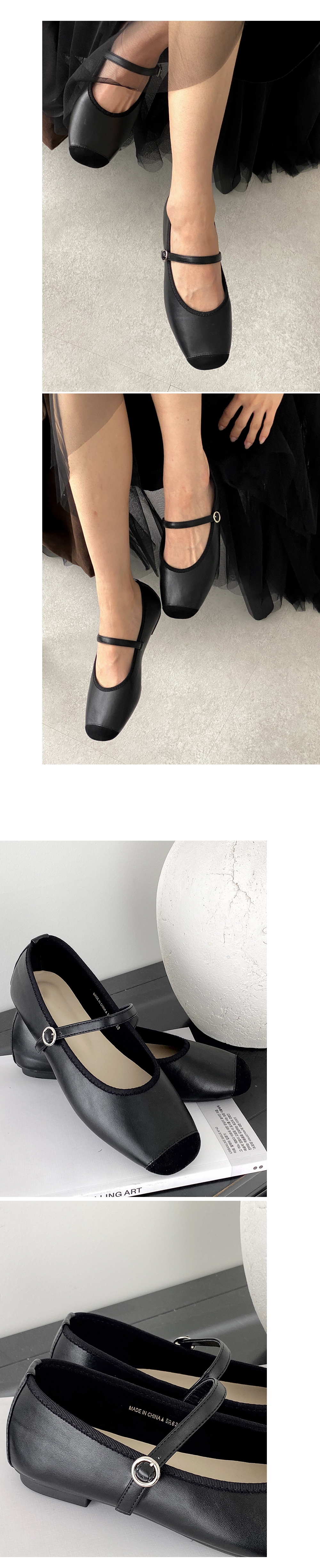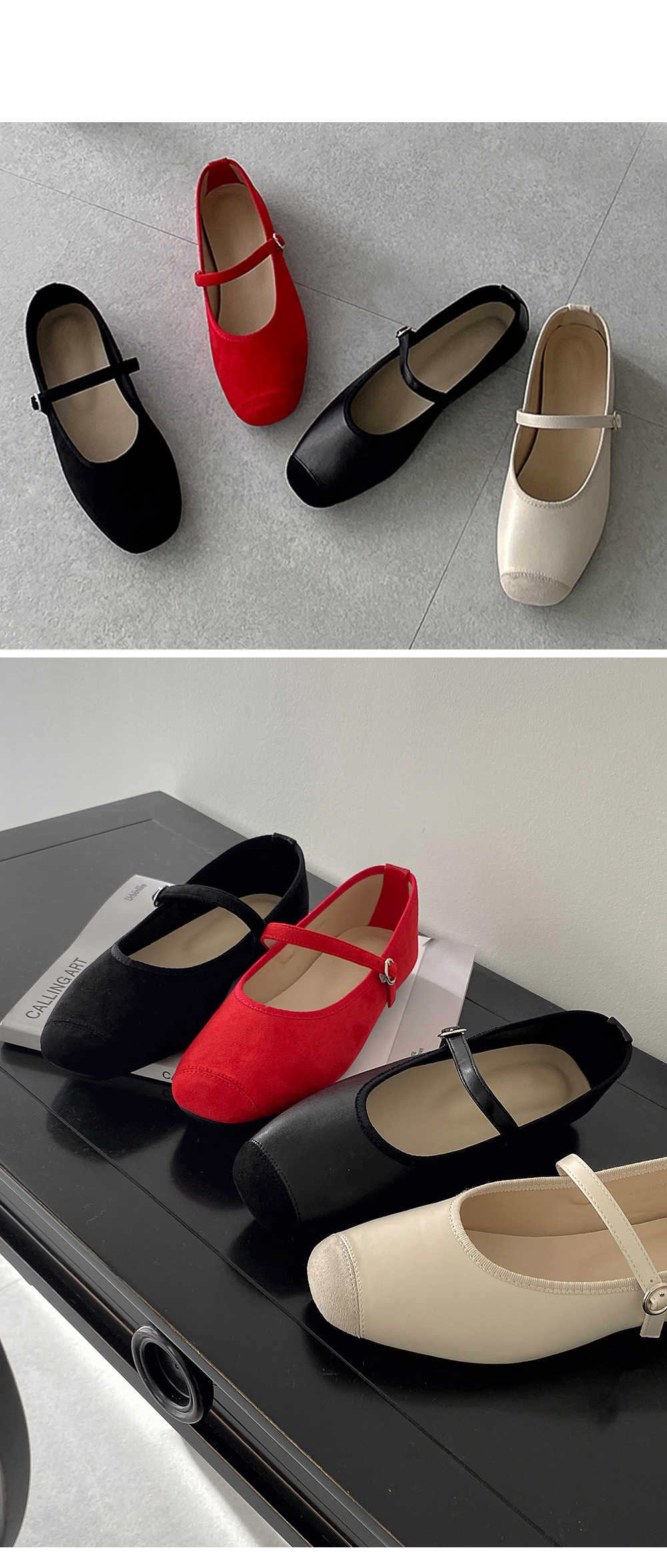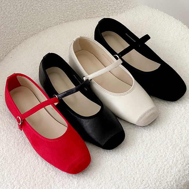 더몬 스퀘어 스웨이드 콤비 버클 메리제인 단화 플랫슈즈