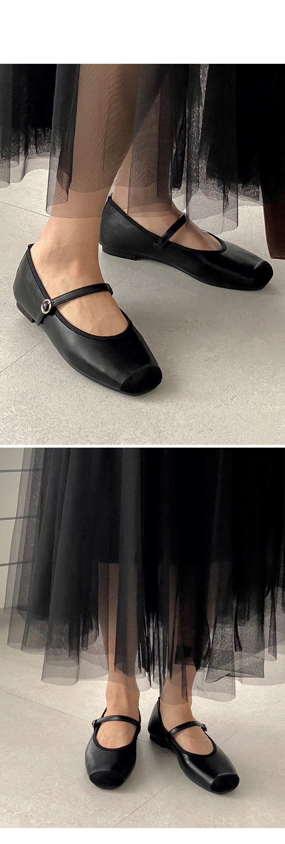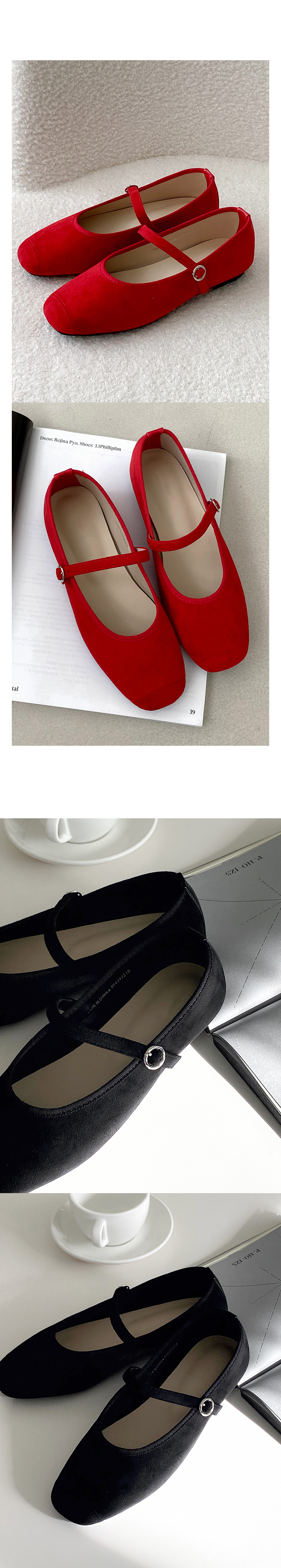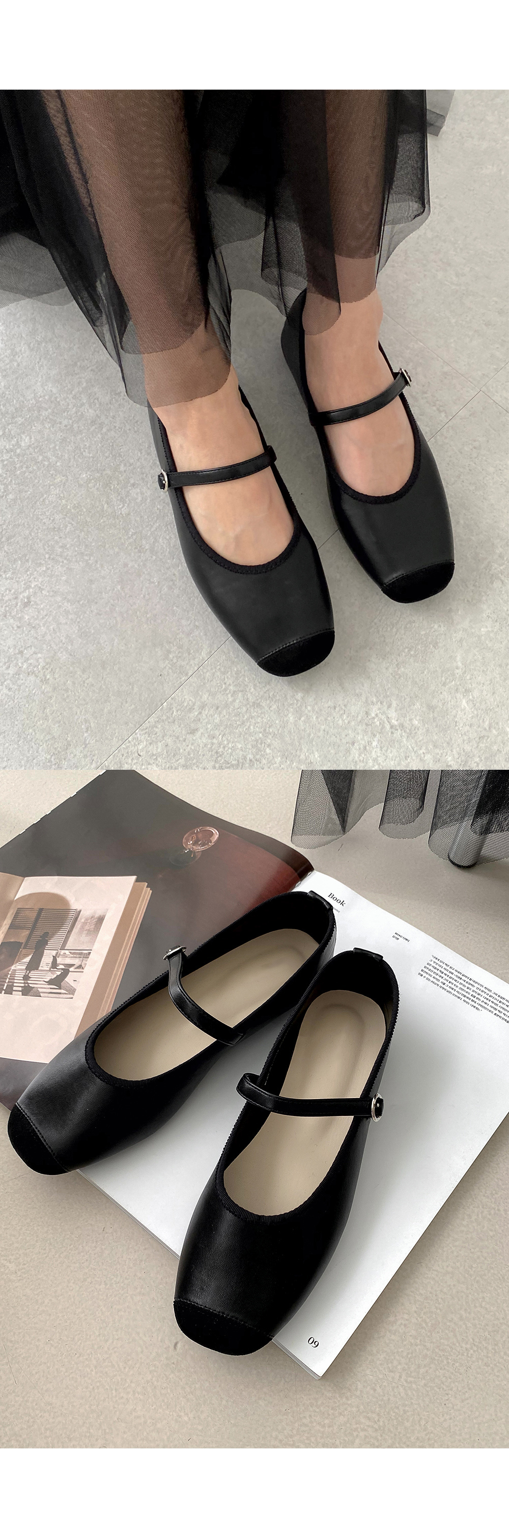 더몬 스퀘어 스웨이드 콤비 버클 메리제인 단화 플랫슈즈