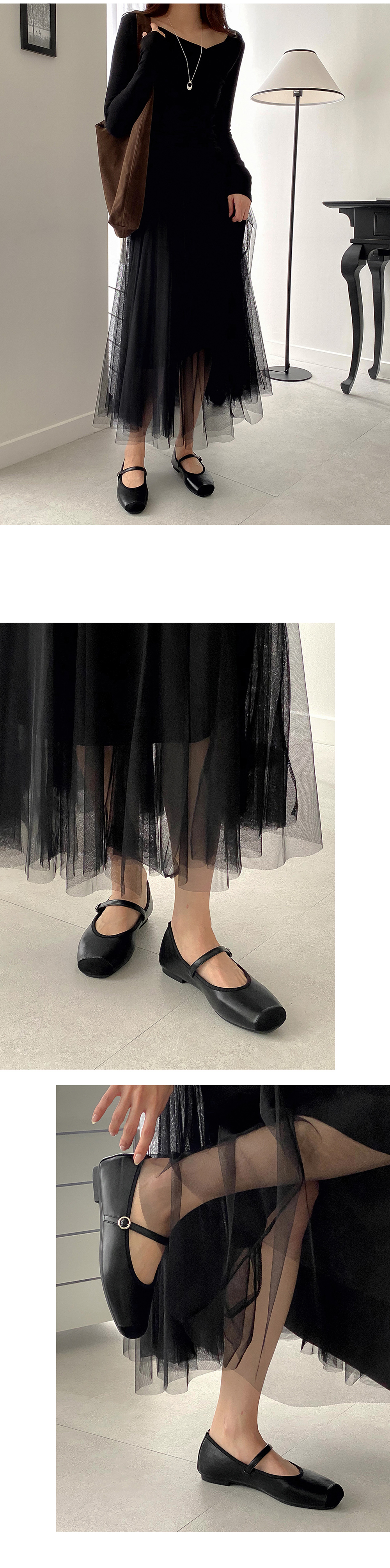 심플한 무드에 메리제인 버클 스트랩으로 마무리해 사랑스러움이 물씬~