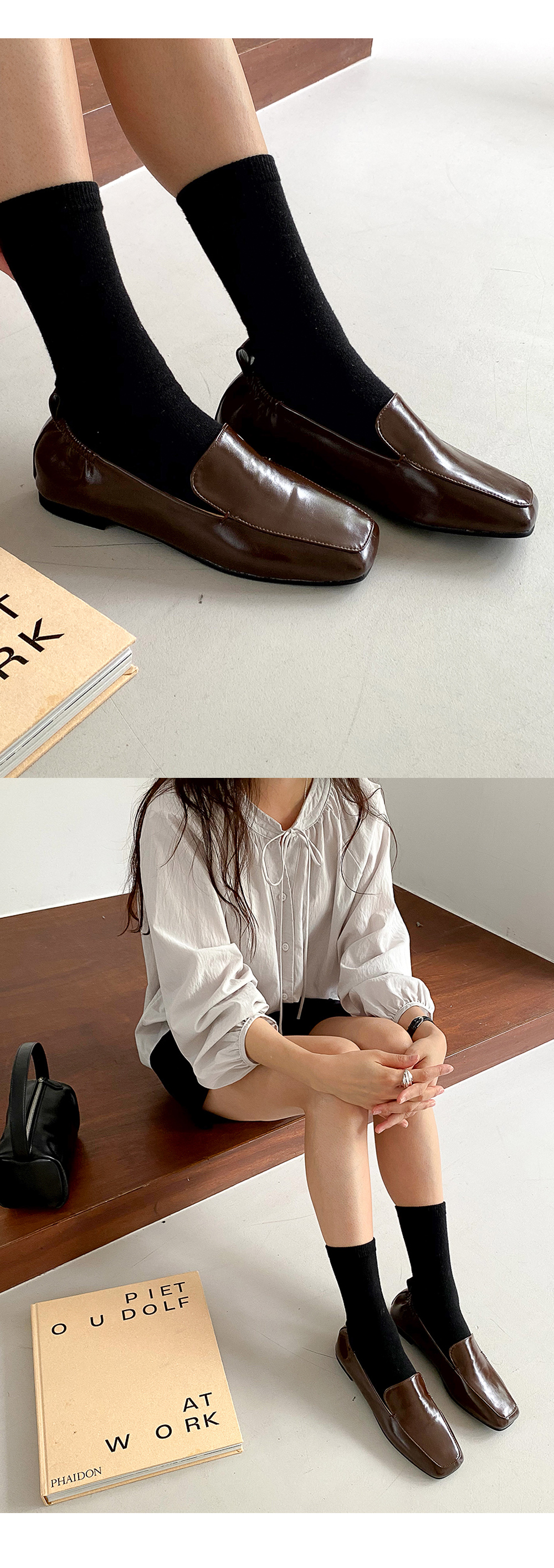 뮤즈 발편한 라텍스 스퀘어 밴딩 플랫 로퍼