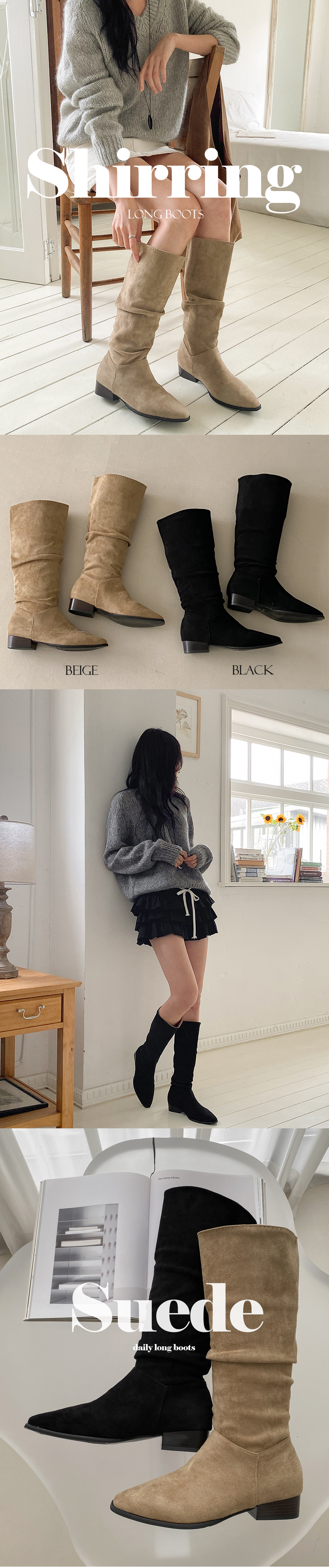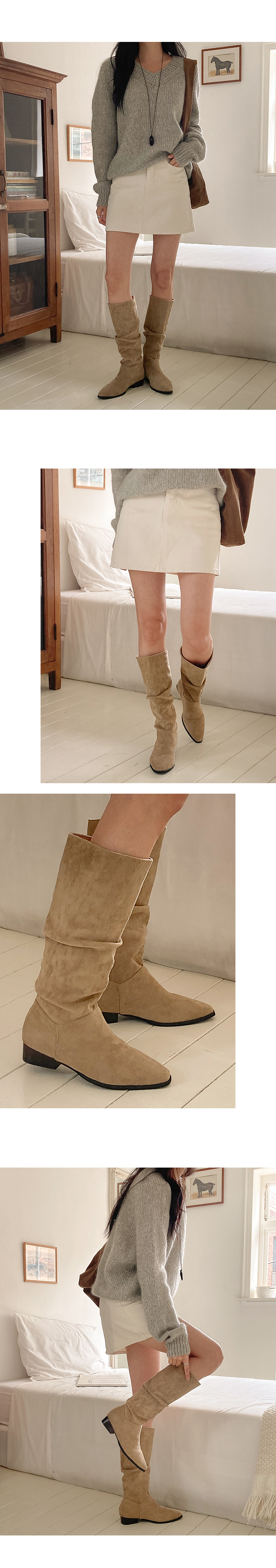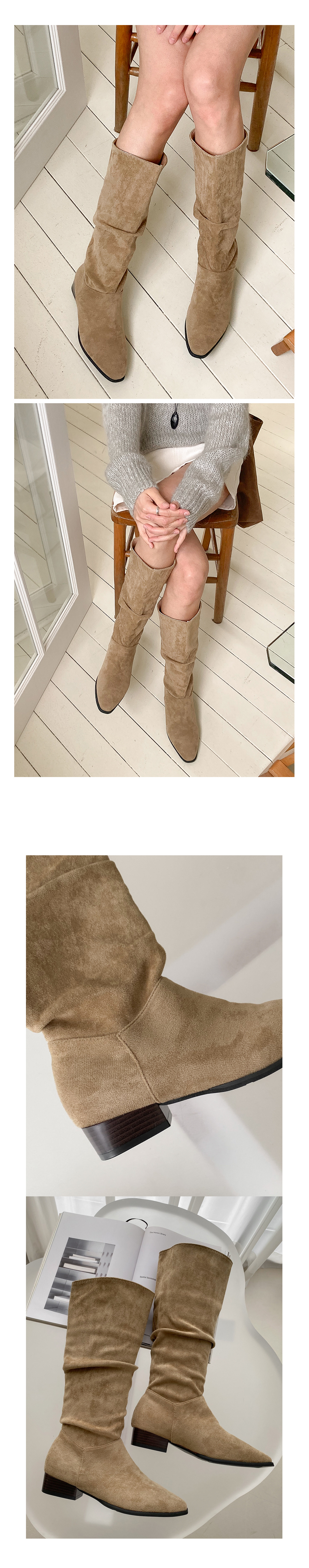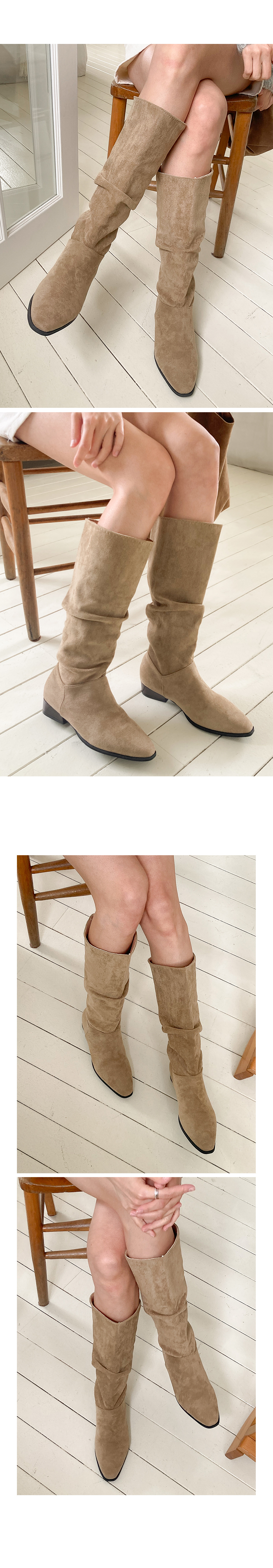 아르이 스웨이드 슬라우치 주름 셔링 롱부츠