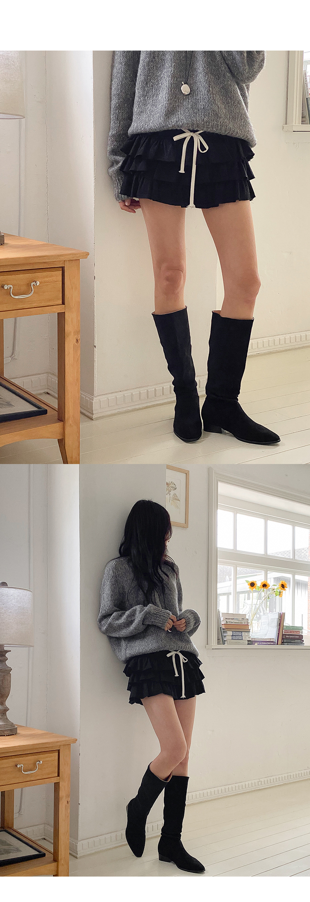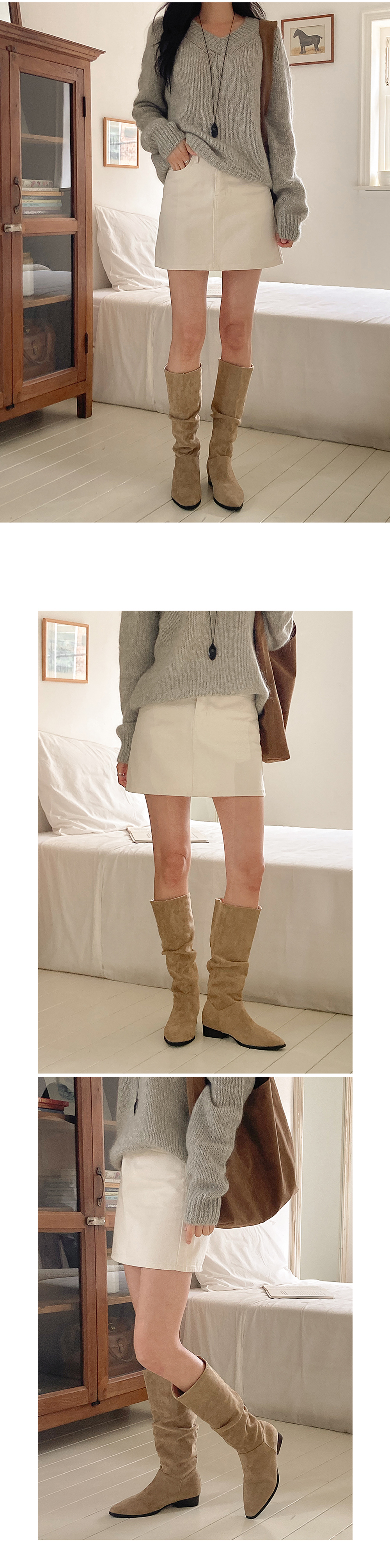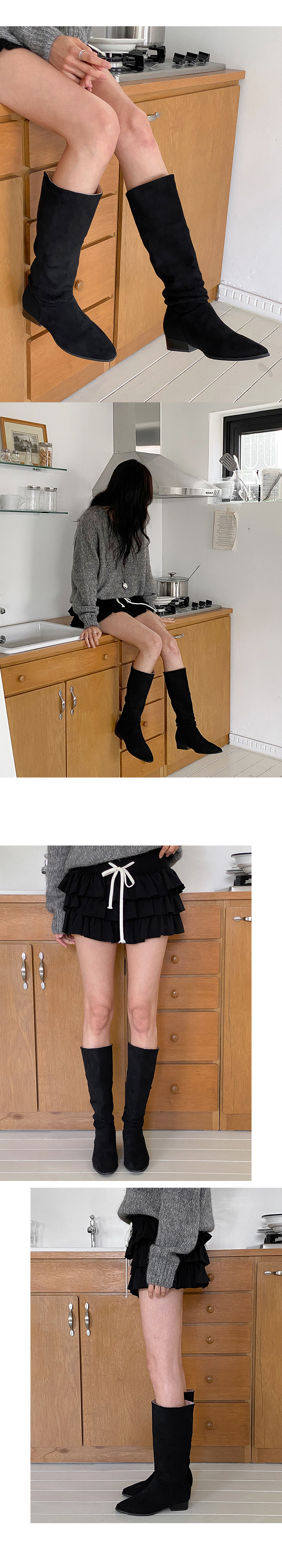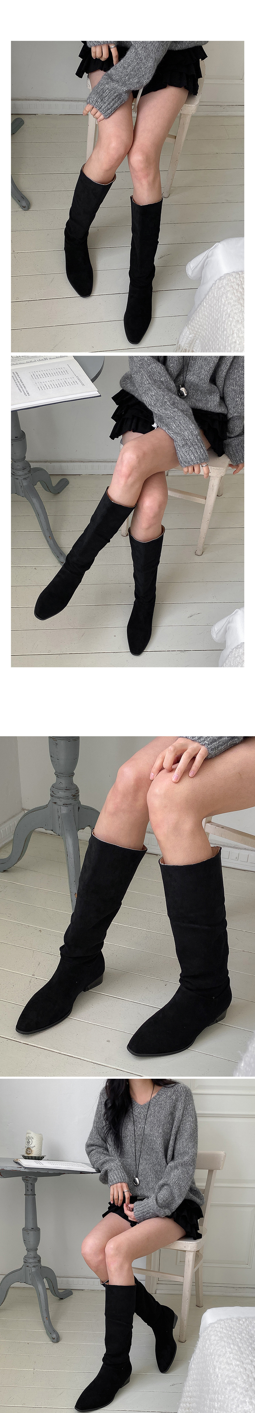 아르이 스웨이드 슬라우치 주름 셔링 롱부츠