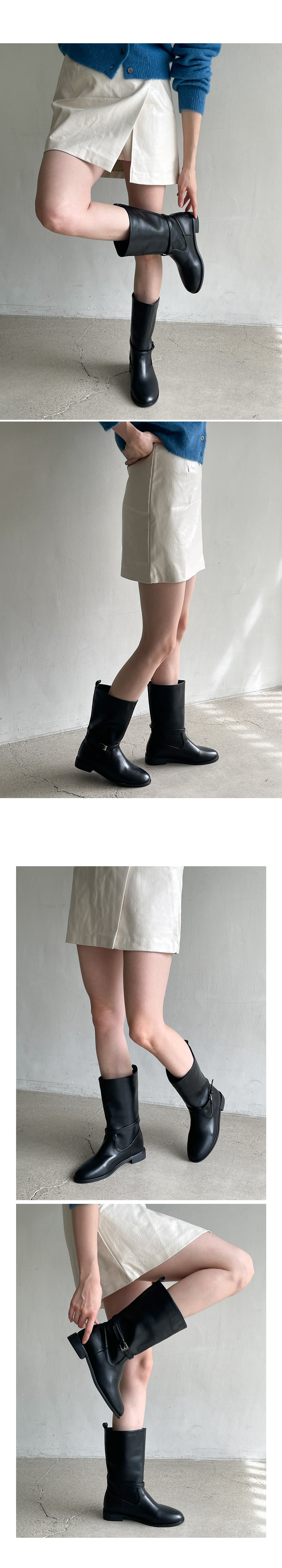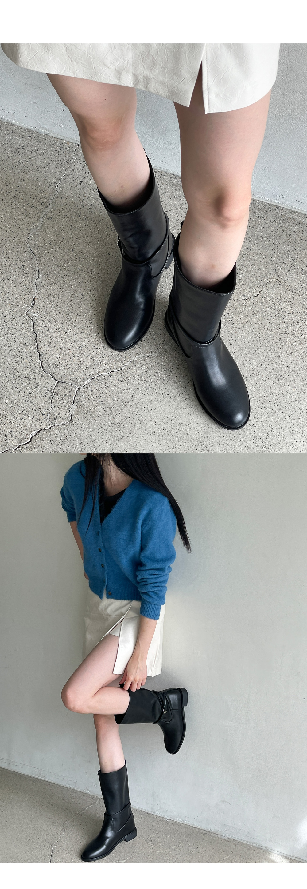 고인트 통넓은부츠 버클 벨트 하프 미들부츠