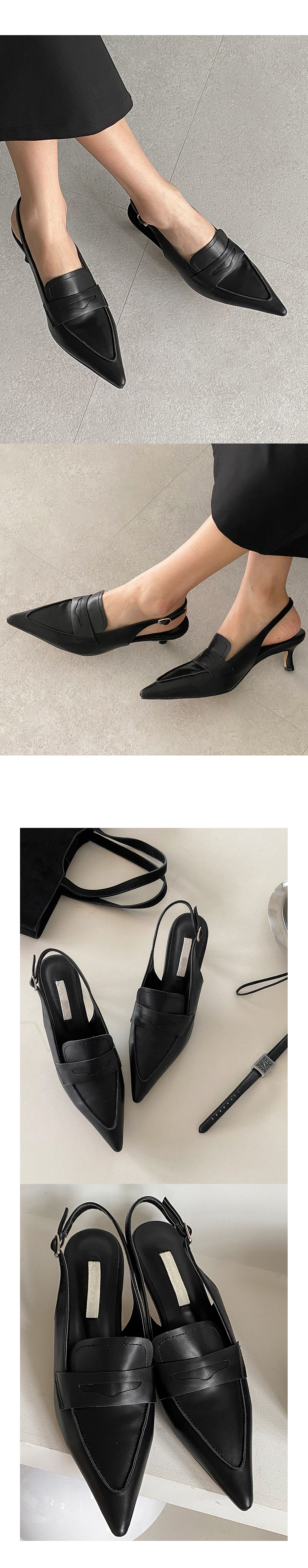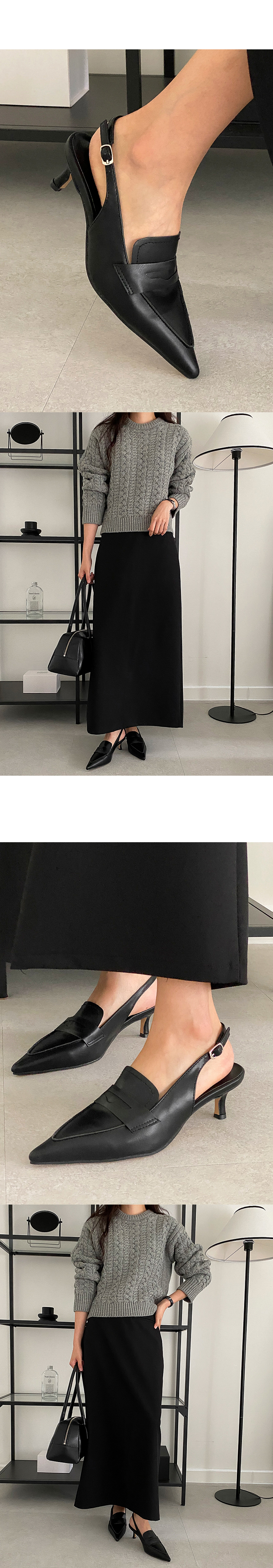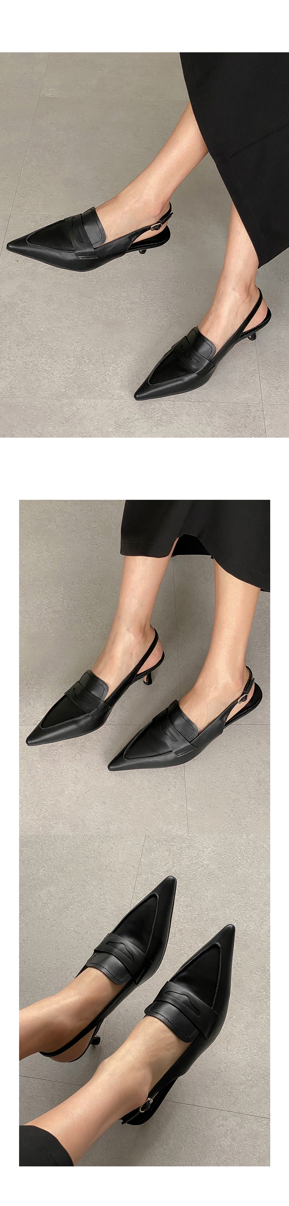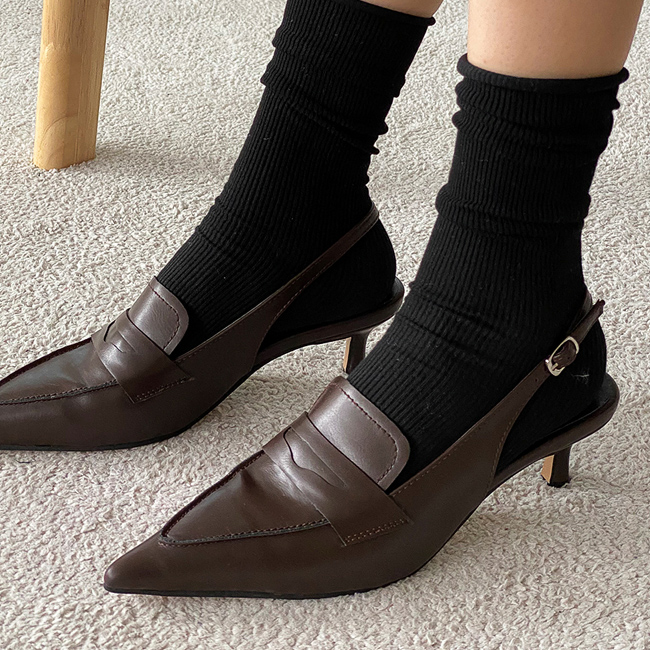 그라츠 스틸레토 미들굽 로퍼 커튼힐 슬링백 힐