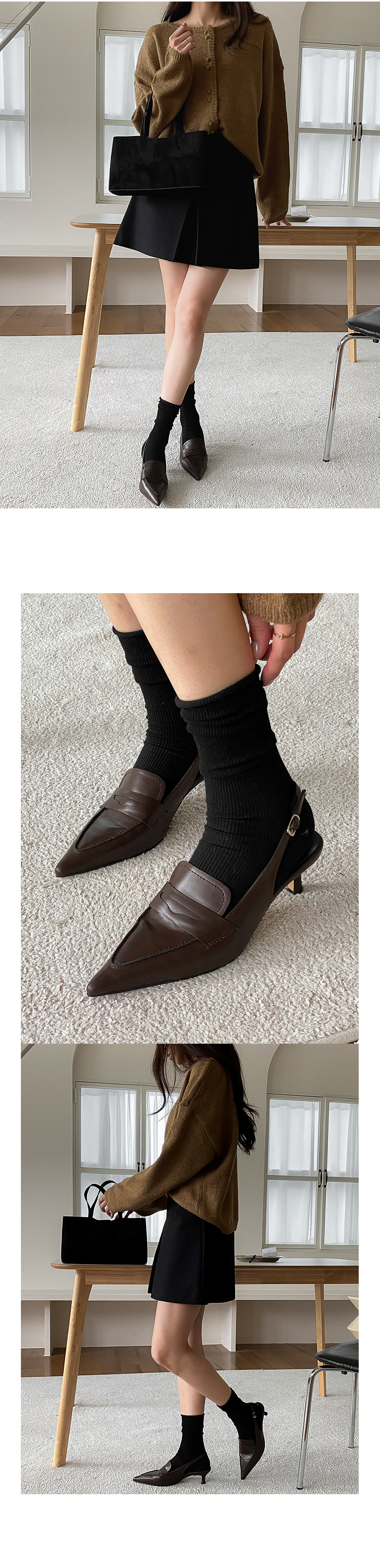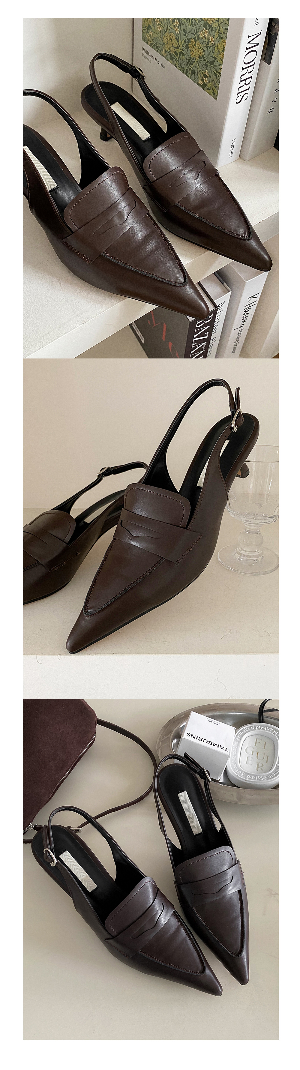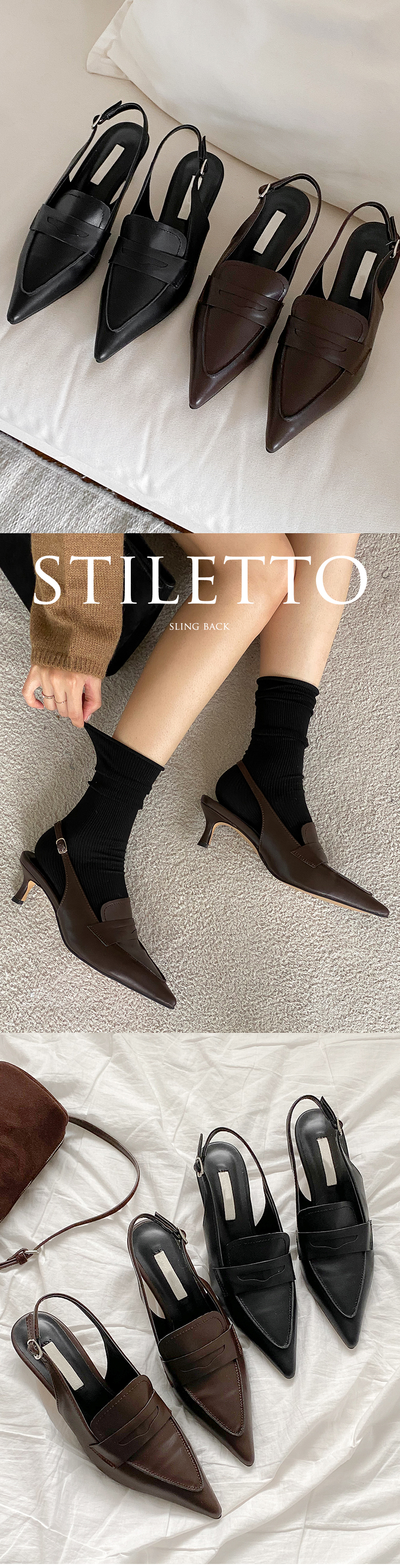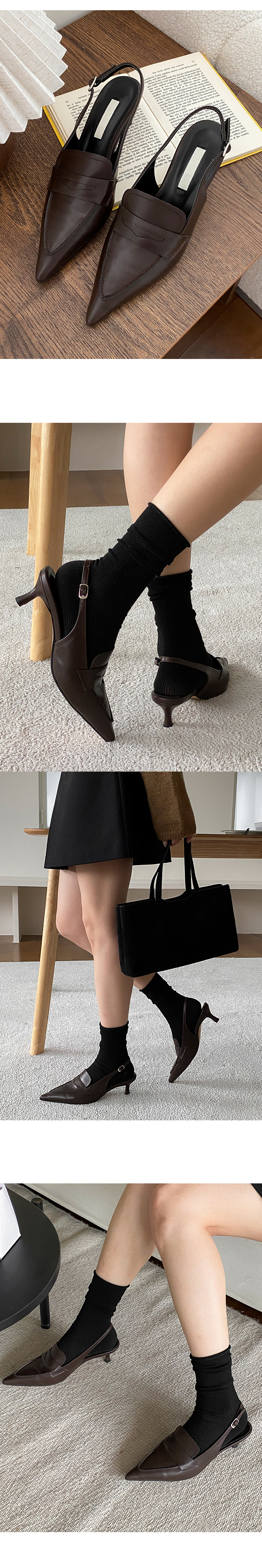 그라츠 스틸레토 미들굽 로퍼 커튼힐 슬링백 힐