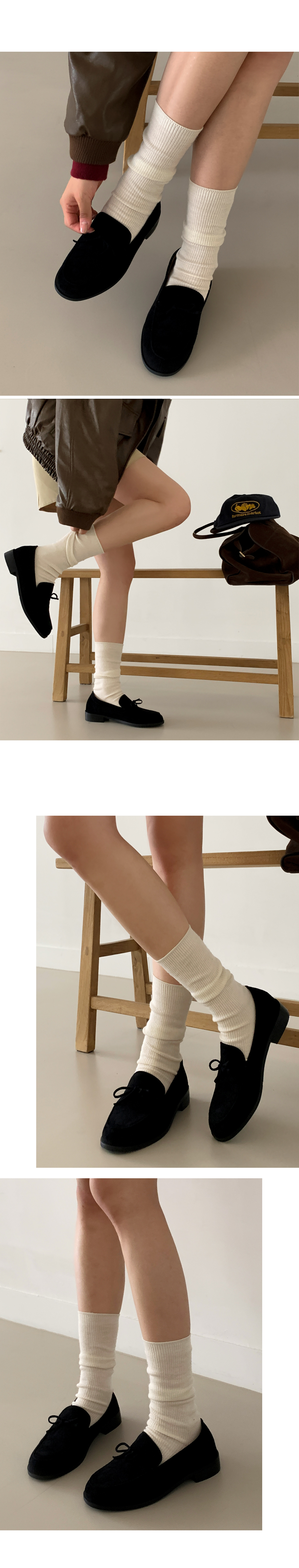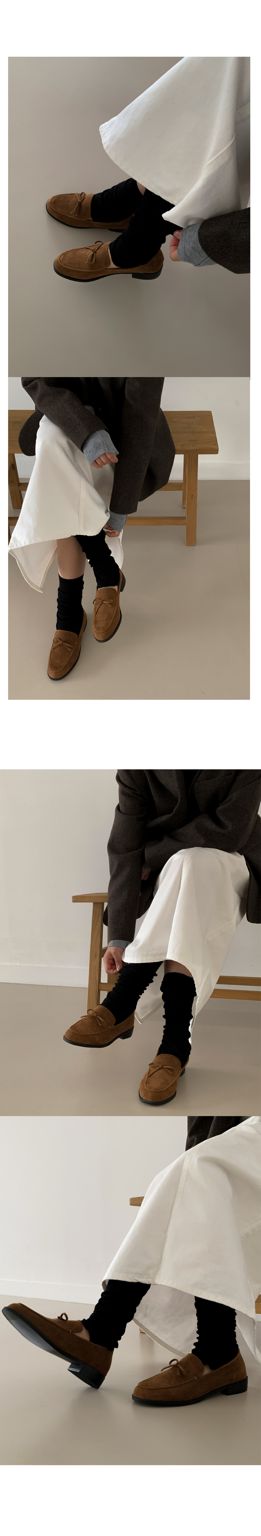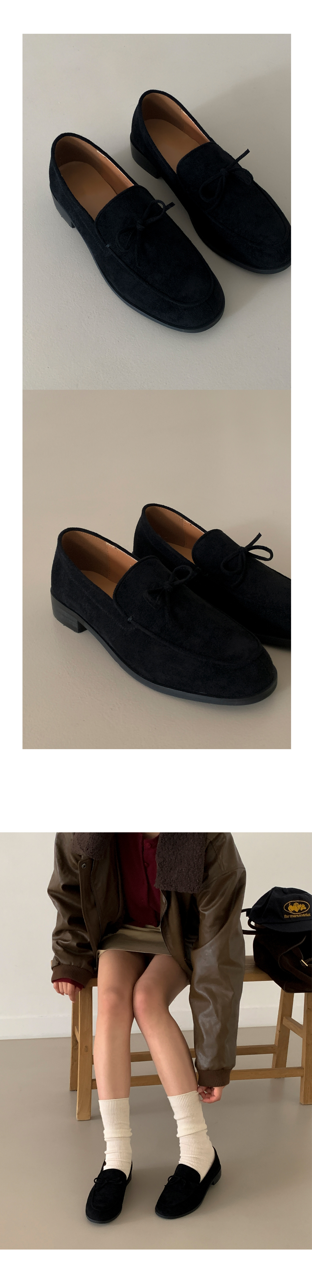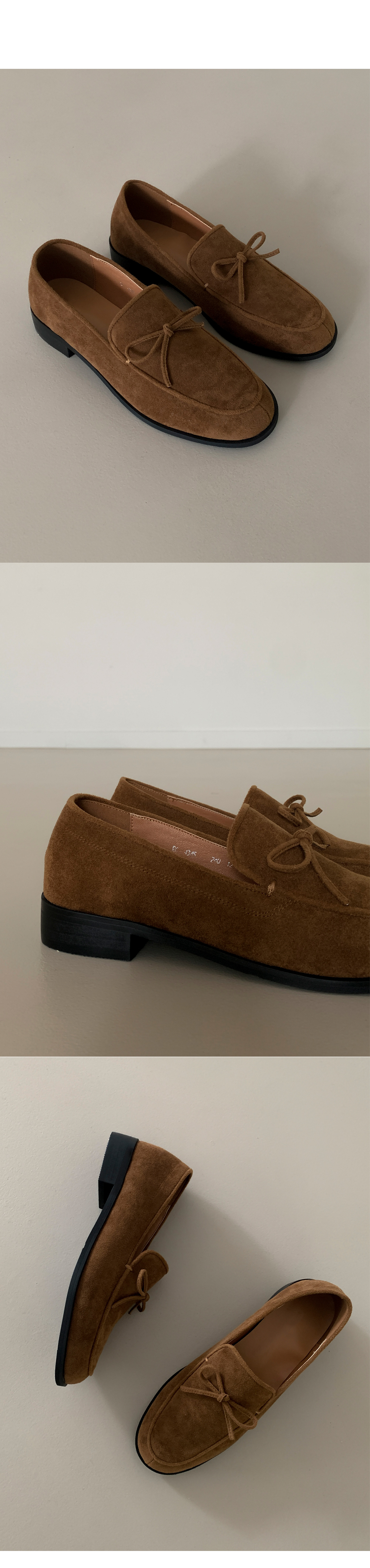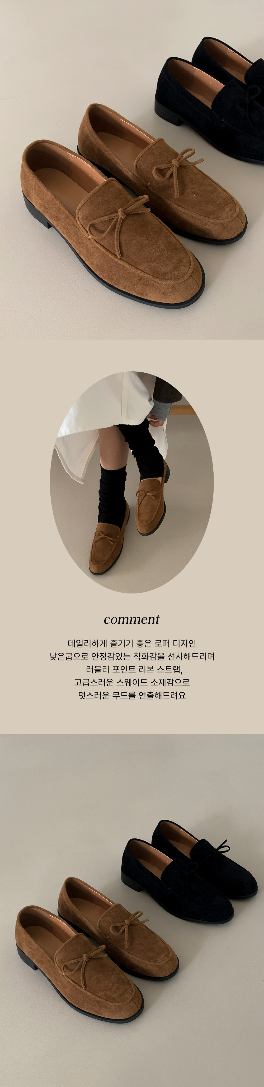 브렌토 모던 둥근코 리본 스웨이드 로퍼
