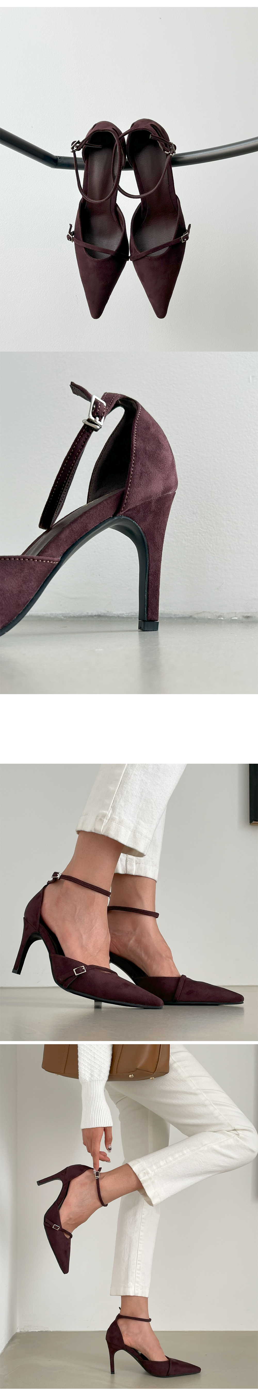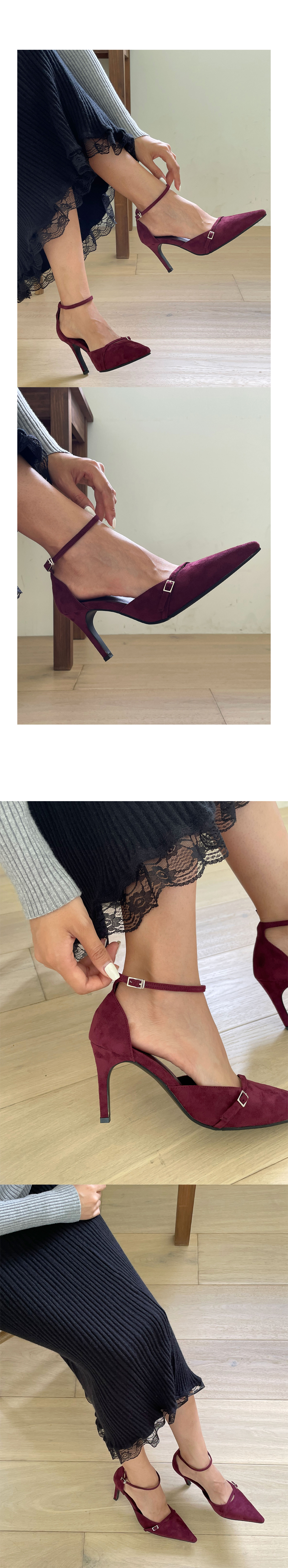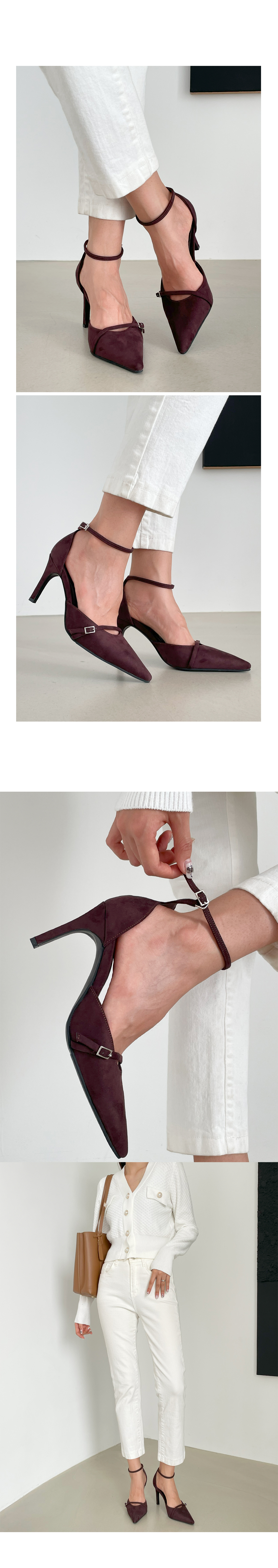 [하객룩✨구두] 덴 스웨이드 스틸레토 버클 발목스트랩 펌프스 힐