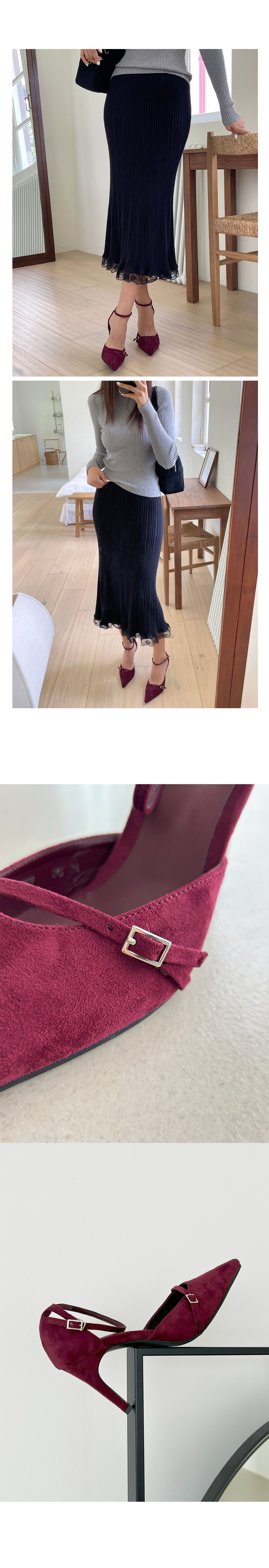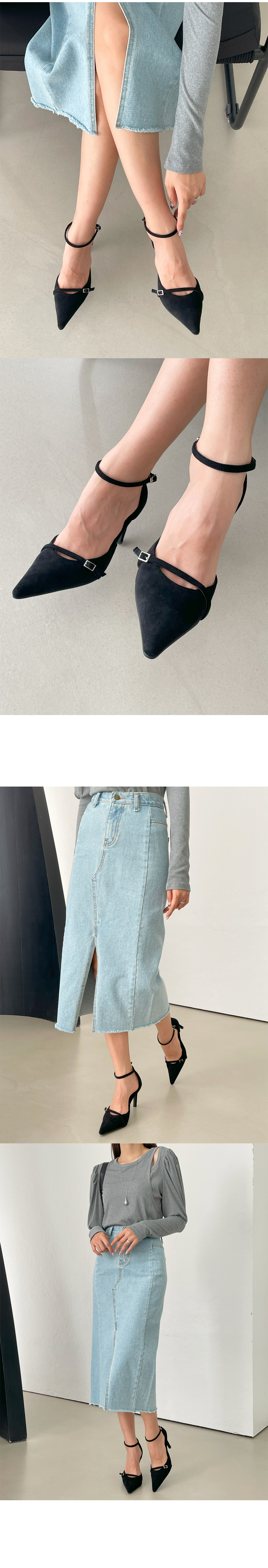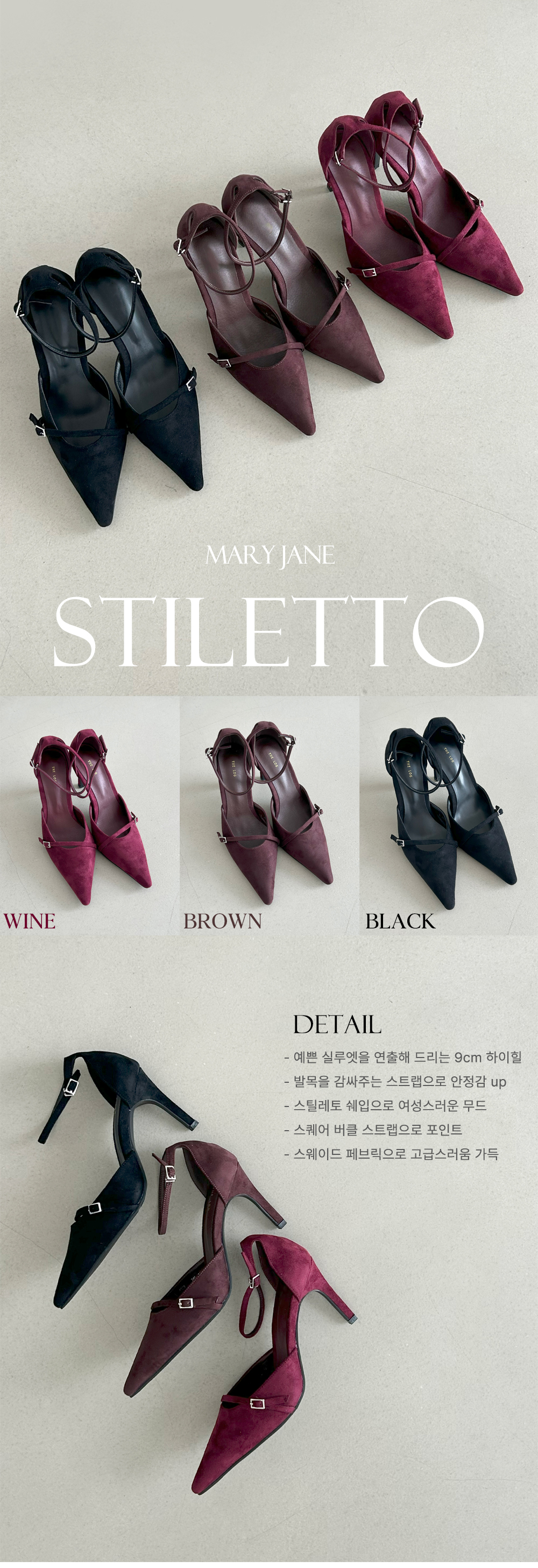 [하객룩✨구두] 덴 스웨이드 스틸레토 버클 발목스트랩 펌프스 힐