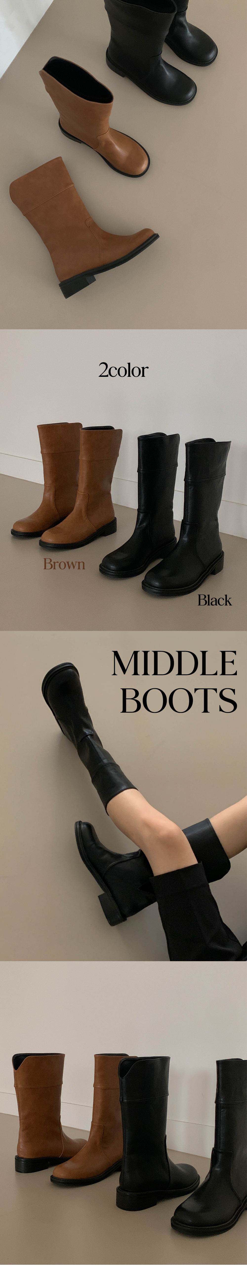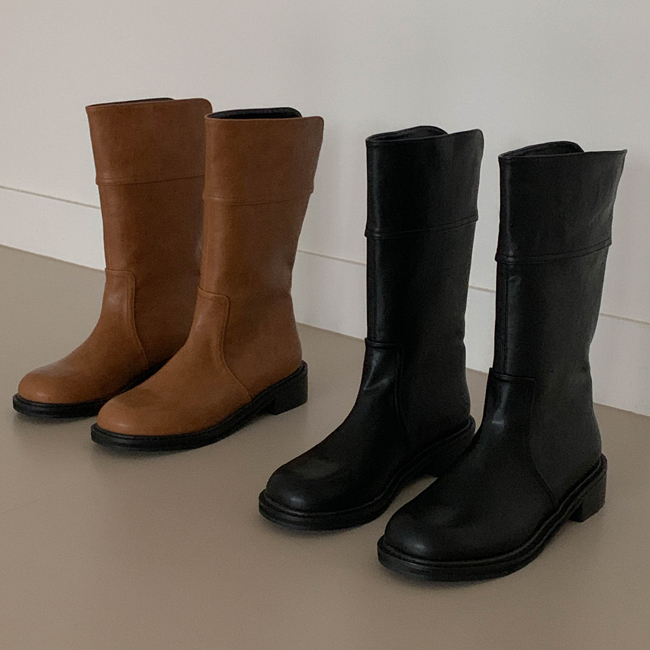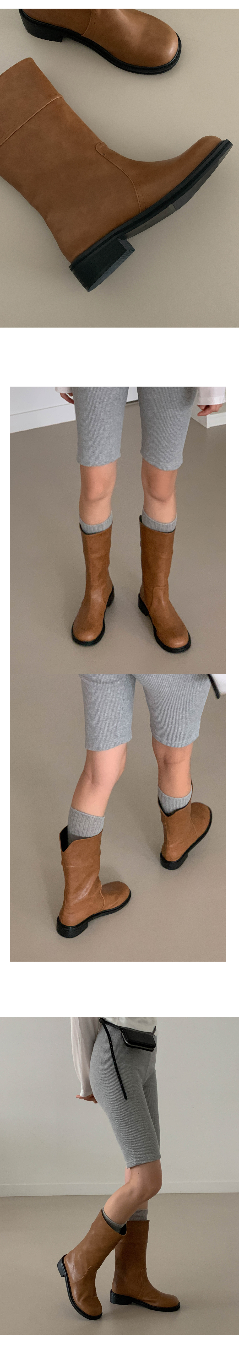 카이 둥근코 통굽 뒷절개 여유핏 미들부츠