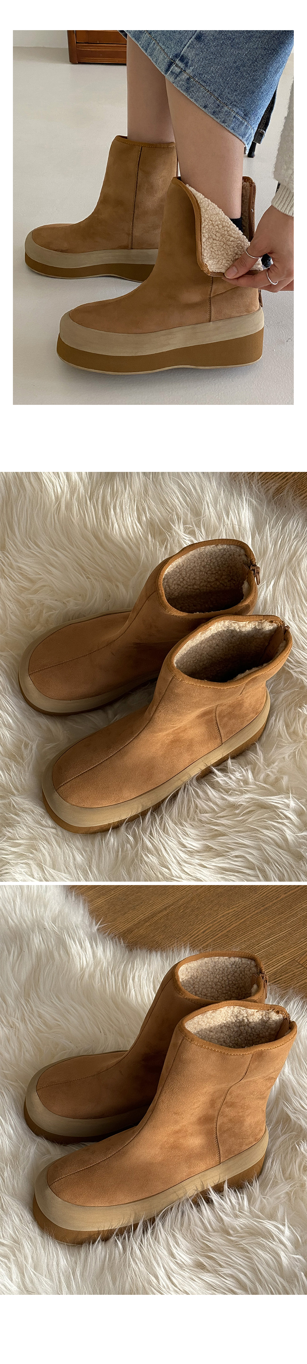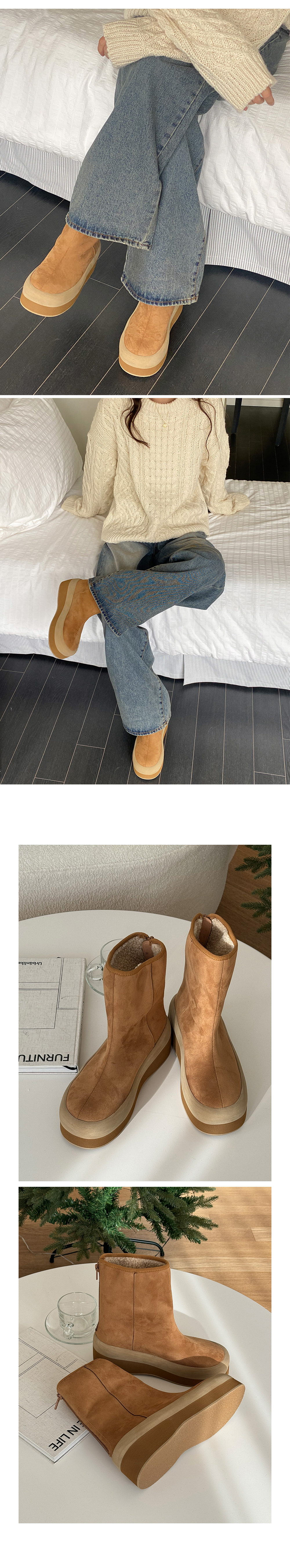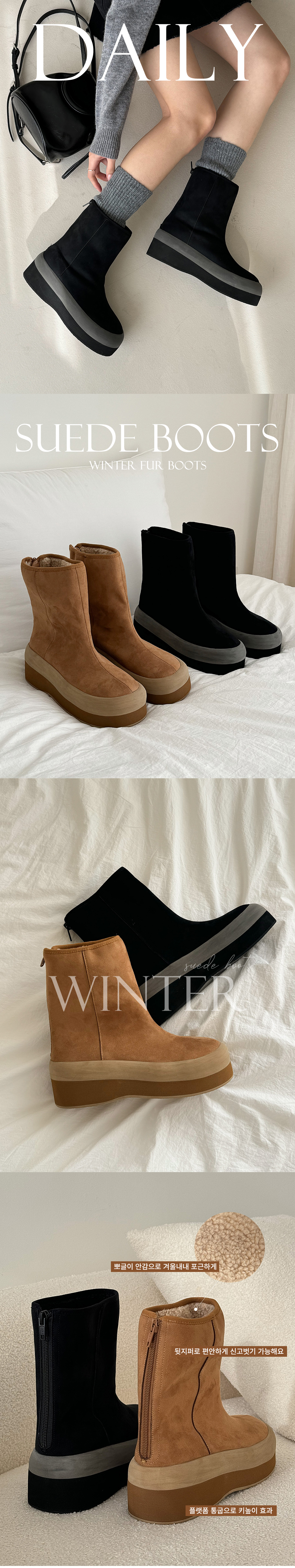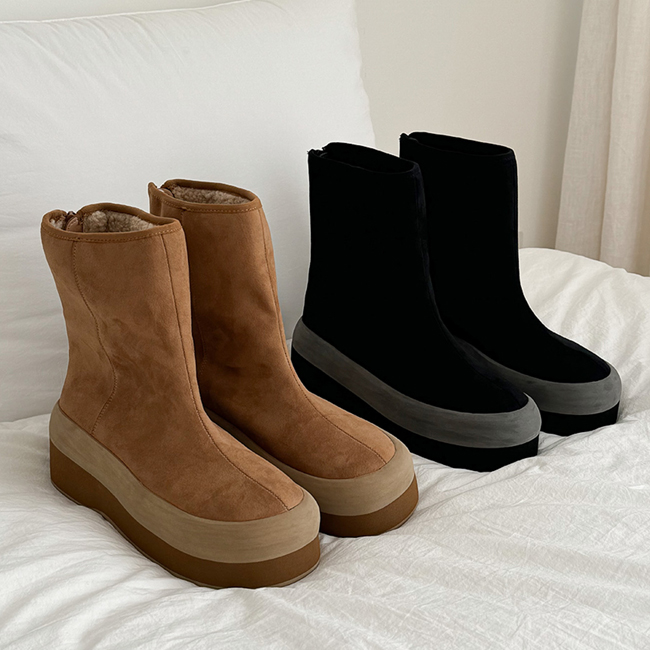 온드 스웨이드 키높이 통굽 뽀글이 털안감 미들굽 앵클 어그부츠