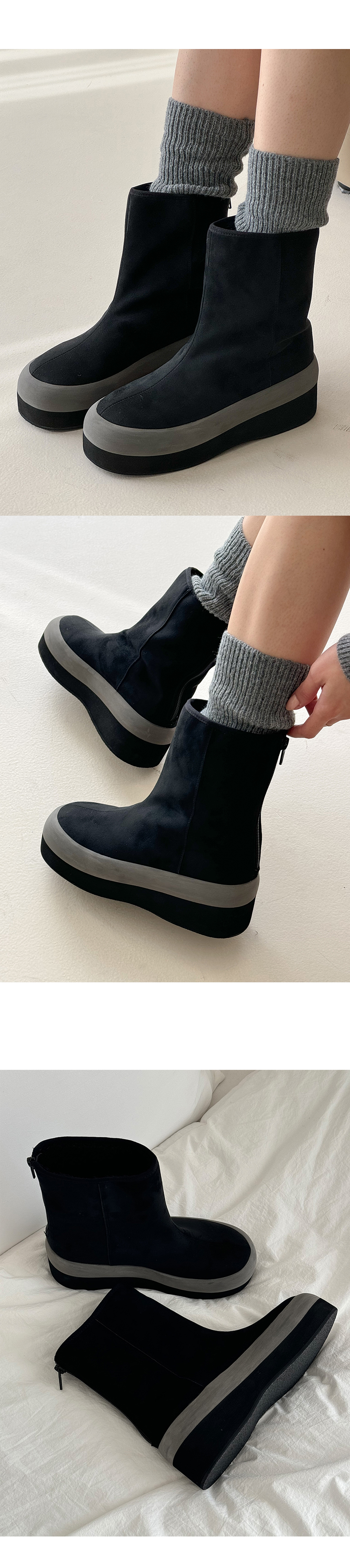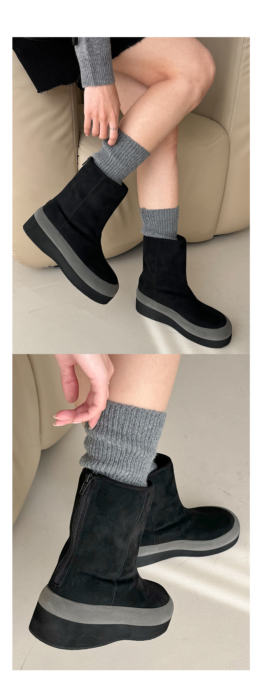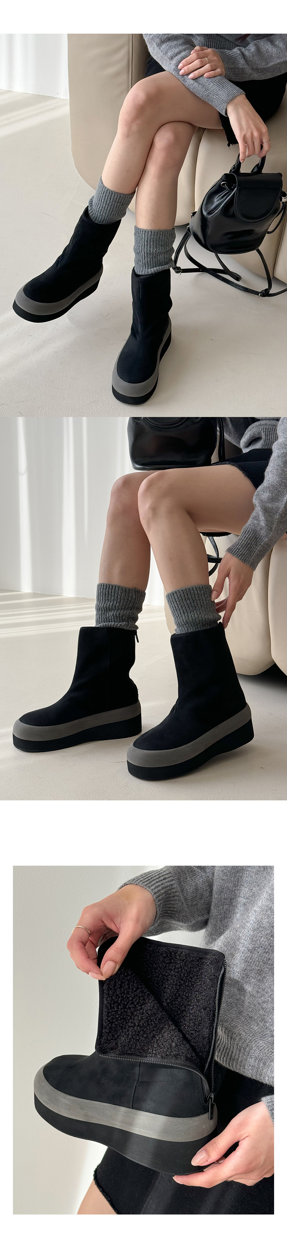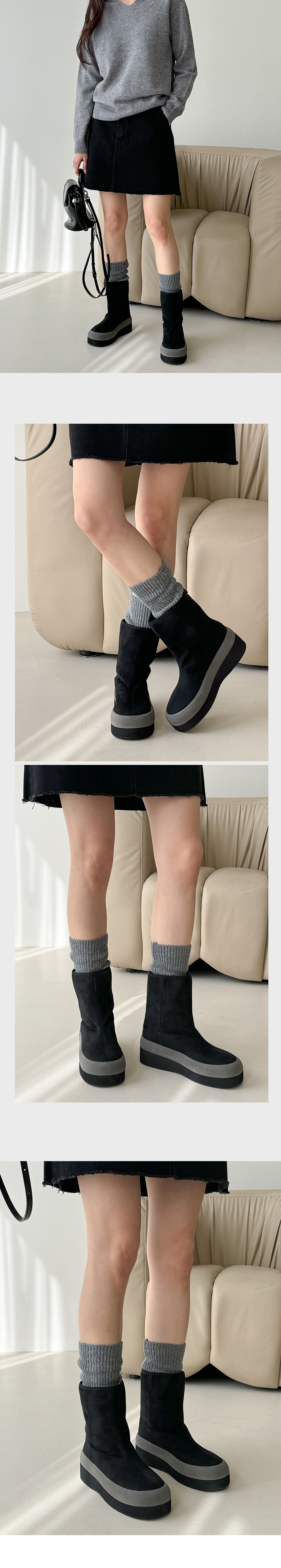 온드 스웨이드 키높이 통굽 뽀글이 털안감 미들굽 앵클 어그부츠