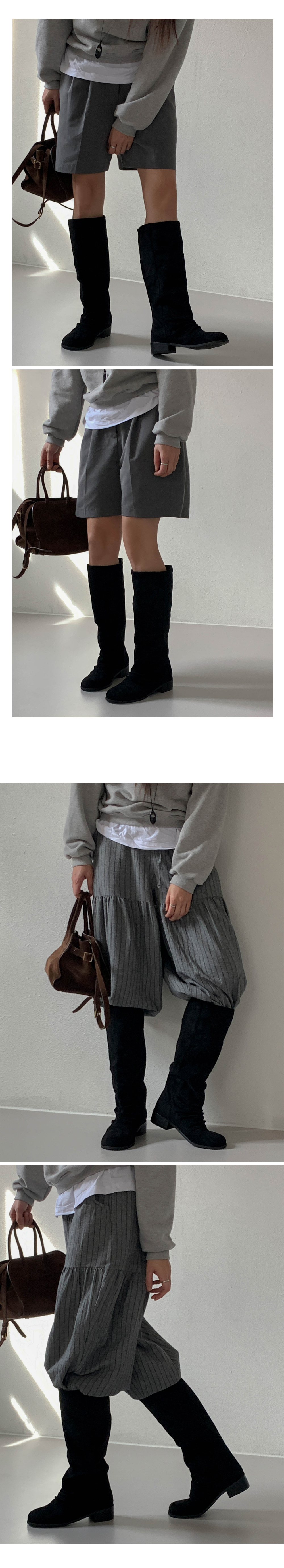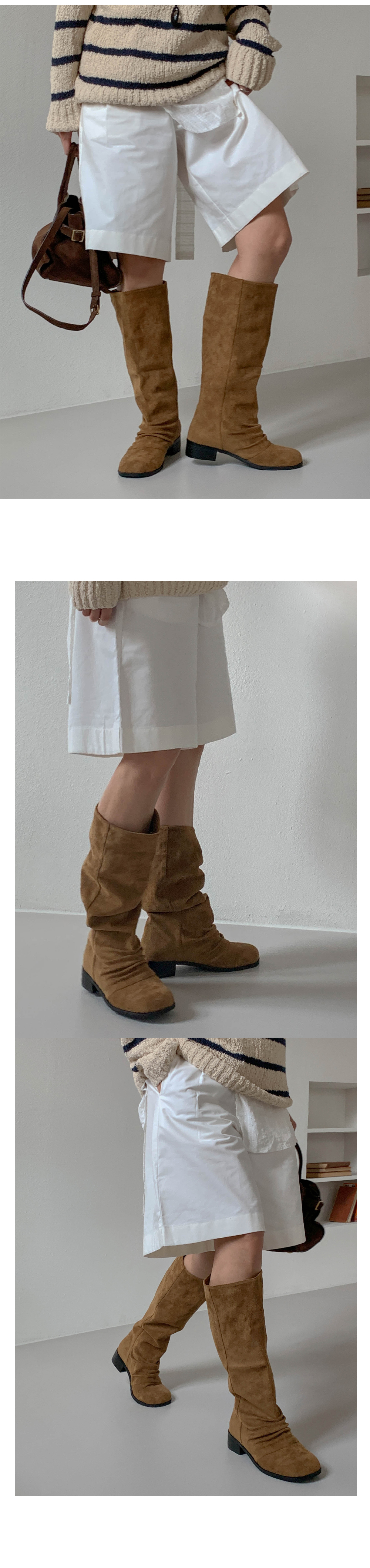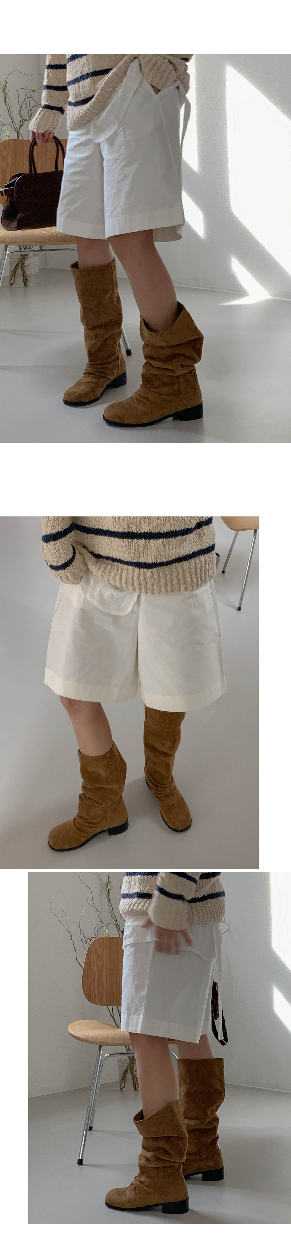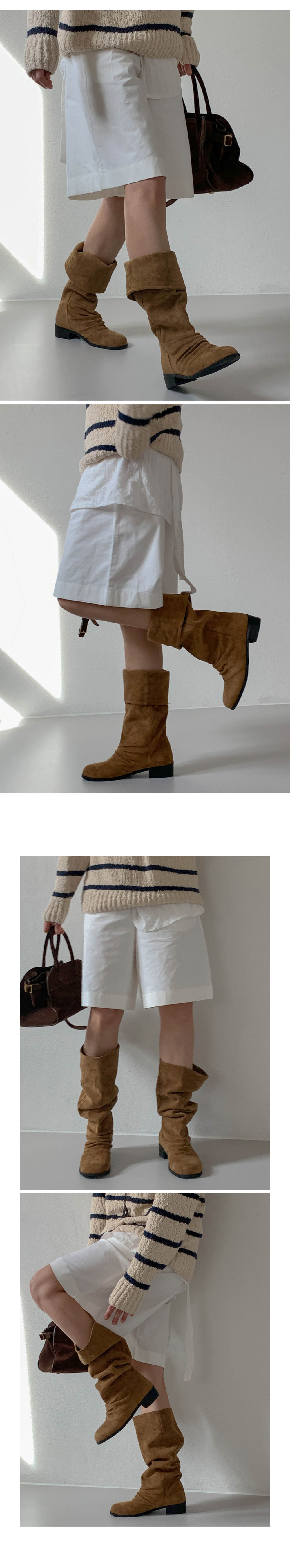 타미 슬라우치 루즈핏 스웨이드 셔링 통굽 롱부츠