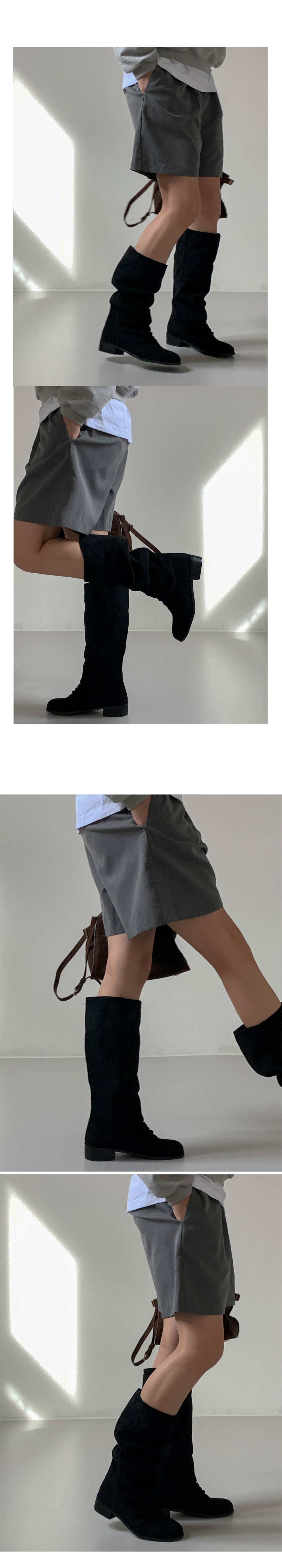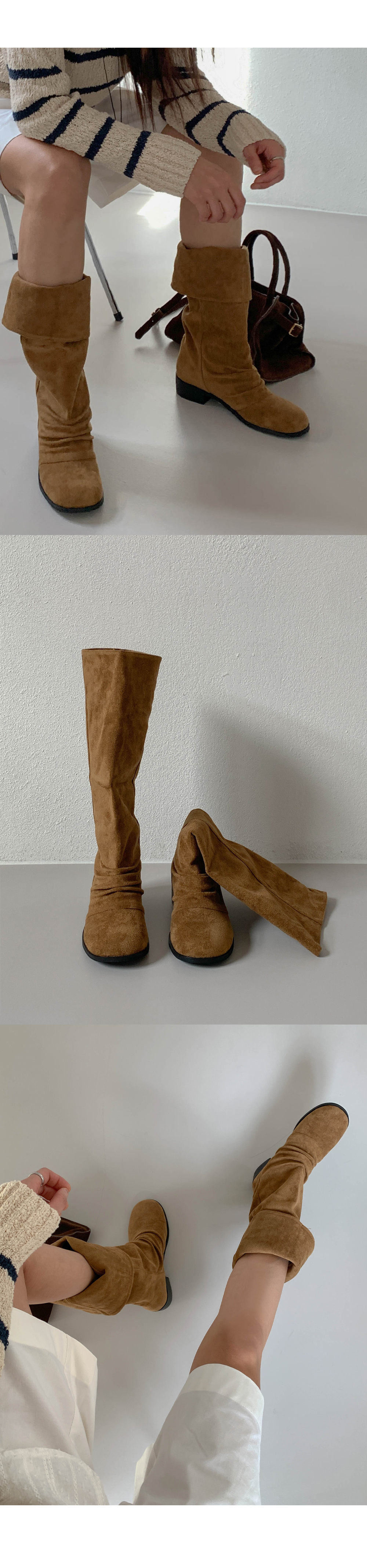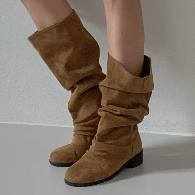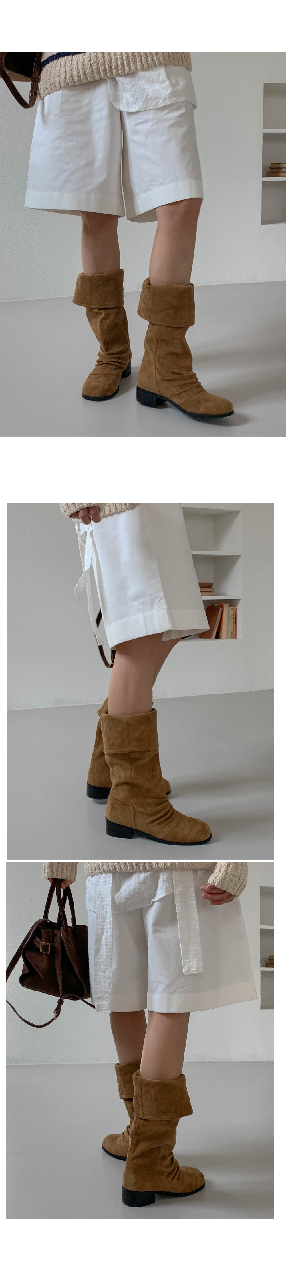 타미 슬라우치 루즈핏 스웨이드 셔링 통굽 롱부츠