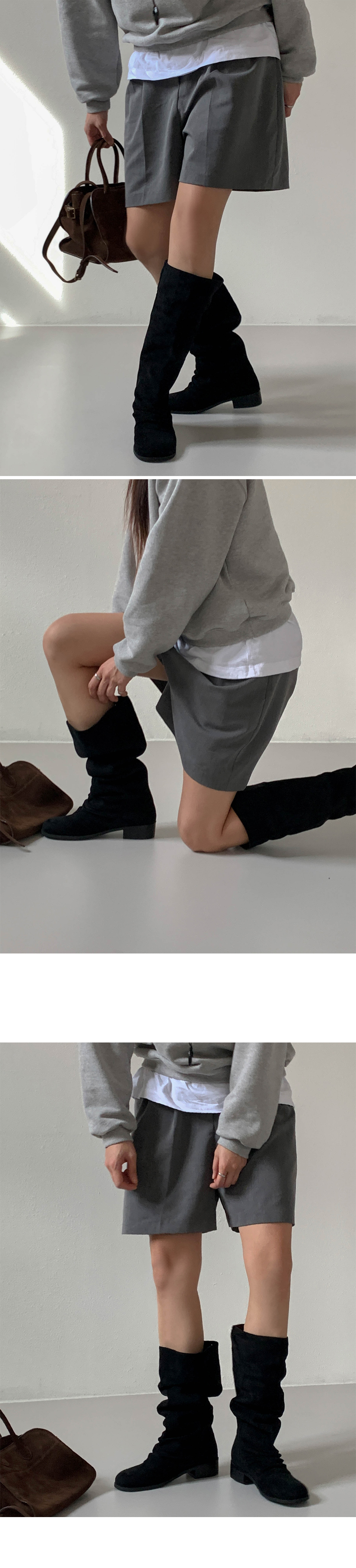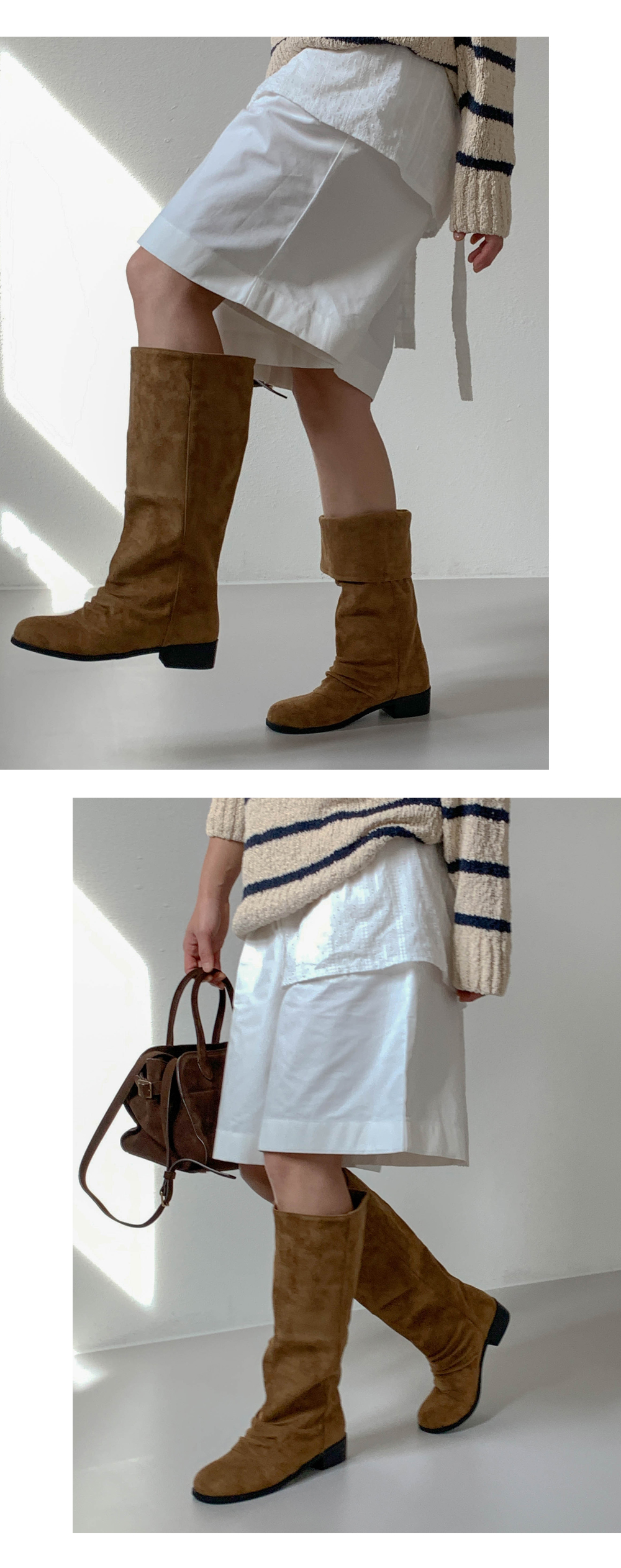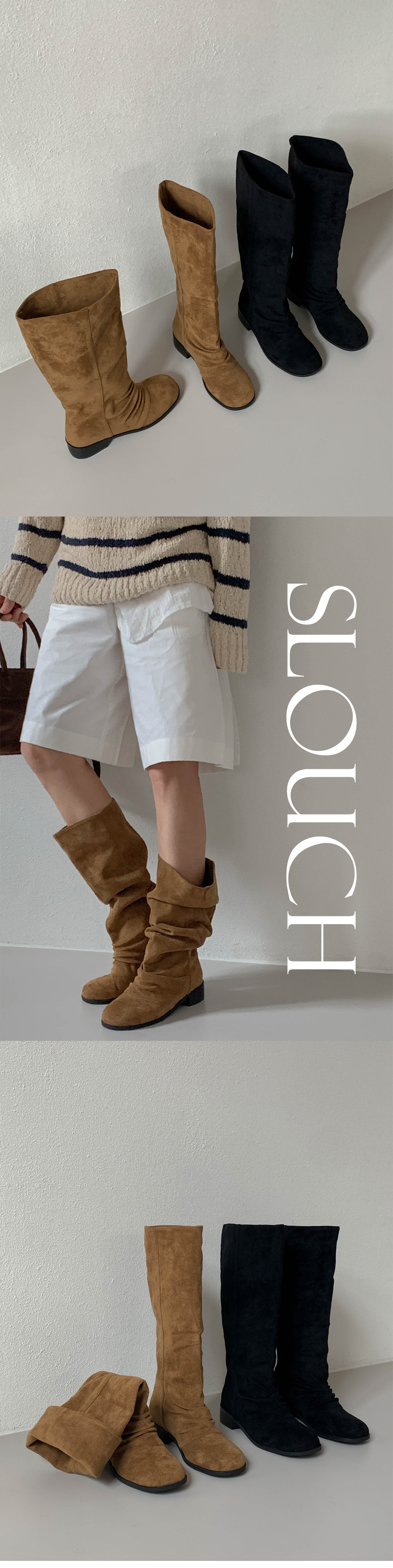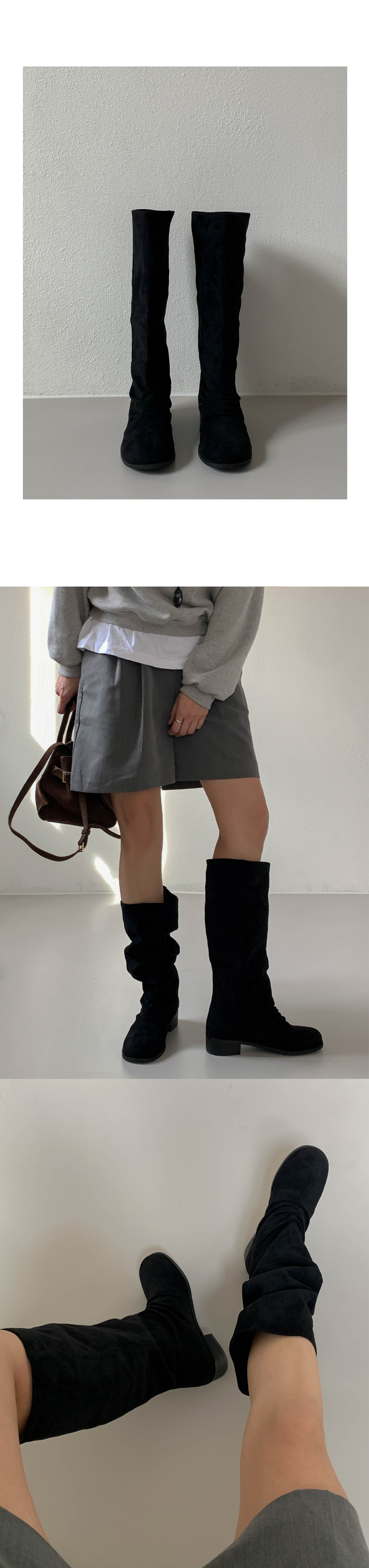 타미 슬라우치 루즈핏 스웨이드 셔링 통굽 롱부츠