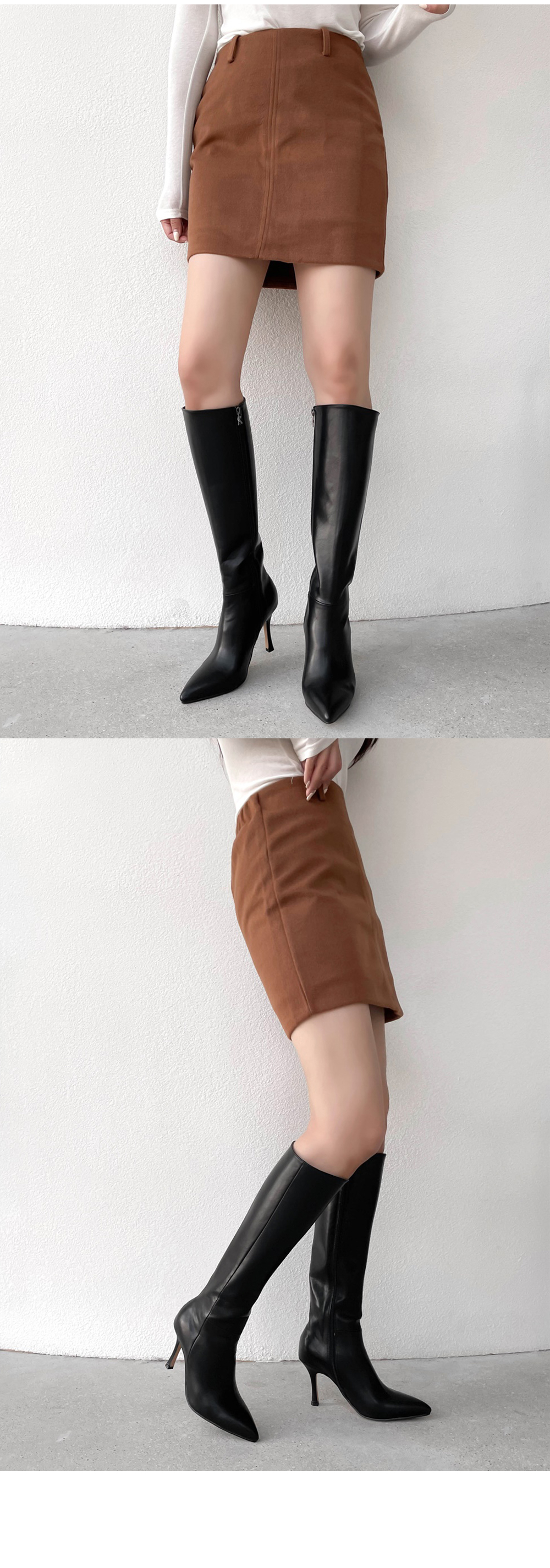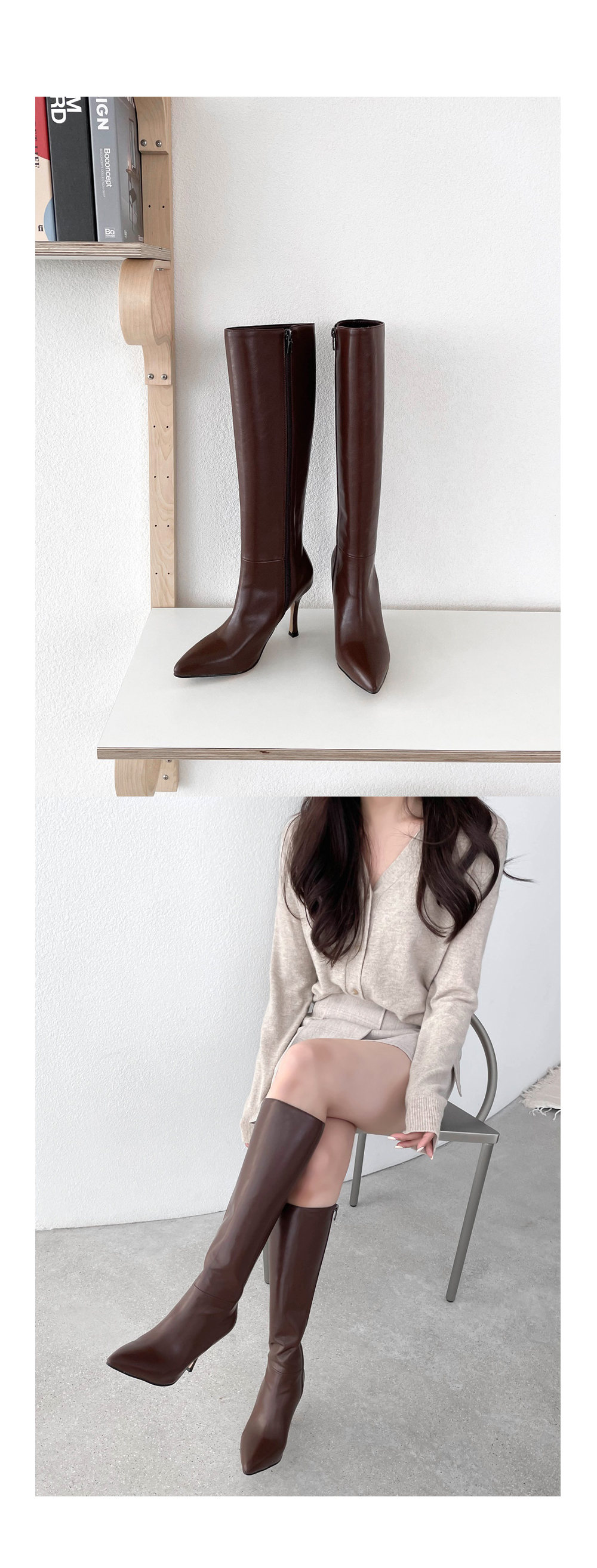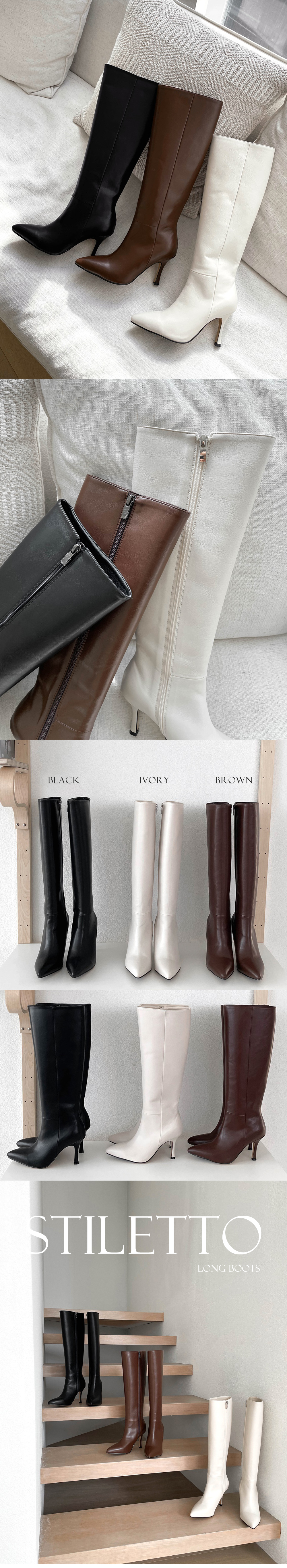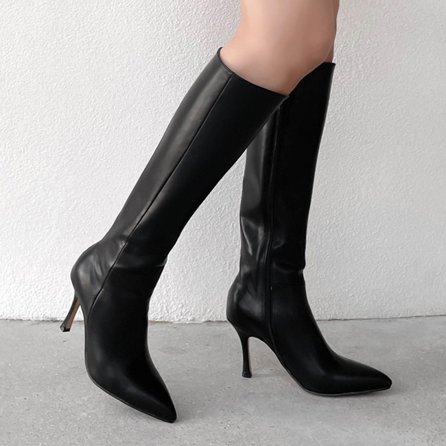 슈이드 슬림 스틸레토 미들굽 키튼힐 롱부츠 힐