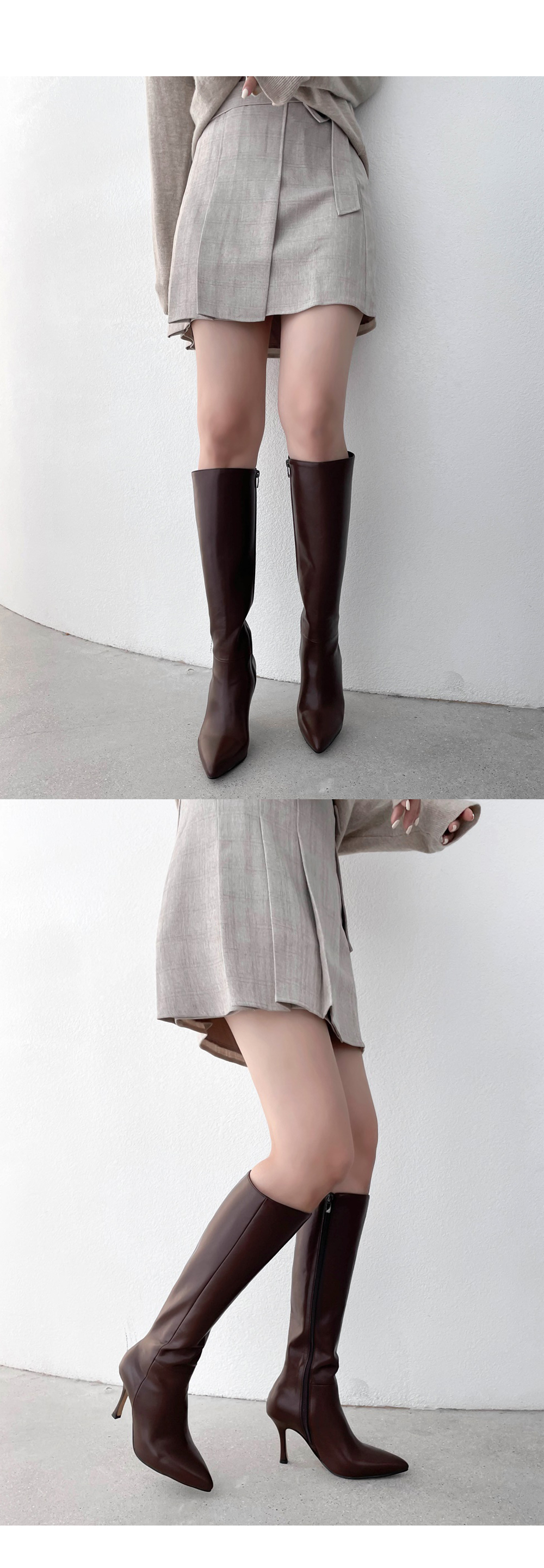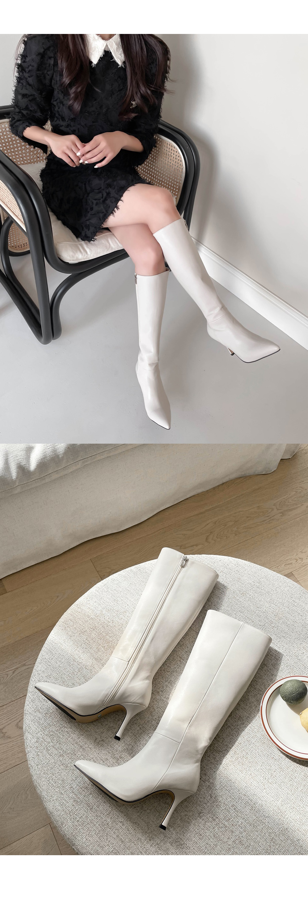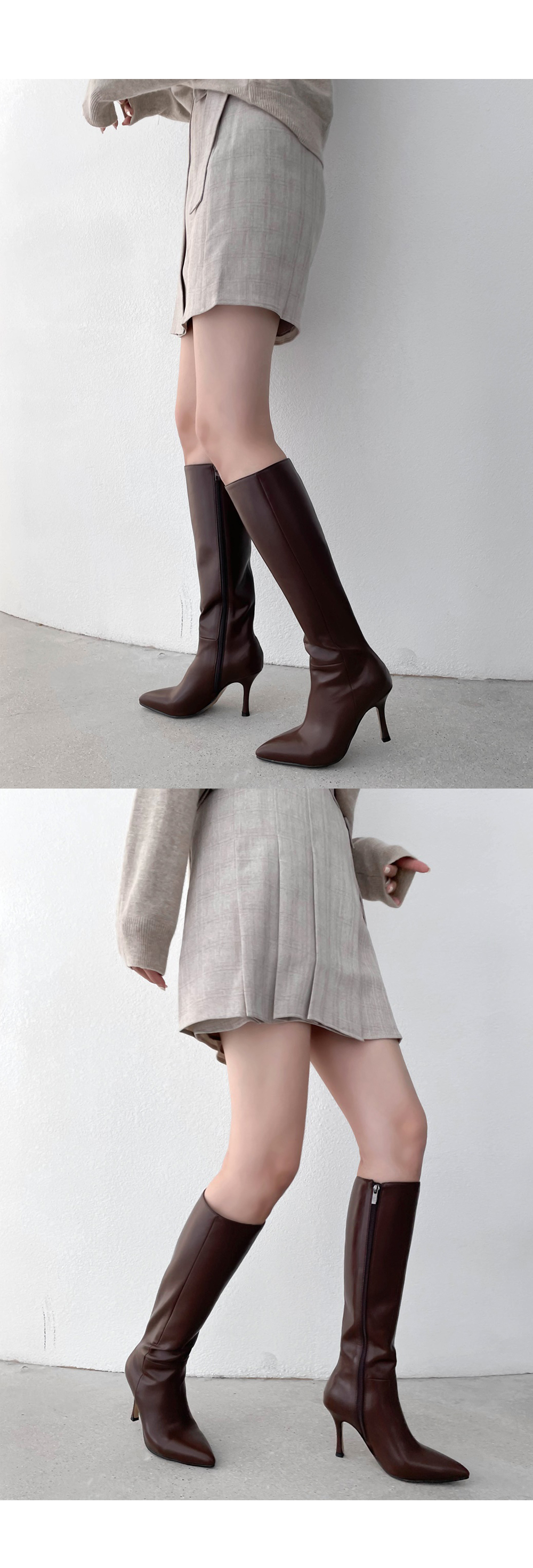 슈이드 슬림 스틸레토 미들굽 키튼힐 롱부츠 힐