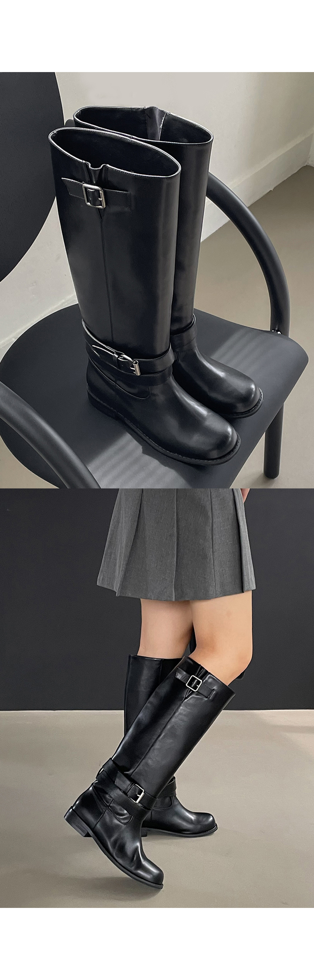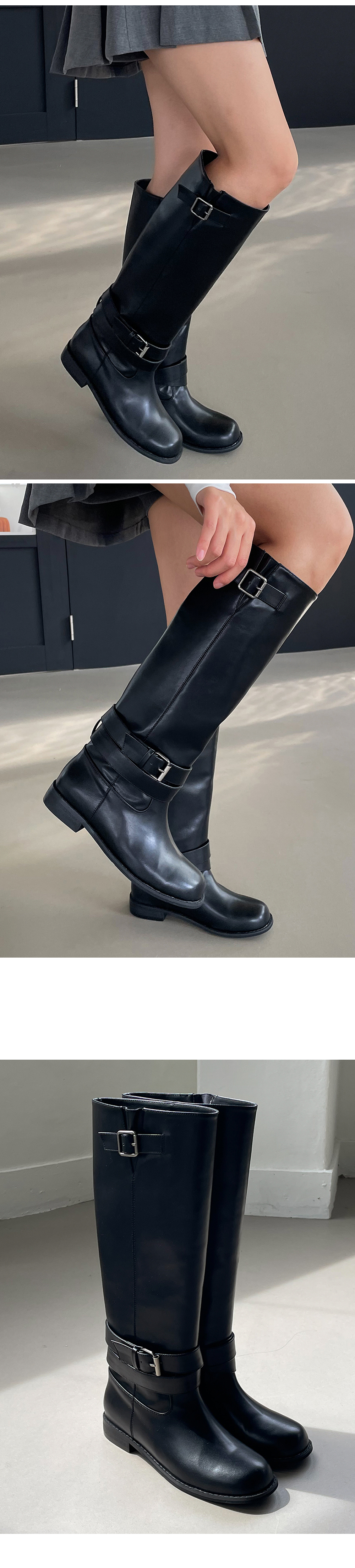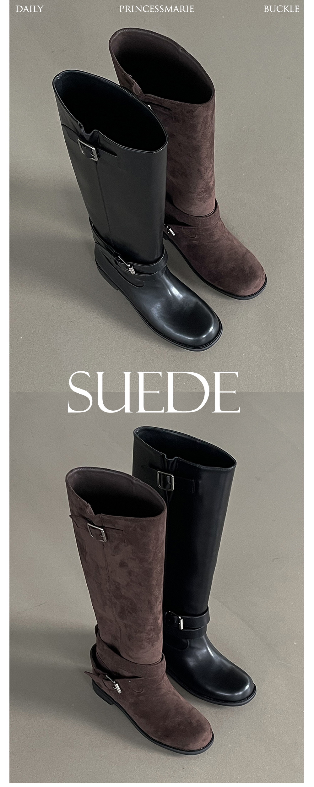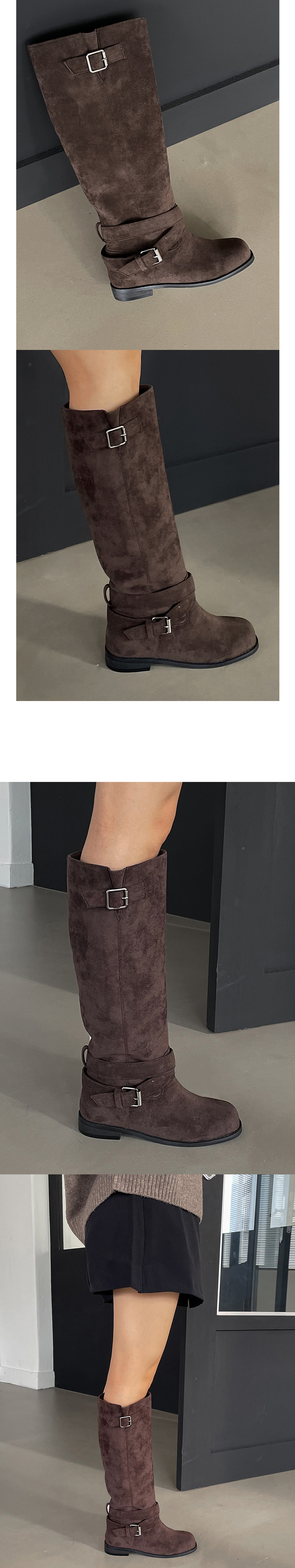 오이니 통넓은부츠 둥근코 버클 통굽 스웨이드 롱부츠