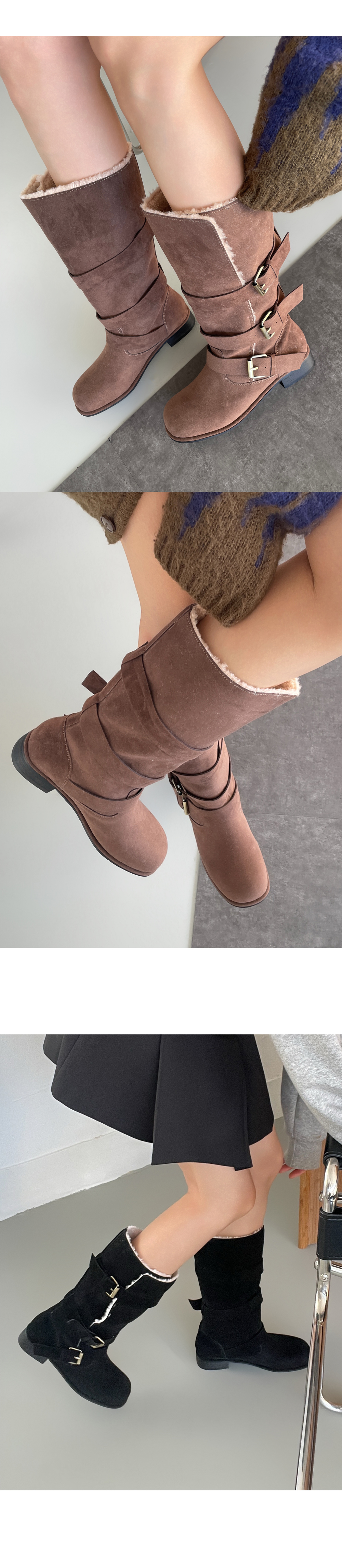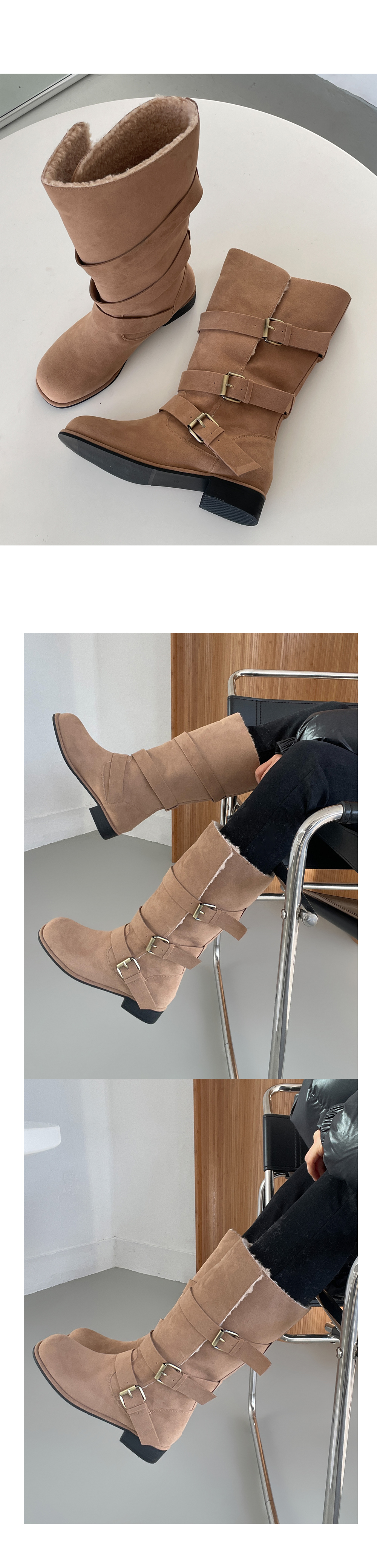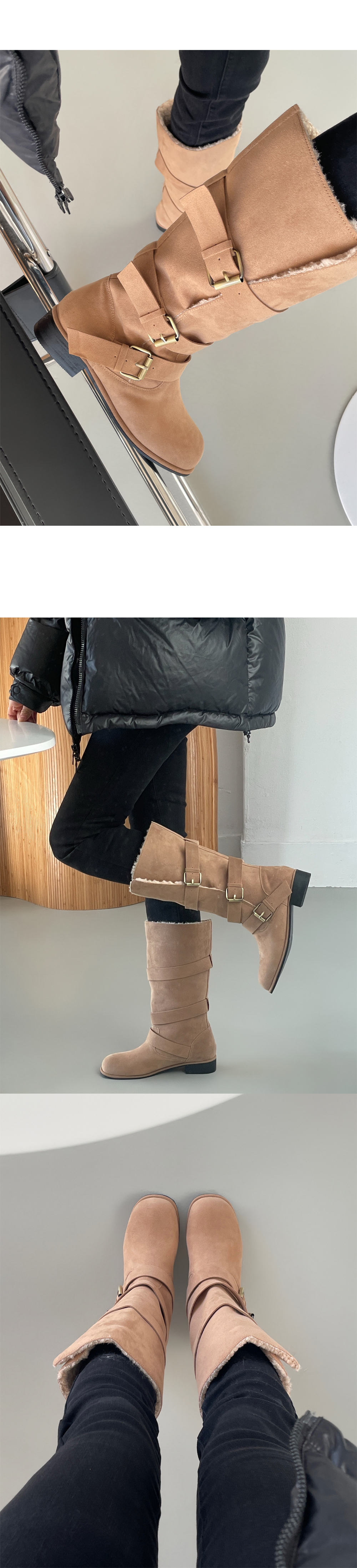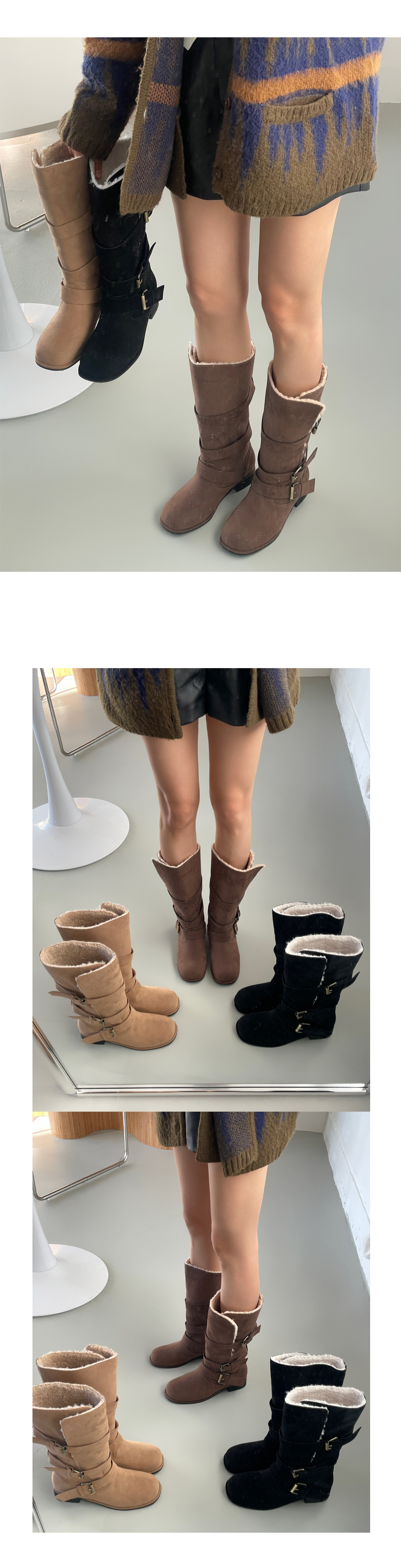 윈터 피어리 벨트 버클 스트랩 스웨이드 폴드 미들 부츠