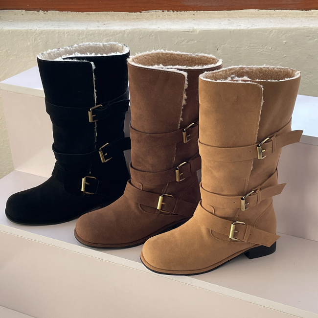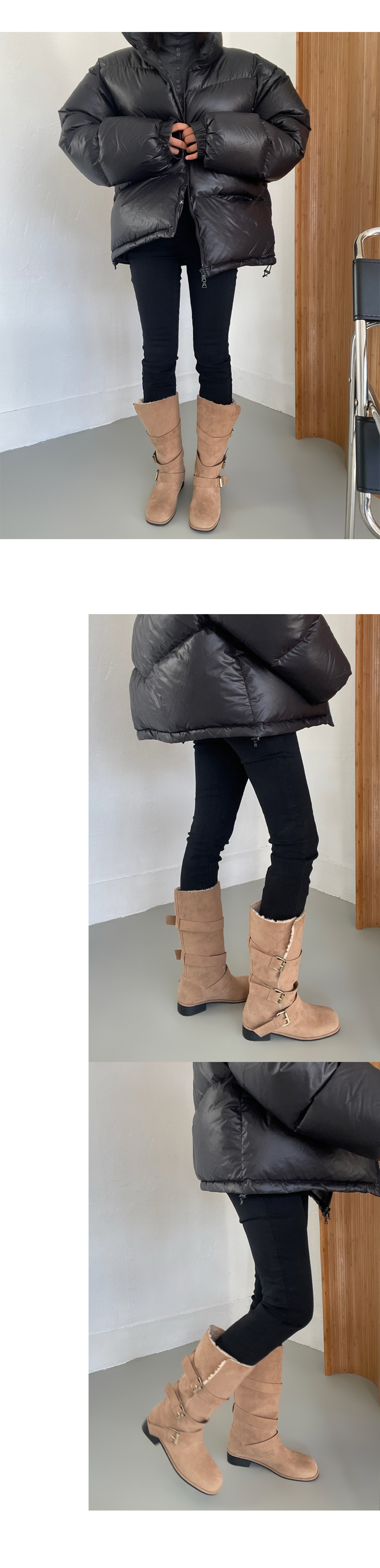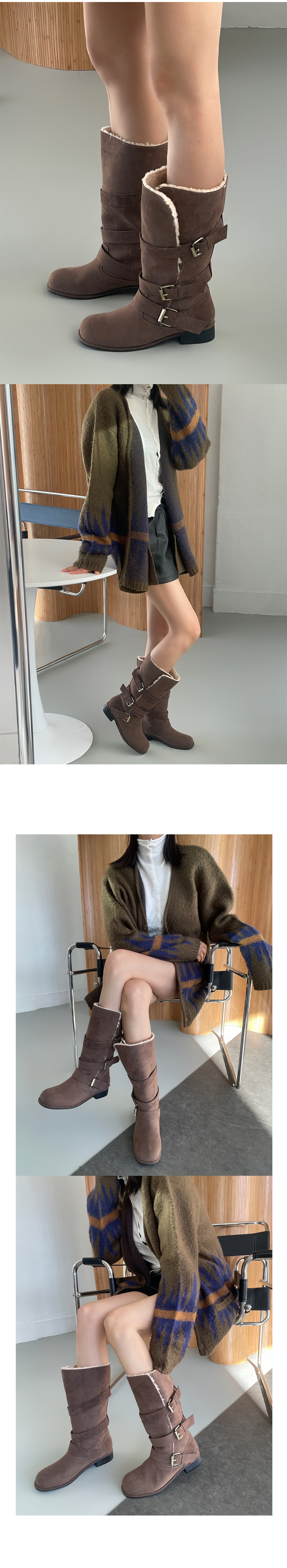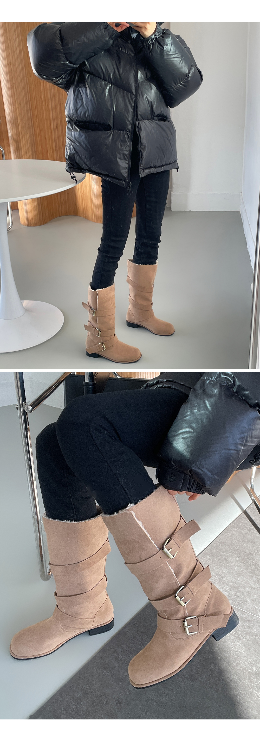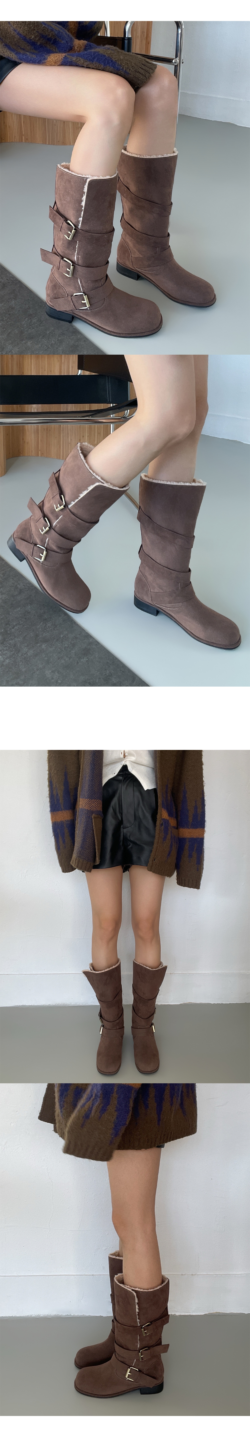 윈터 피어리 벨트 버클 스트랩 스웨이드 폴드 미들 부츠