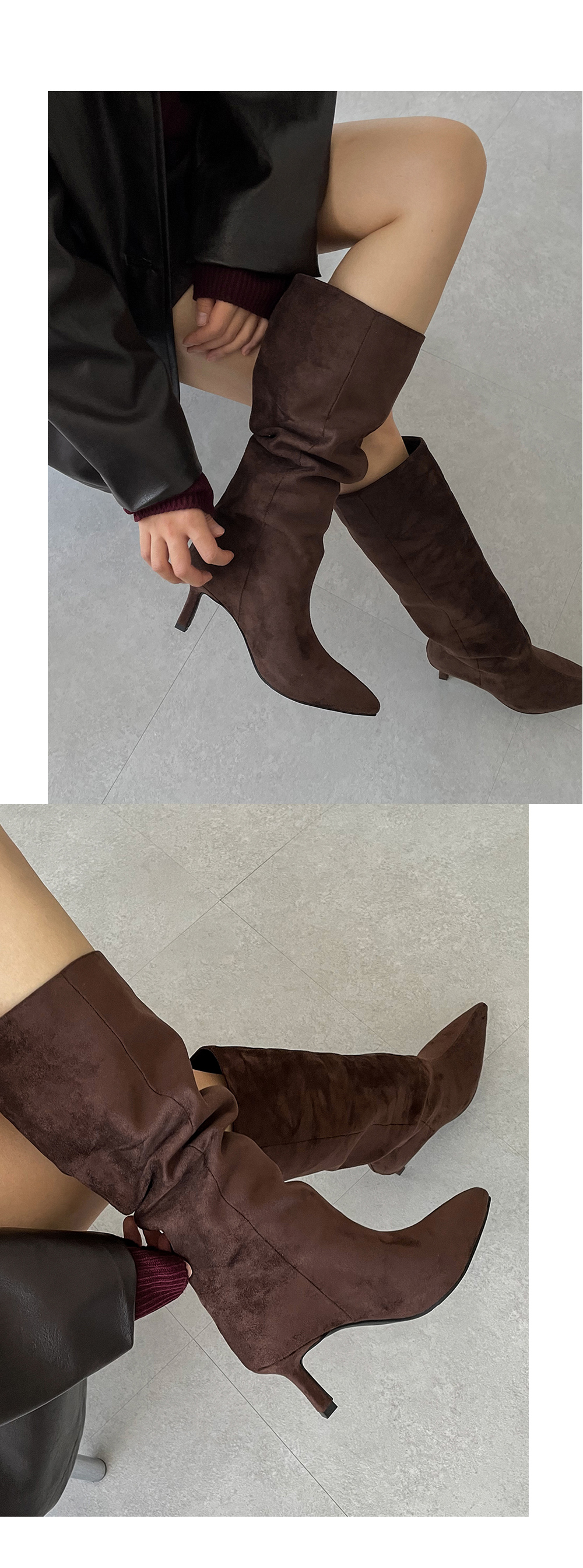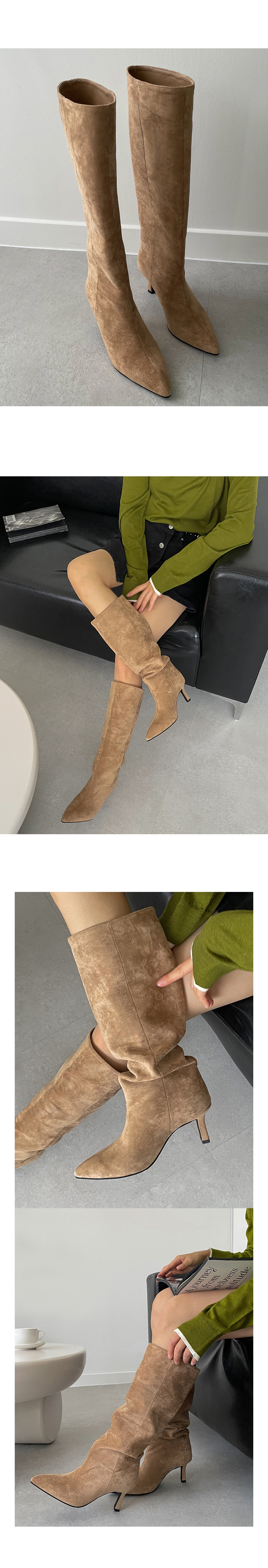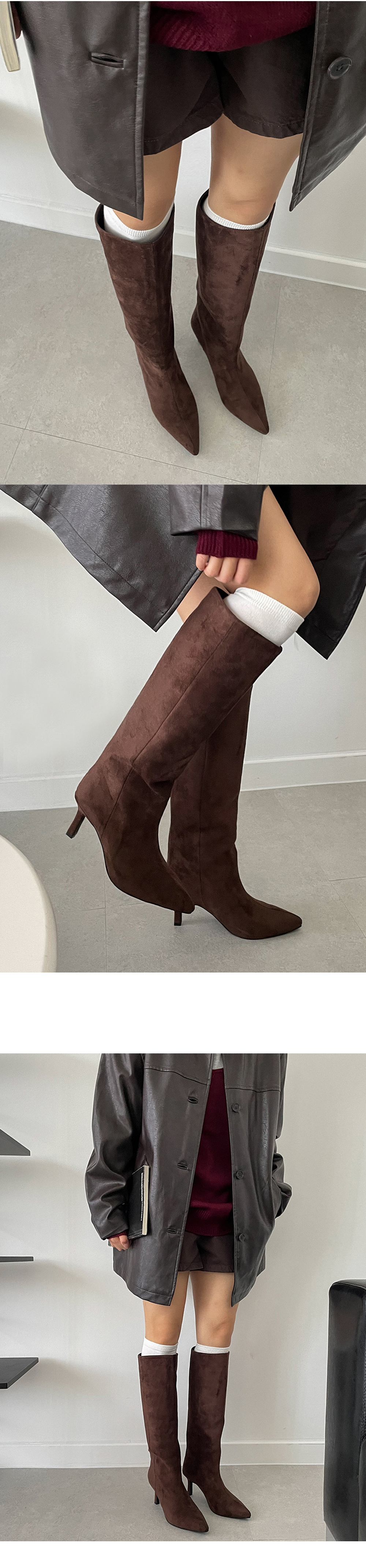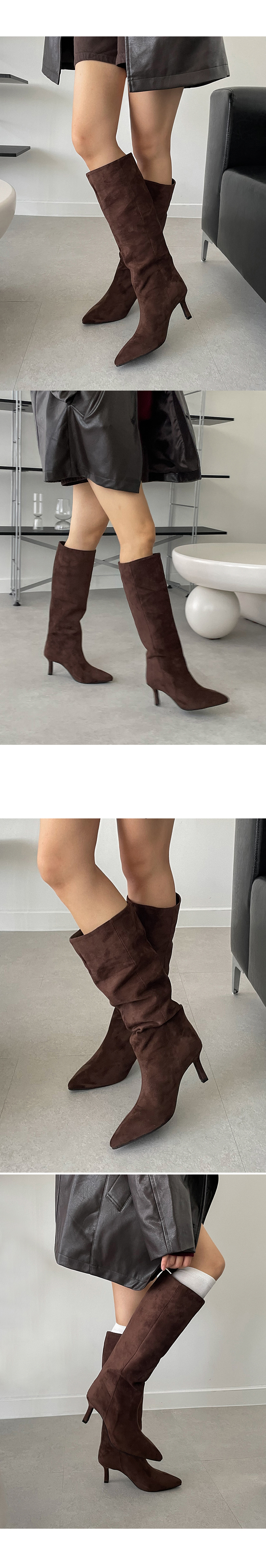 소브 슬라우치 스틸레토 스웨이드 셔링 키튼힐 롱부츠