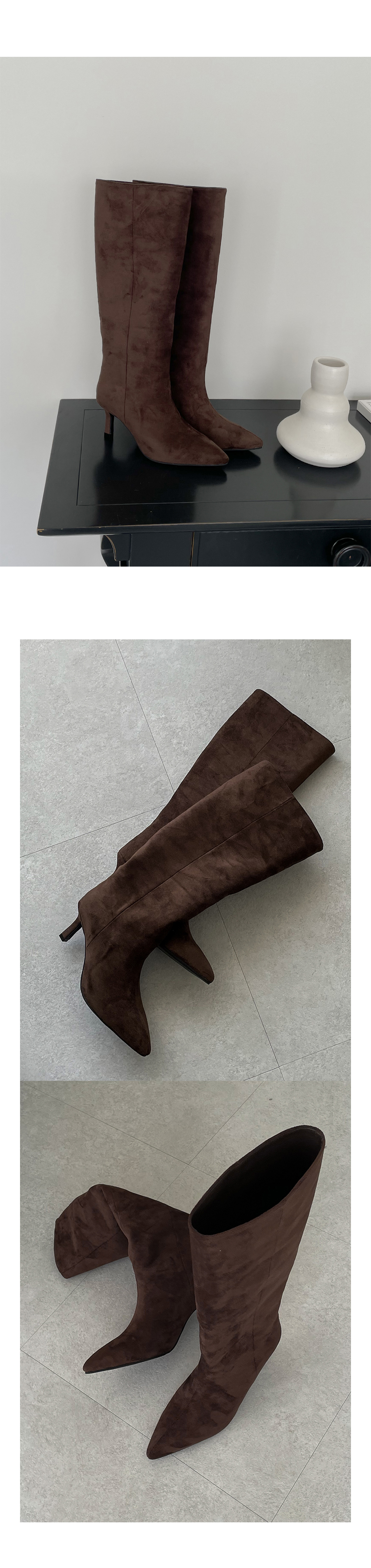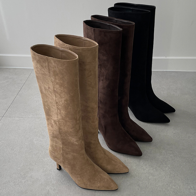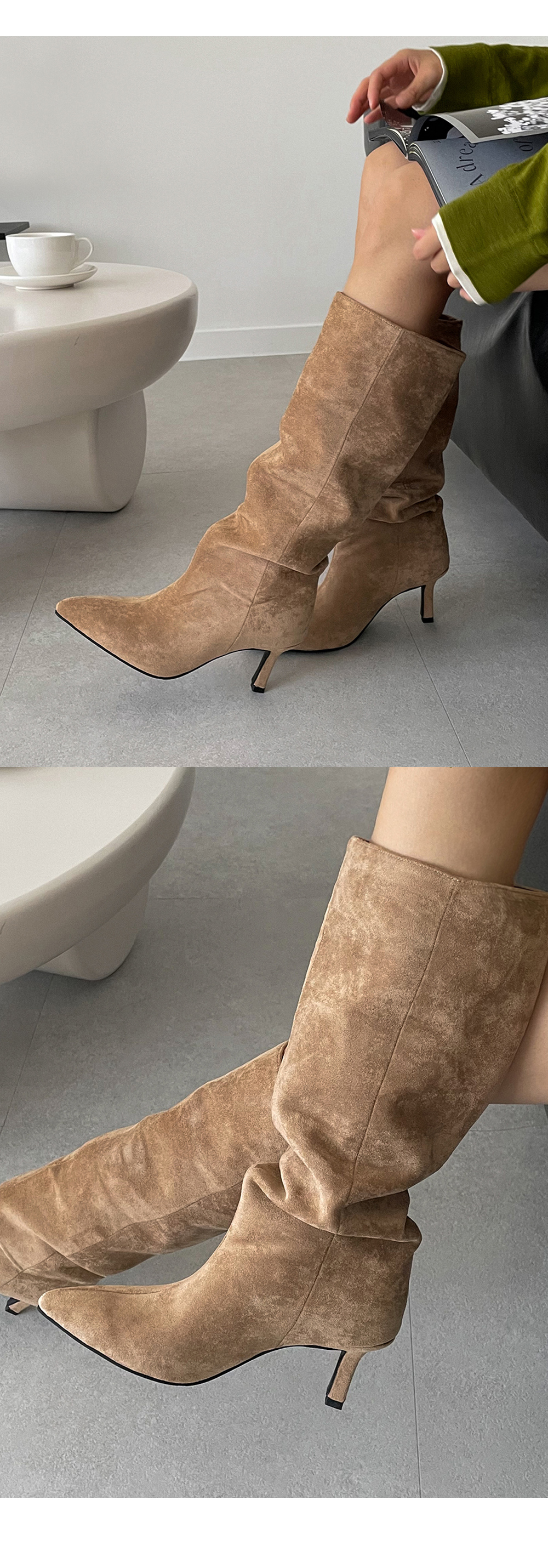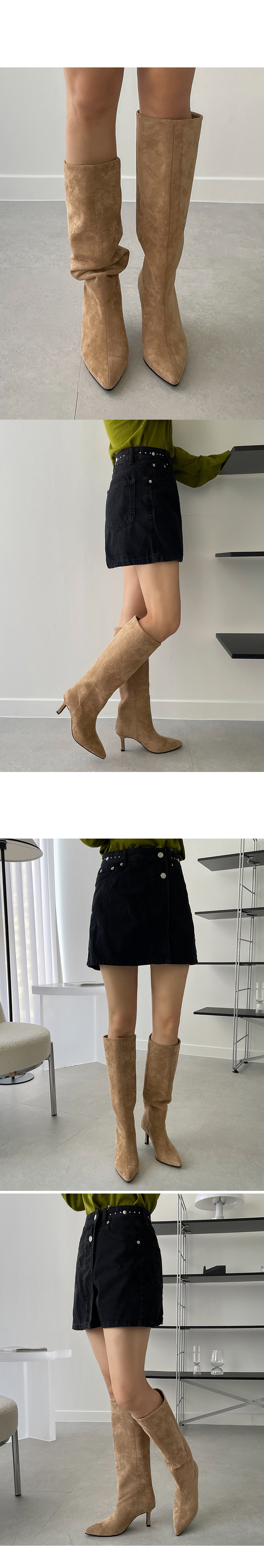 소브 슬라우치 스틸레토 스웨이드 셔링 키튼힐 롱부츠