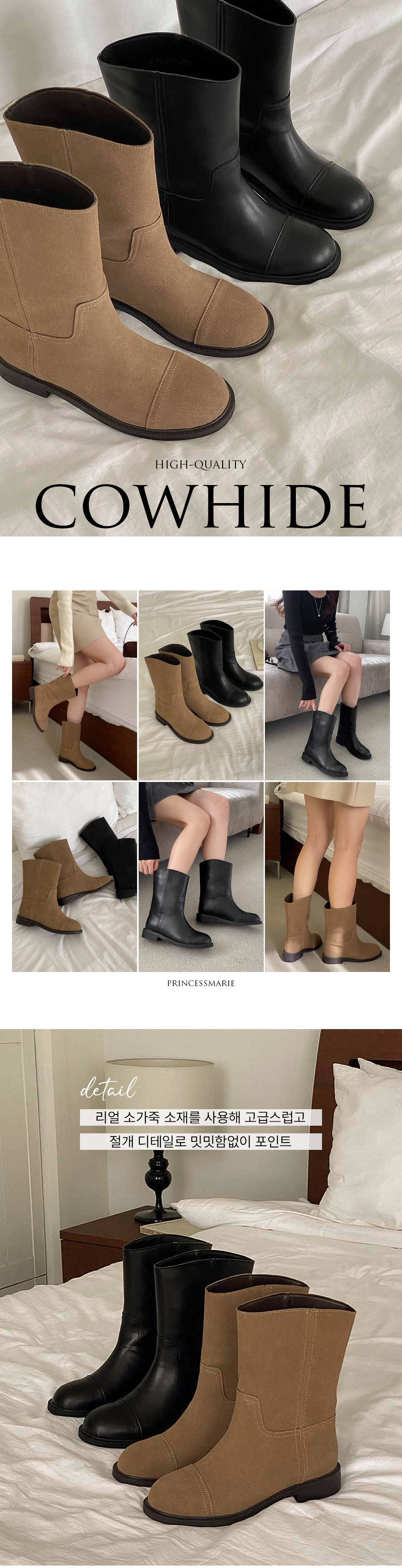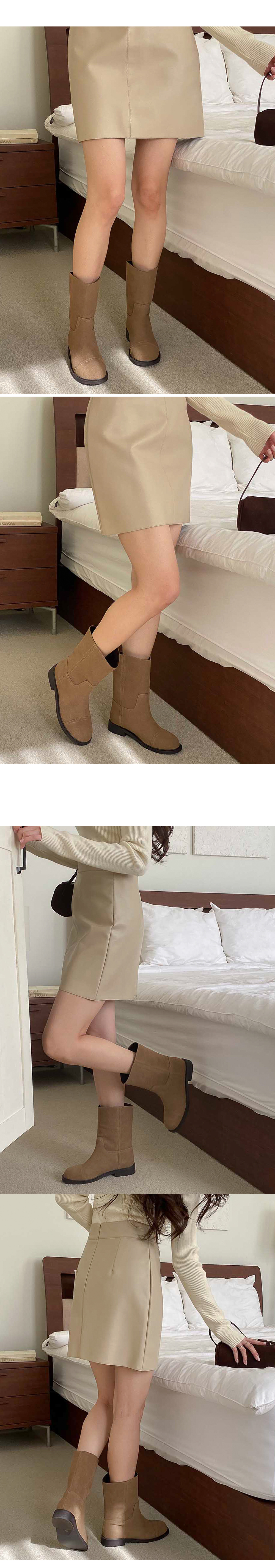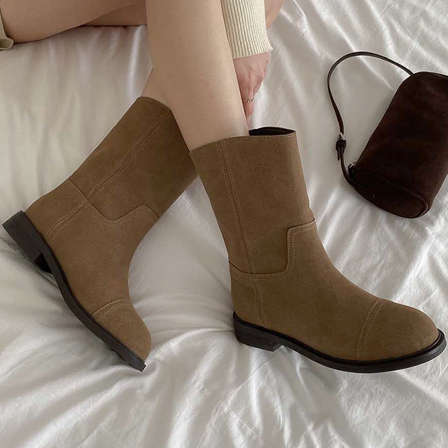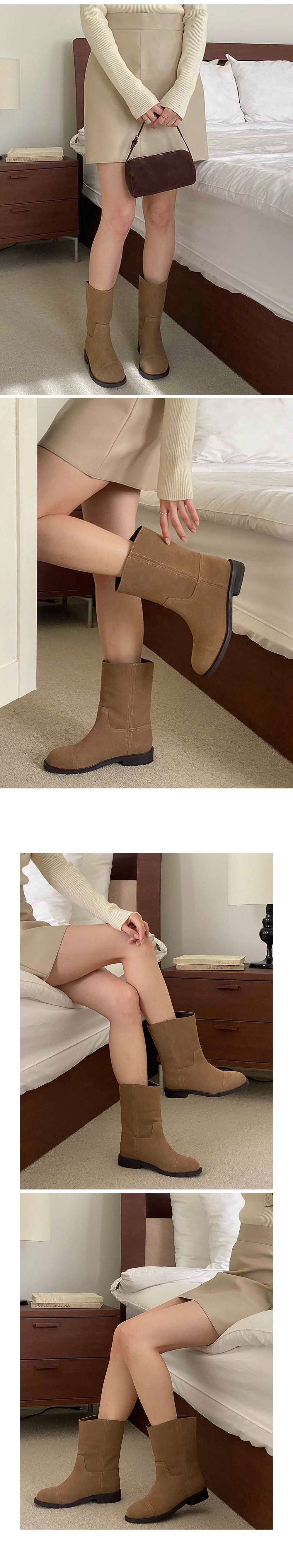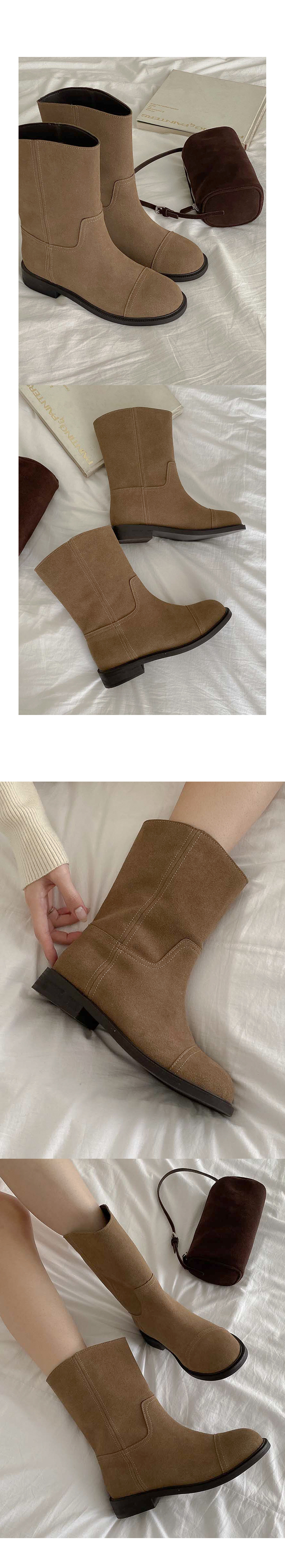 히키 하비부츠 소가죽 스웨이드 통굽 숏 미들부츠