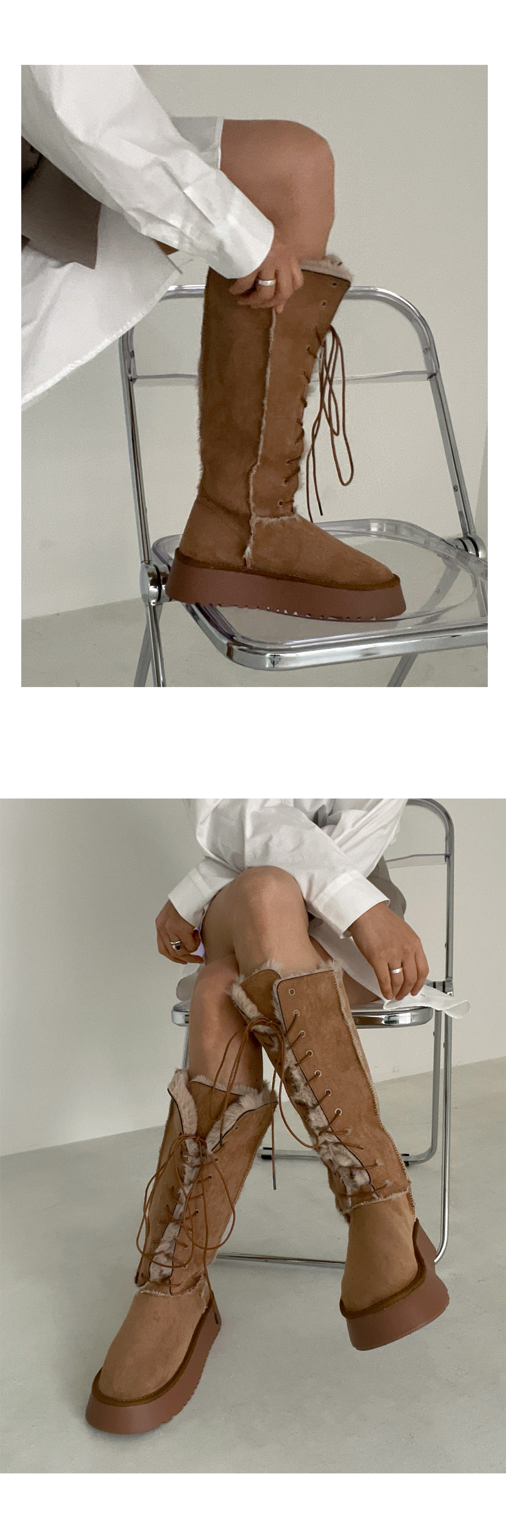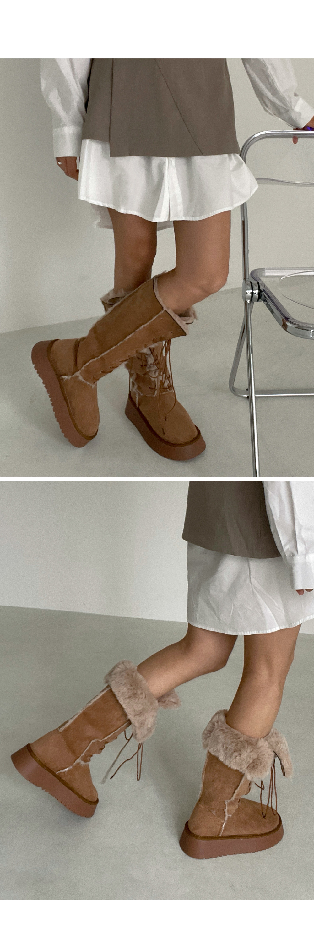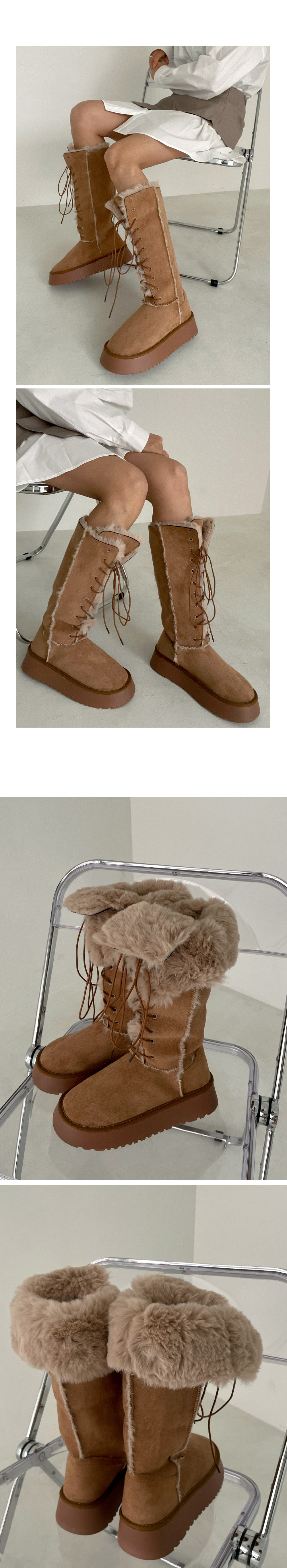 로즈아 레이스업 통굽 털안감 스웨이드 폴딩 어그 롱부츠