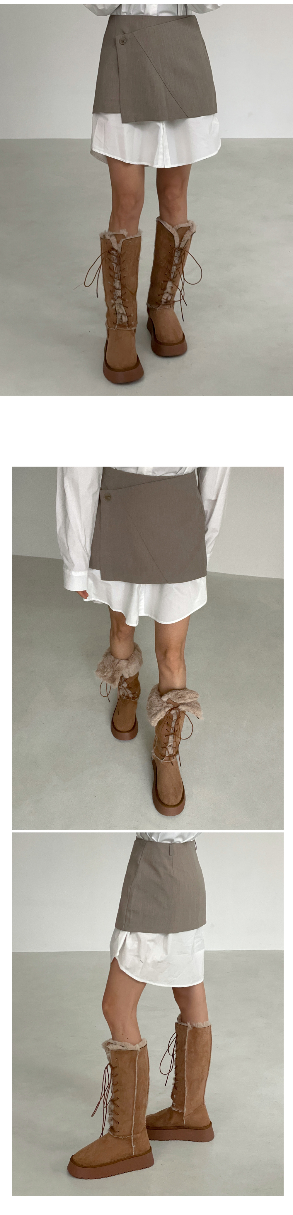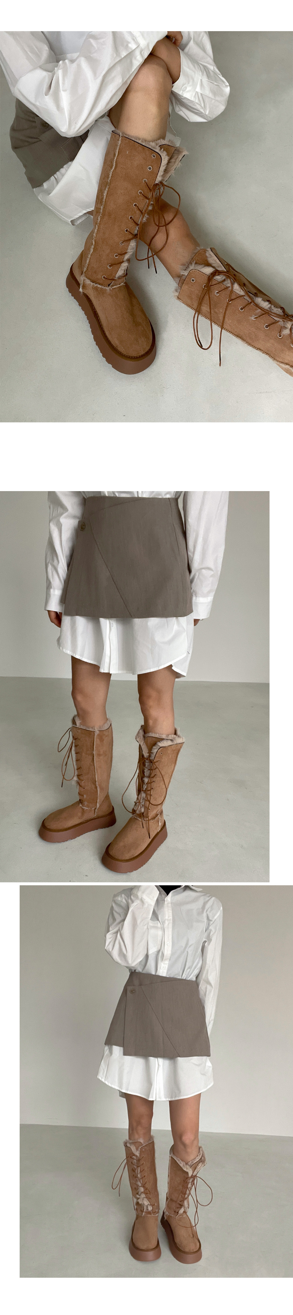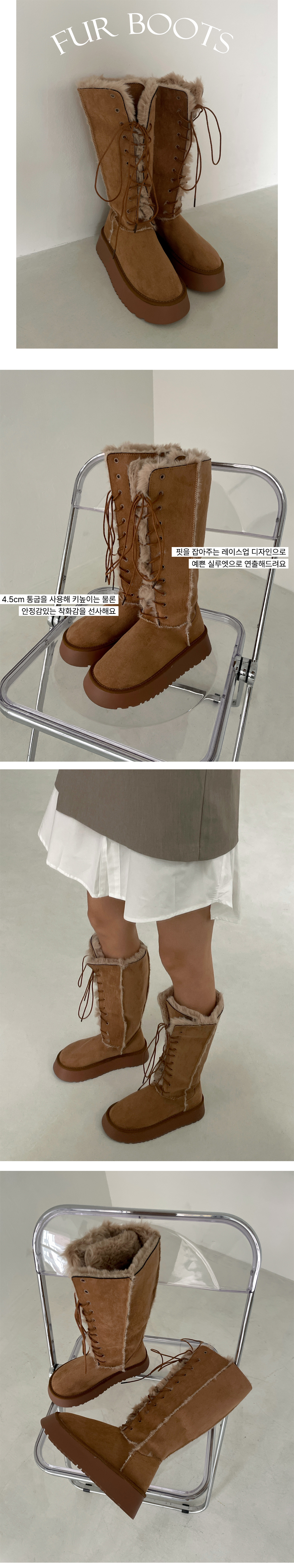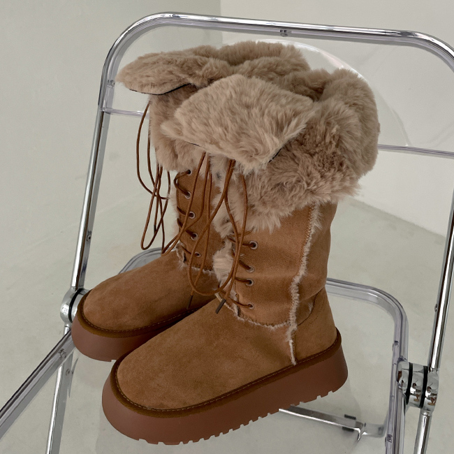 로즈아 레이스업 통굽 털안감 스웨이드 폴딩 어그 롱부츠