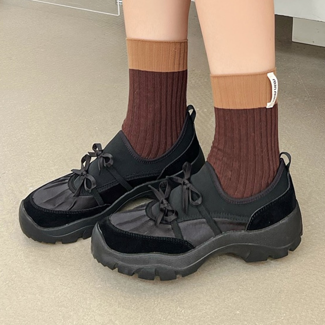 클라브 네오프렌 리본 발레코어 세틴 셔링 통굽 스니커즈 운동화