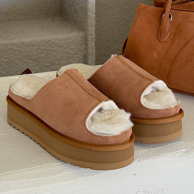 라키 겨울 스웨이드 리얼 소가죽 털안감 키높이 어그 통굽 슬리퍼