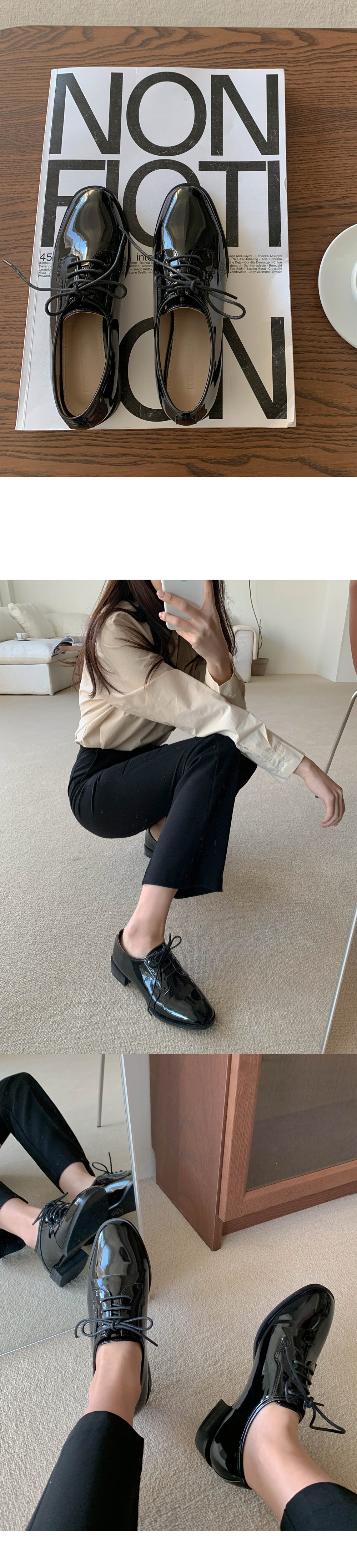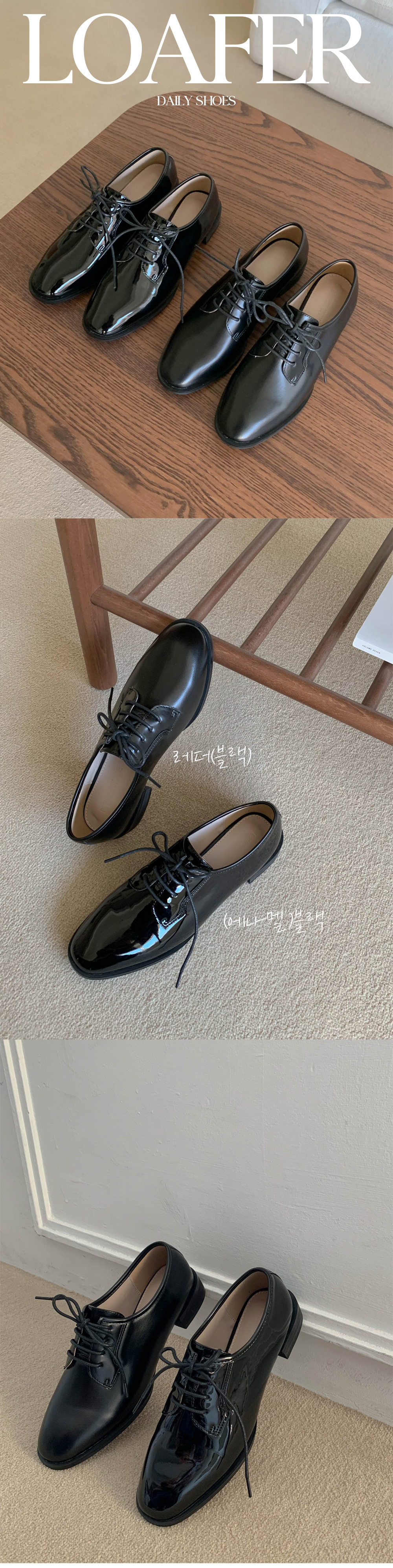베르리 레이스업 옥스퍼드 통굽 단화 로퍼 (3cm)
