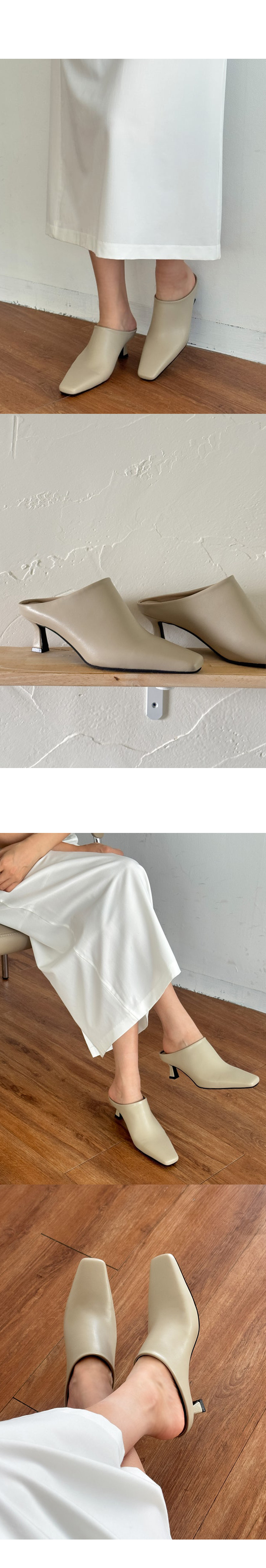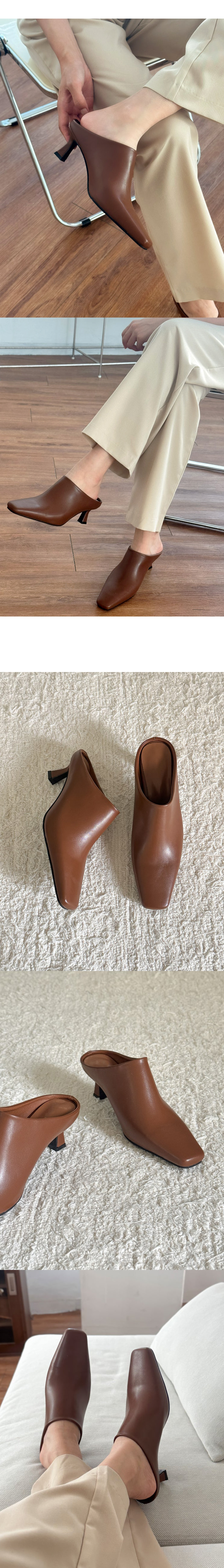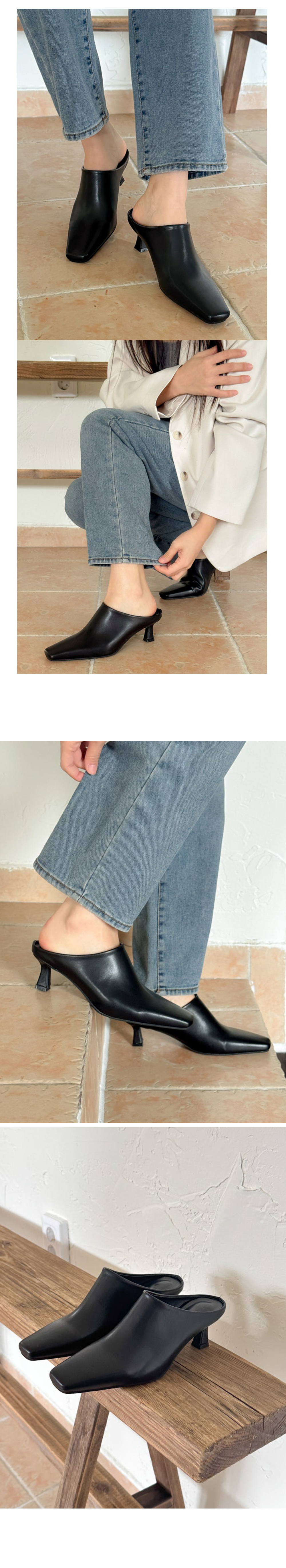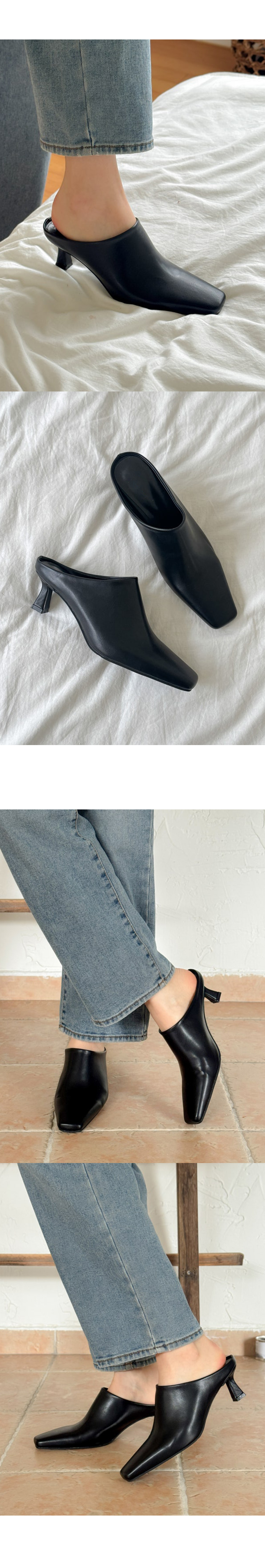 테티 스퀘어 뾰족코 미들힐 블로퍼 키튼힐 뮬 슬리퍼