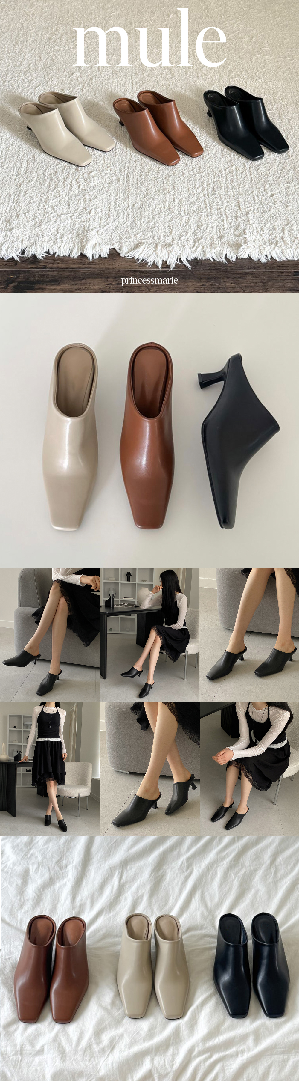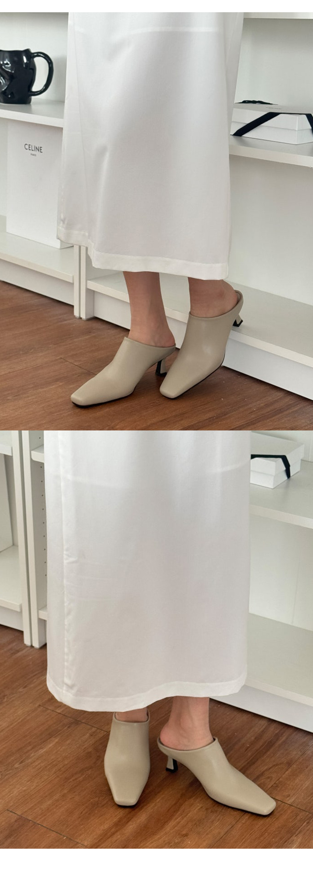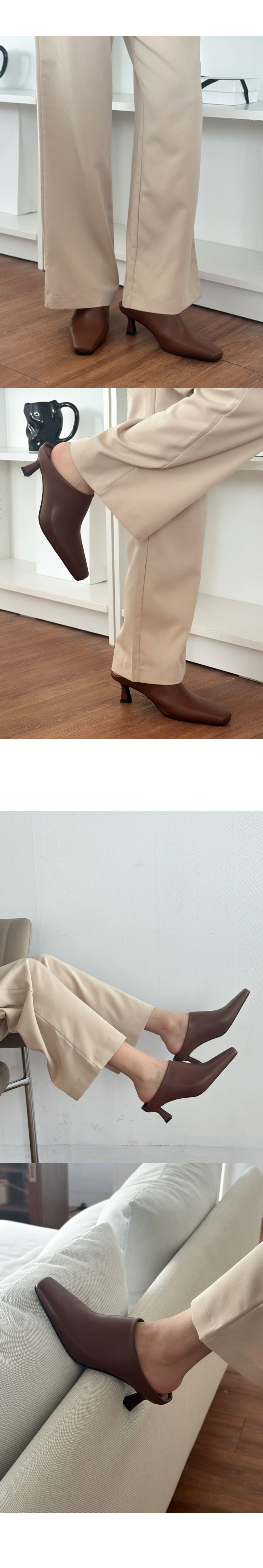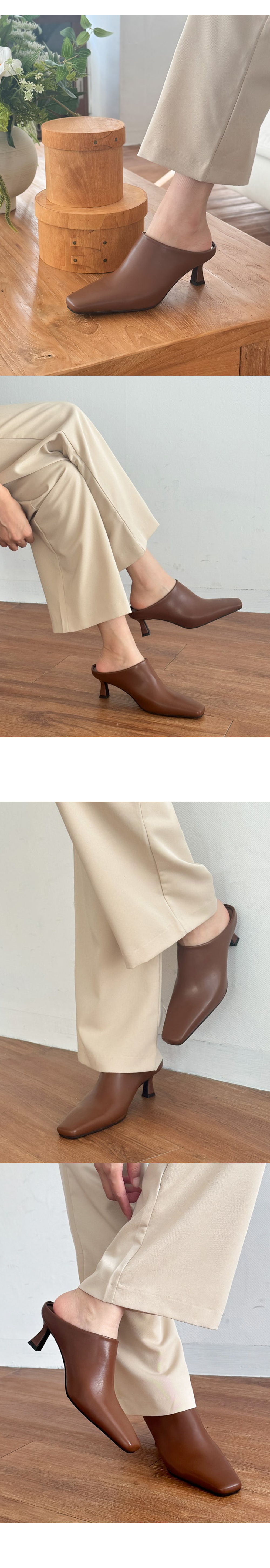 테티 스퀘어 뾰족코 미들힐 블로퍼 키튼힐 뮬 슬리퍼