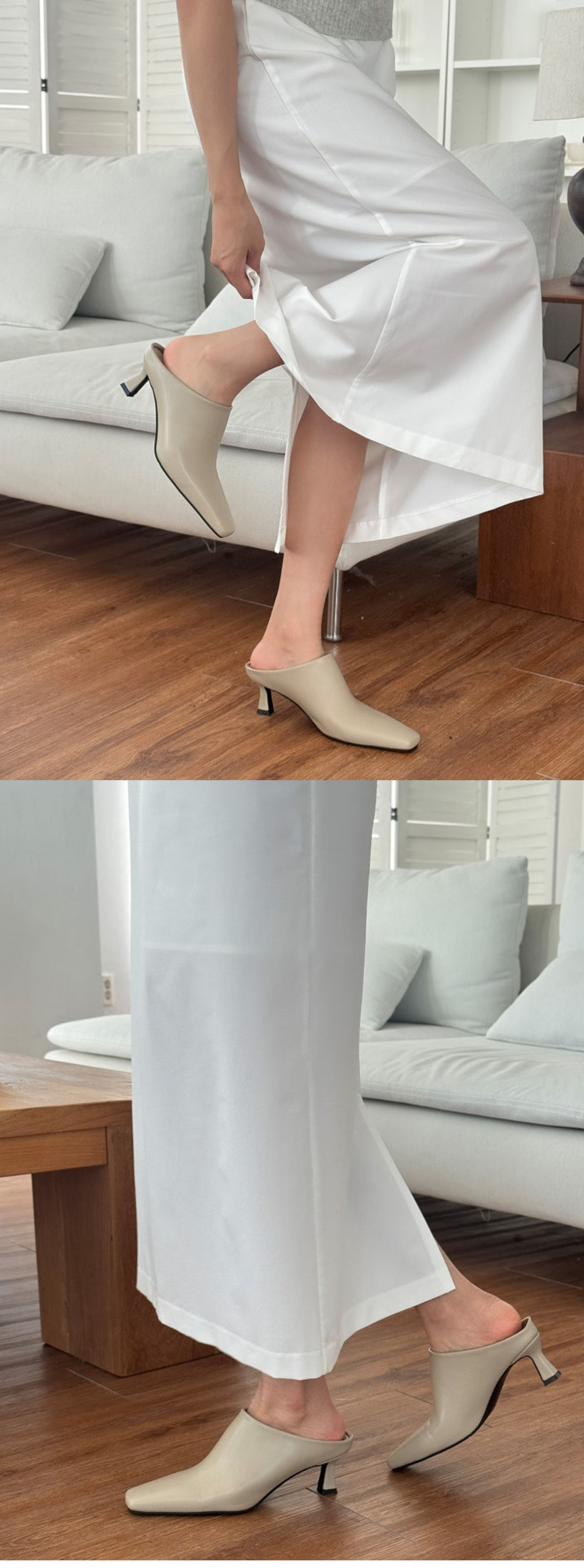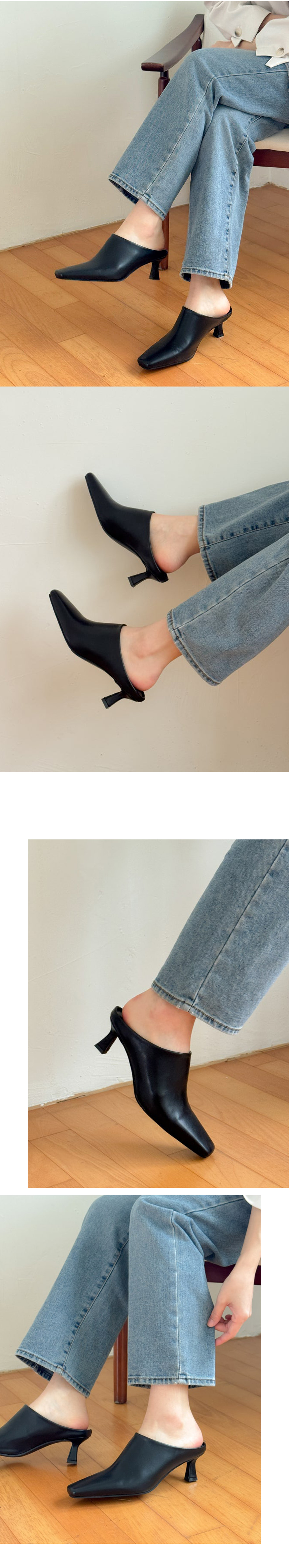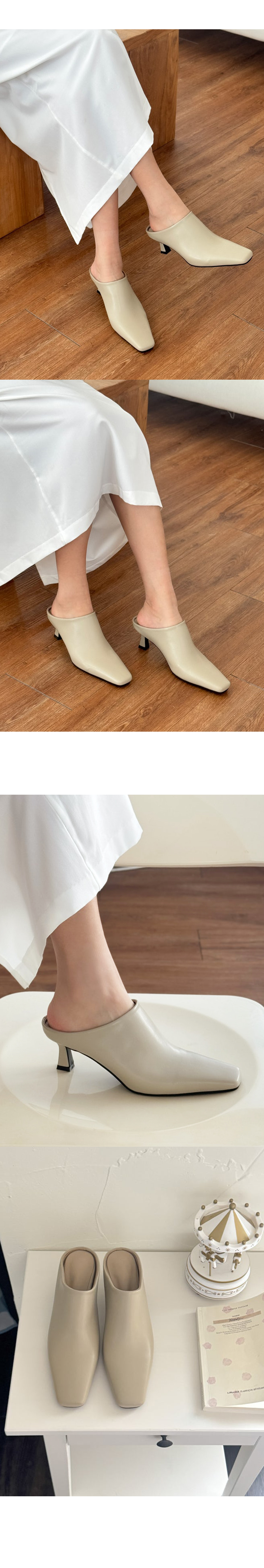 테티 스퀘어 뾰족코 미들힐 블로퍼 키튼힐 뮬 슬리퍼 (5cm)