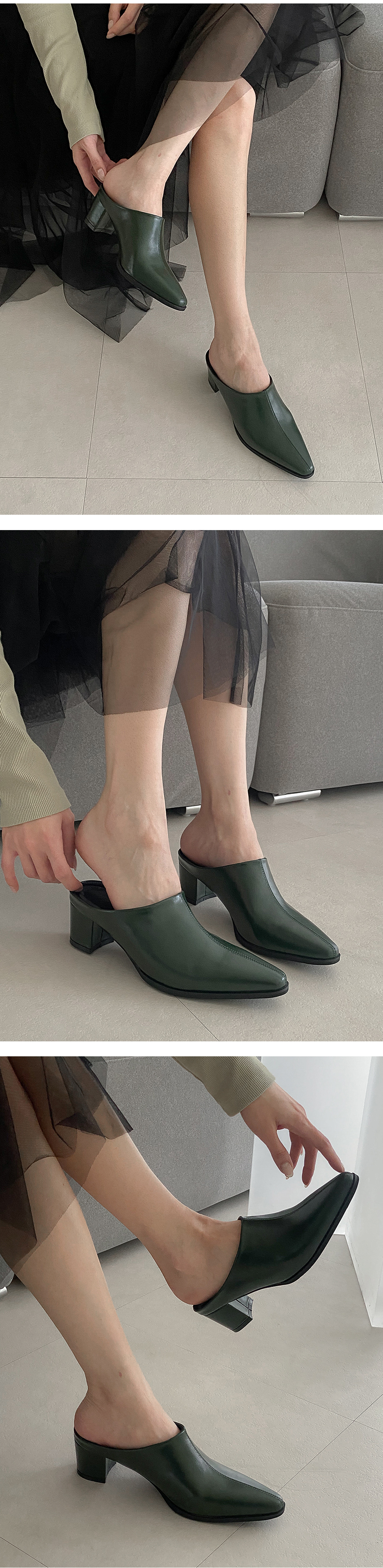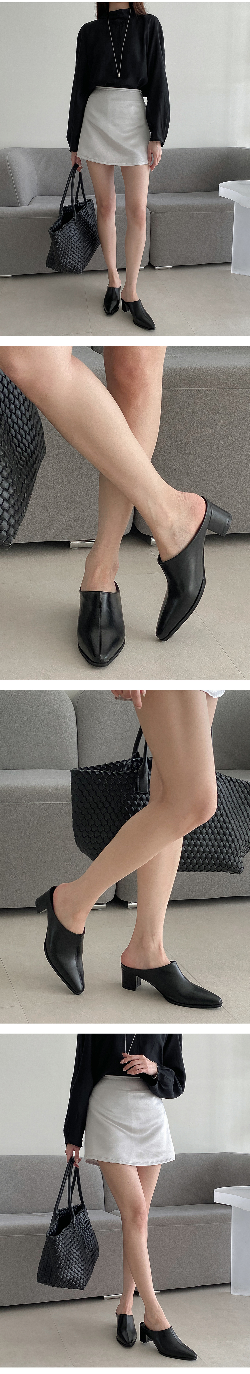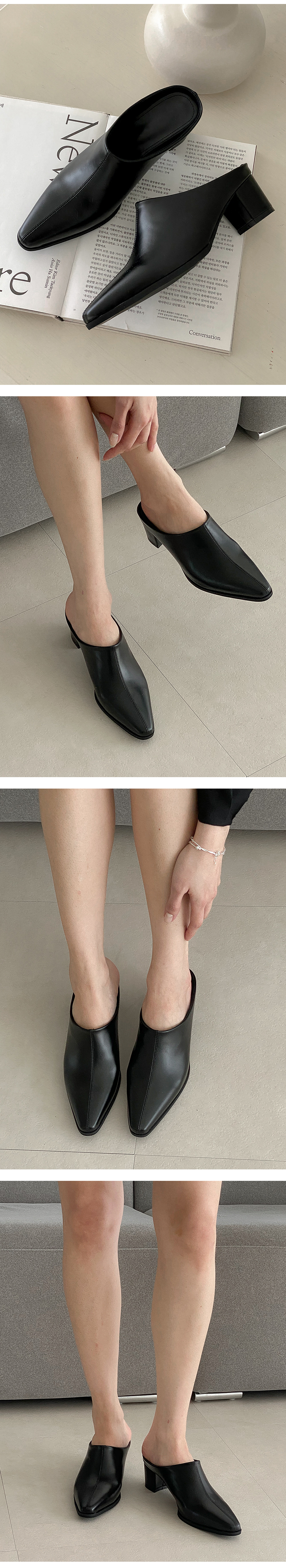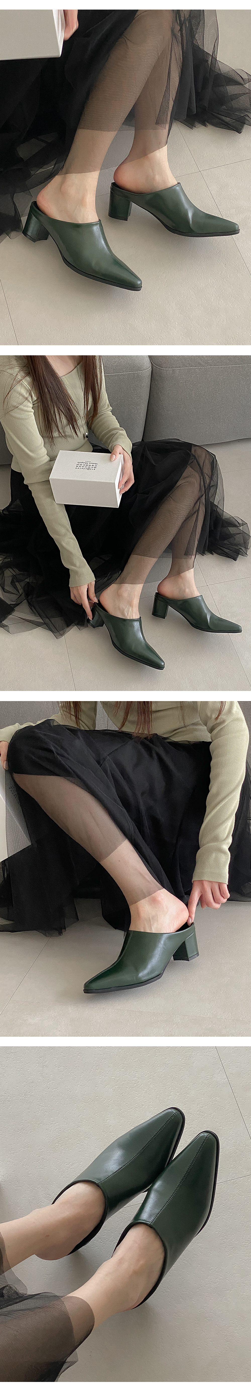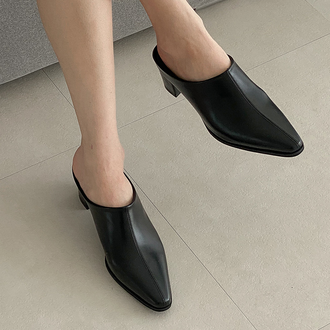 야엘 스틸레토 미들힐 블로퍼 통굽 뮬 슬리퍼