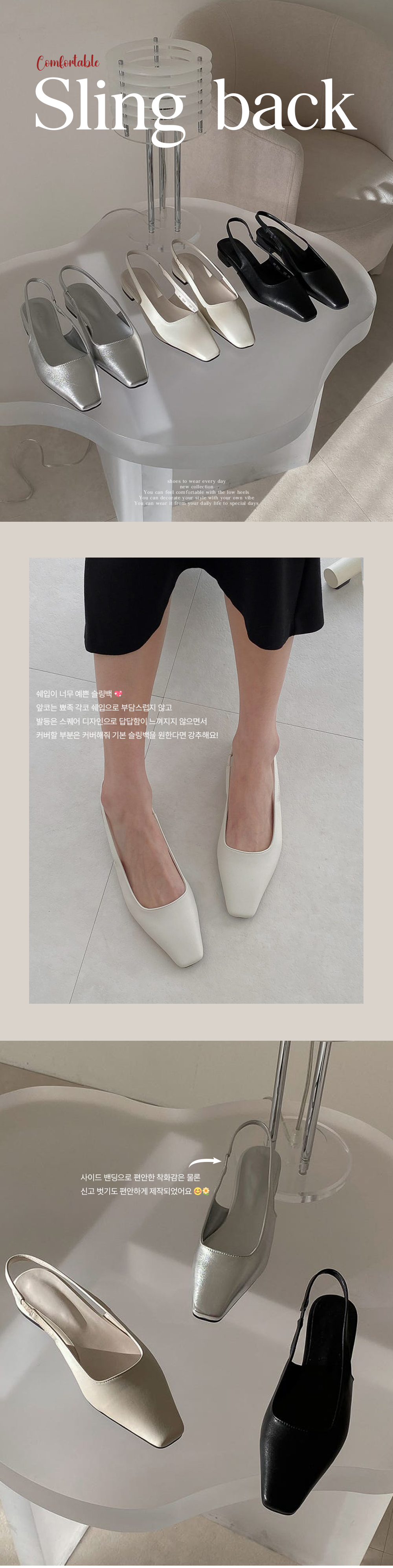 [기본템✨하객룩] 필링 발편한 스퀘어 낮은굽 슬링백