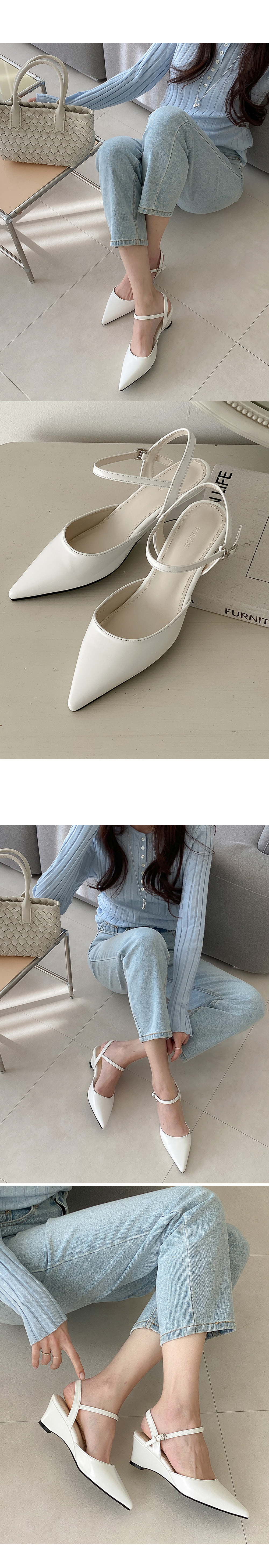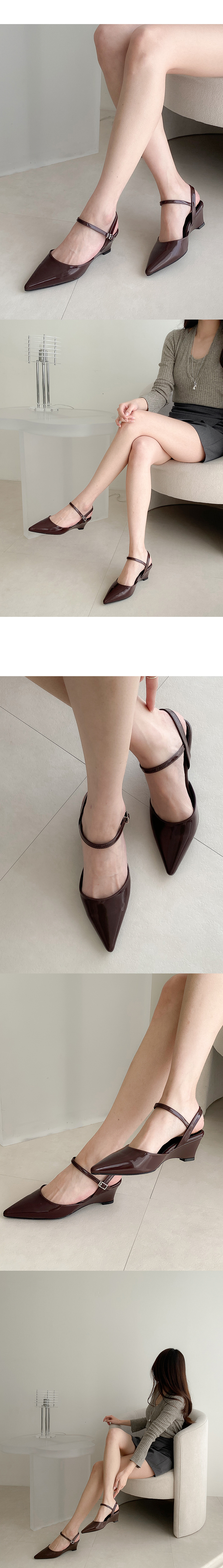 코엔 스틸레토 웨지 미들힐 통굽 메리제인 슬링백 힐