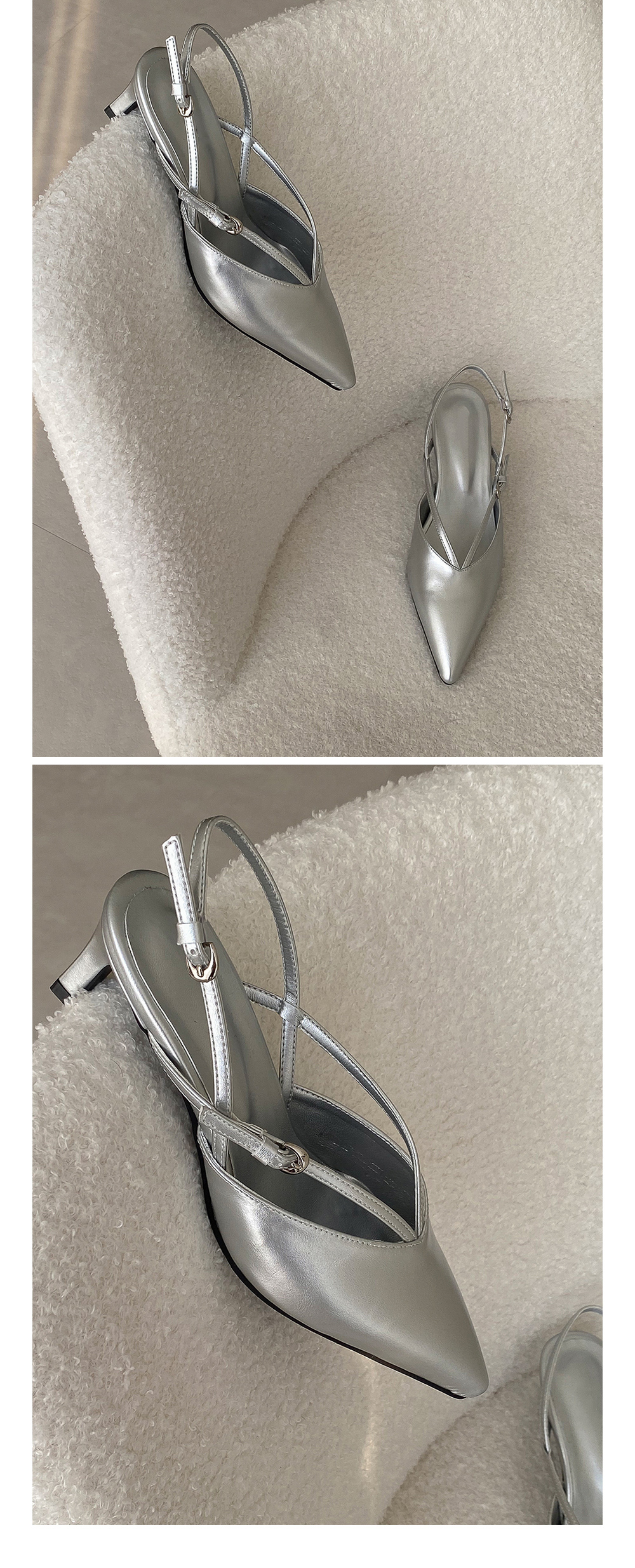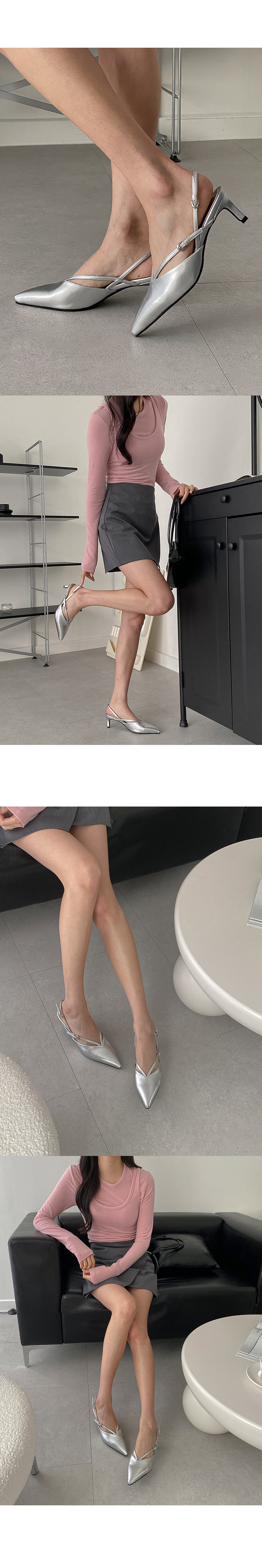 스틸레토 쉐입라인에 감각적인 브이 스트랩으로