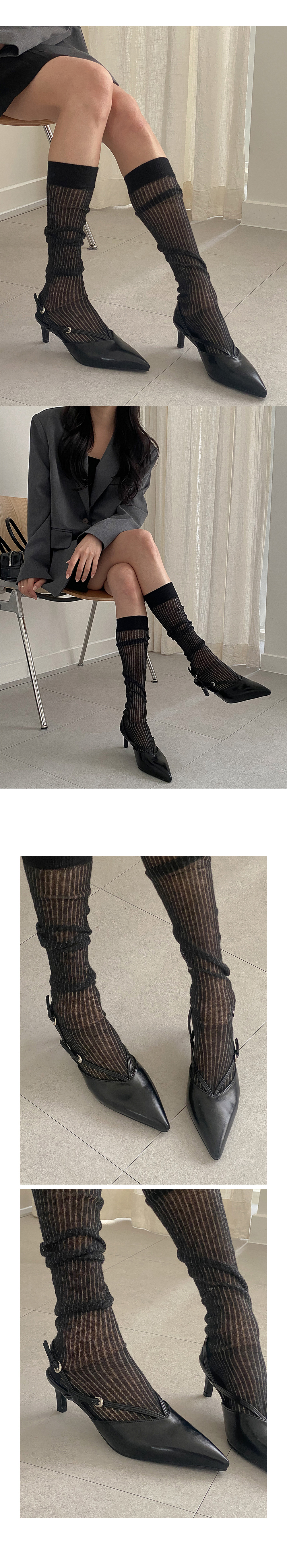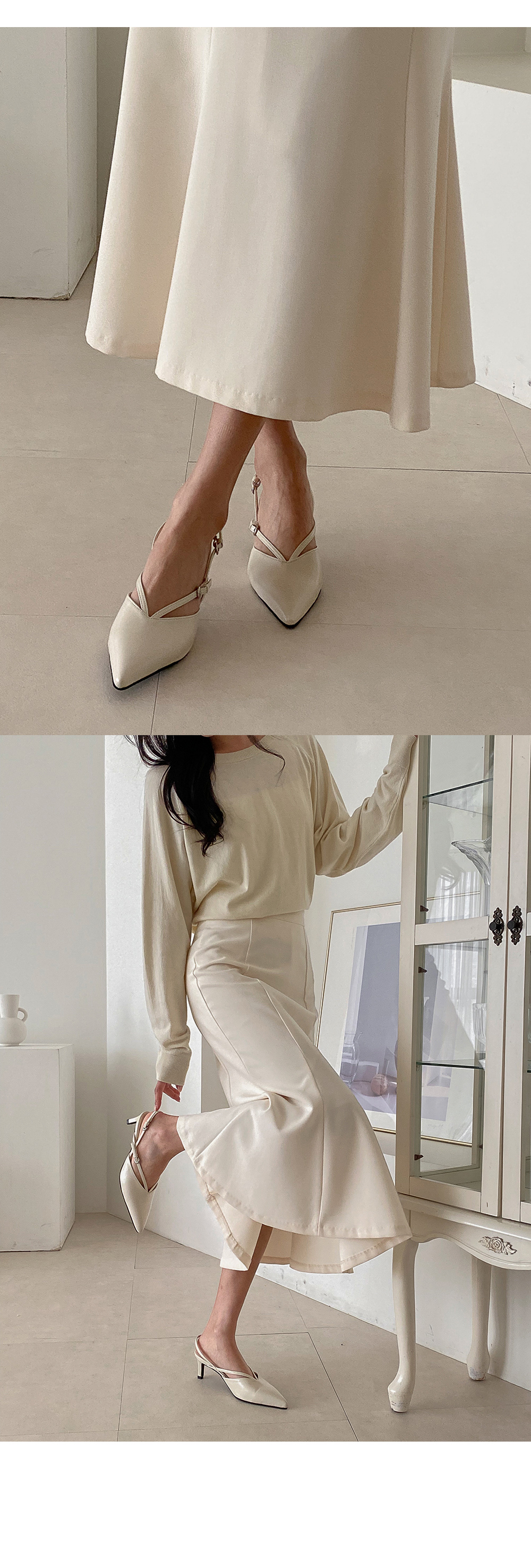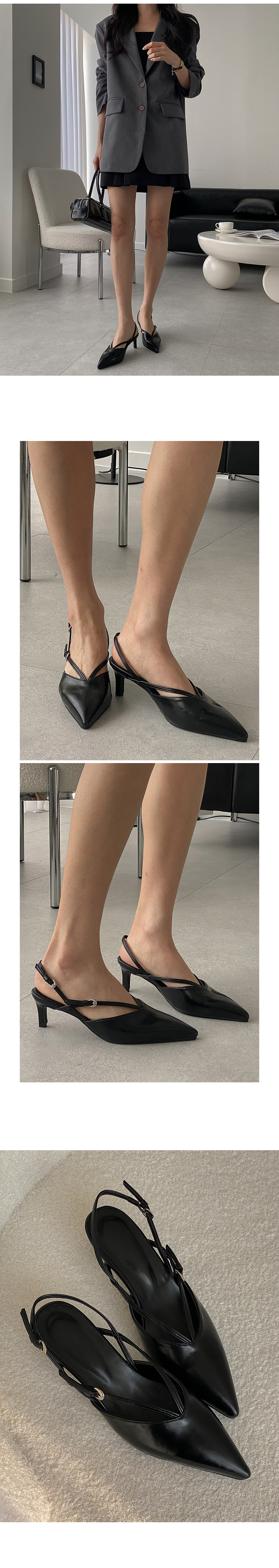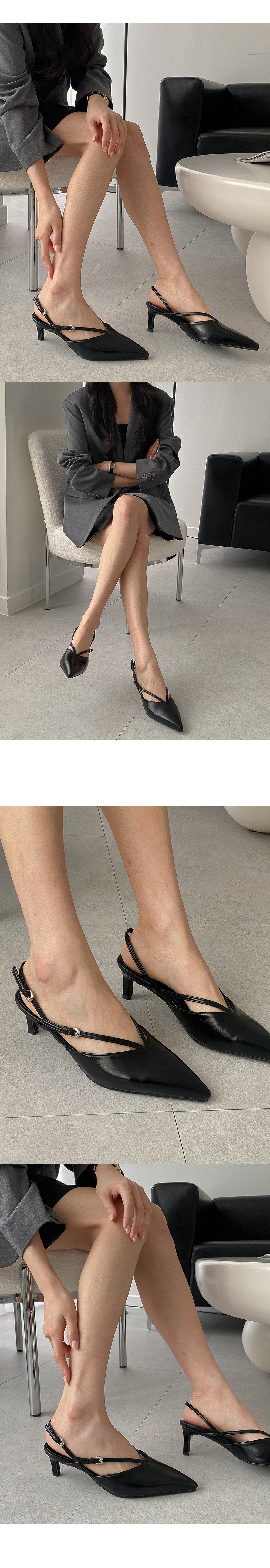 트이 스틸레토 브이 스트랩 키튼힐 미들굽 슬링백 힐