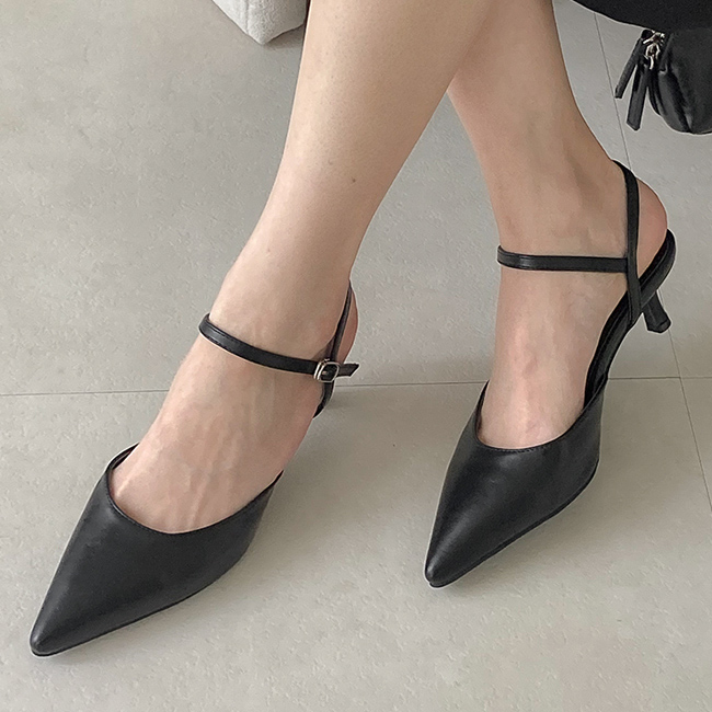 르베트 뾰족 스틸레토 발목 스트랩 키튼힐 미들굽 펌프스 슬링백 힐