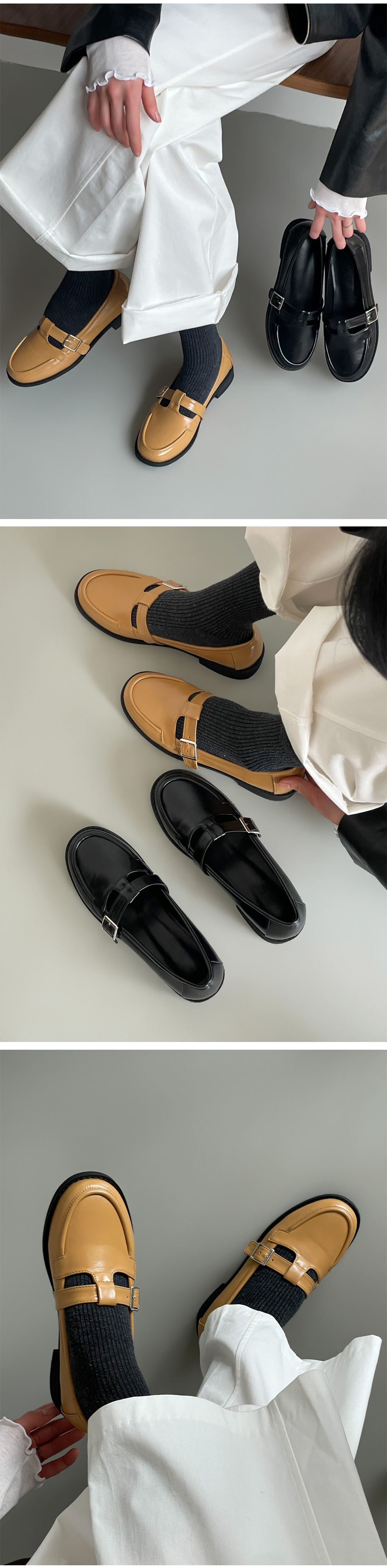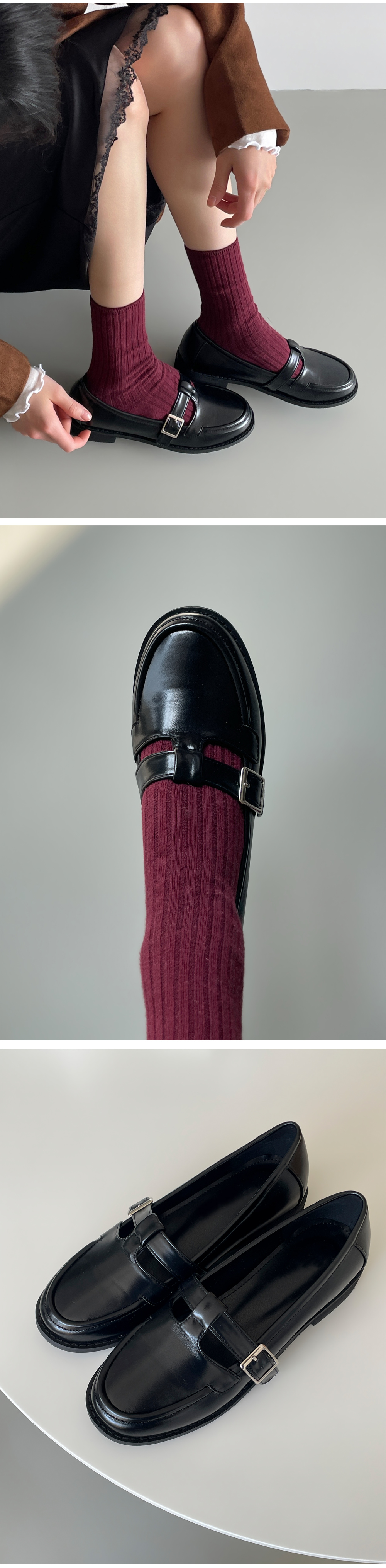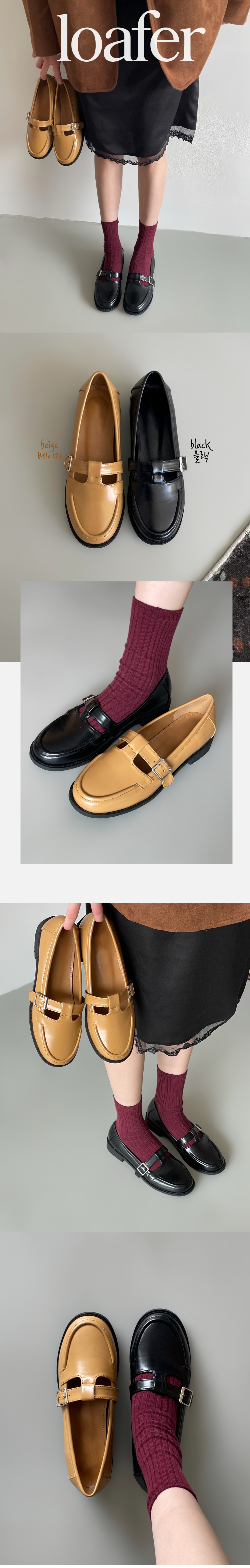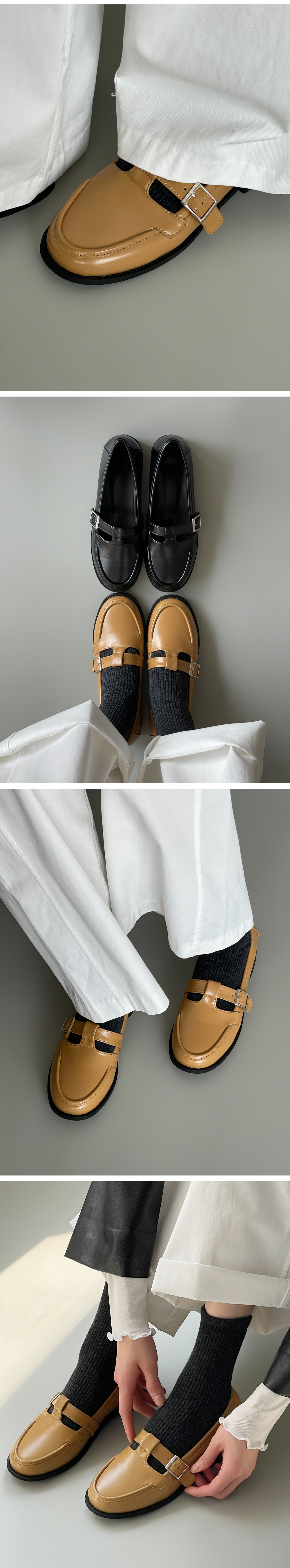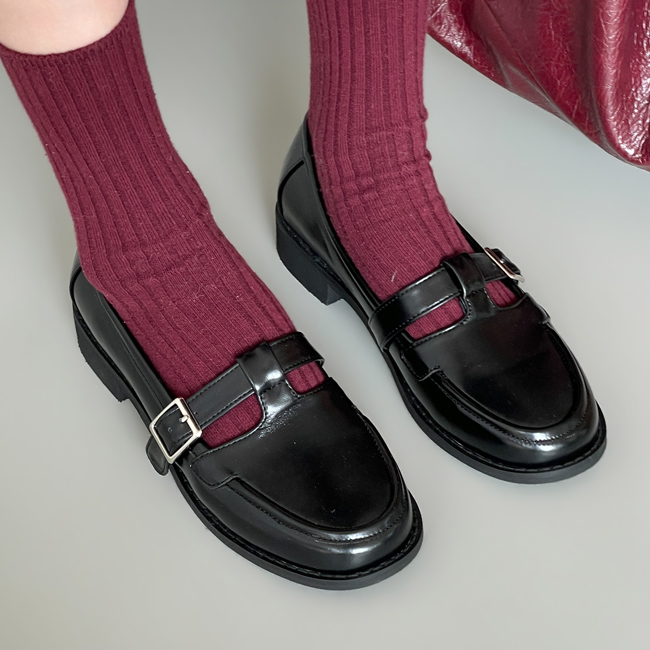 더엔 둥근코 T 버클 플랫 로퍼