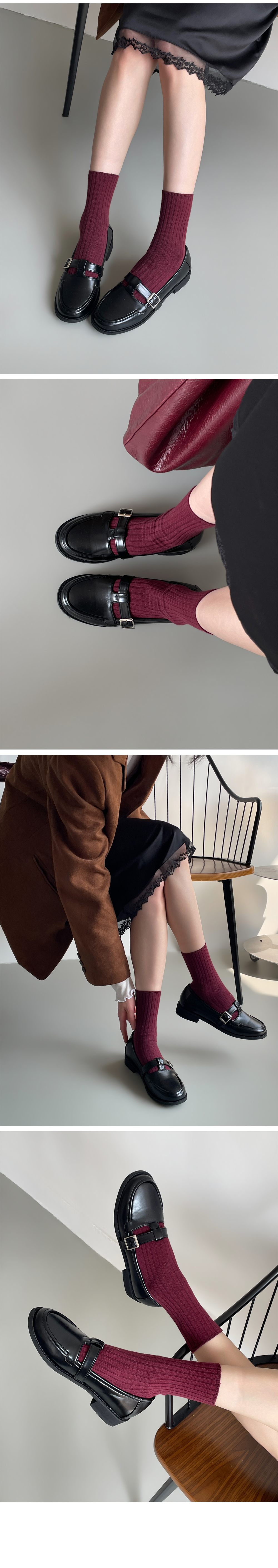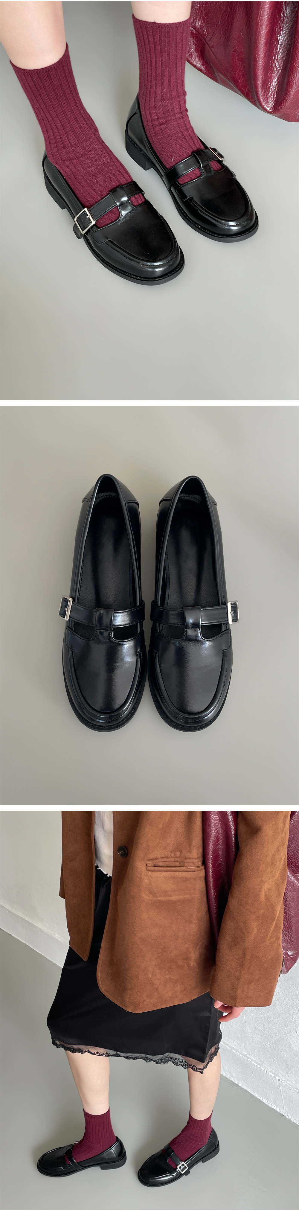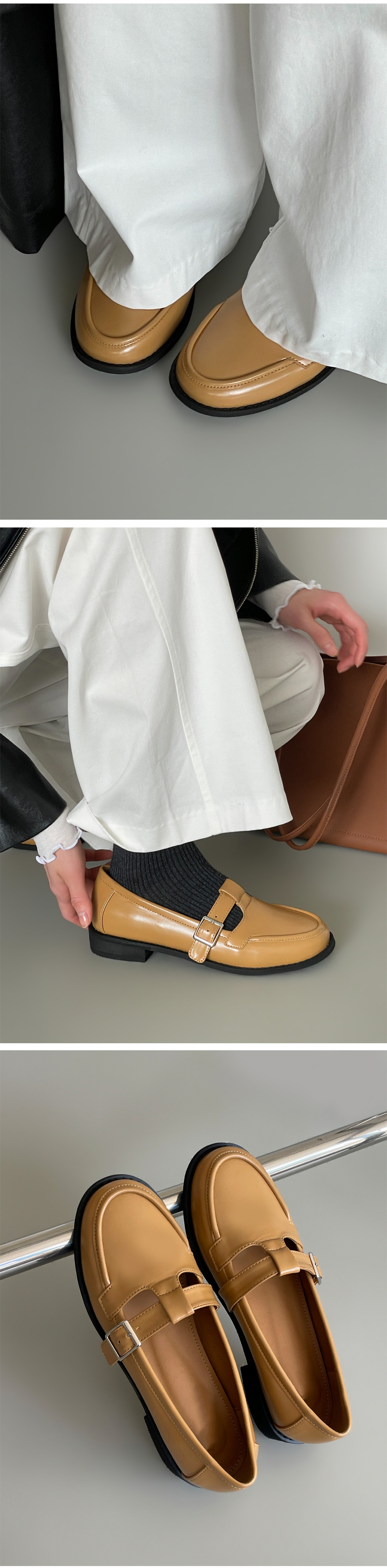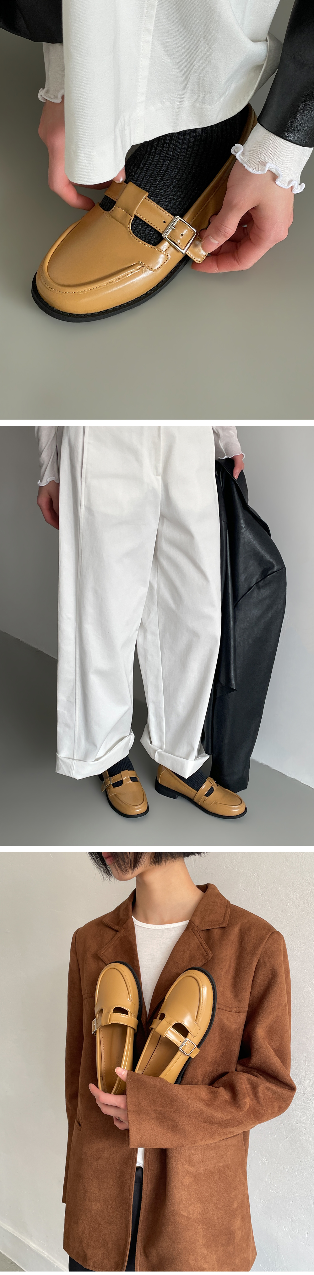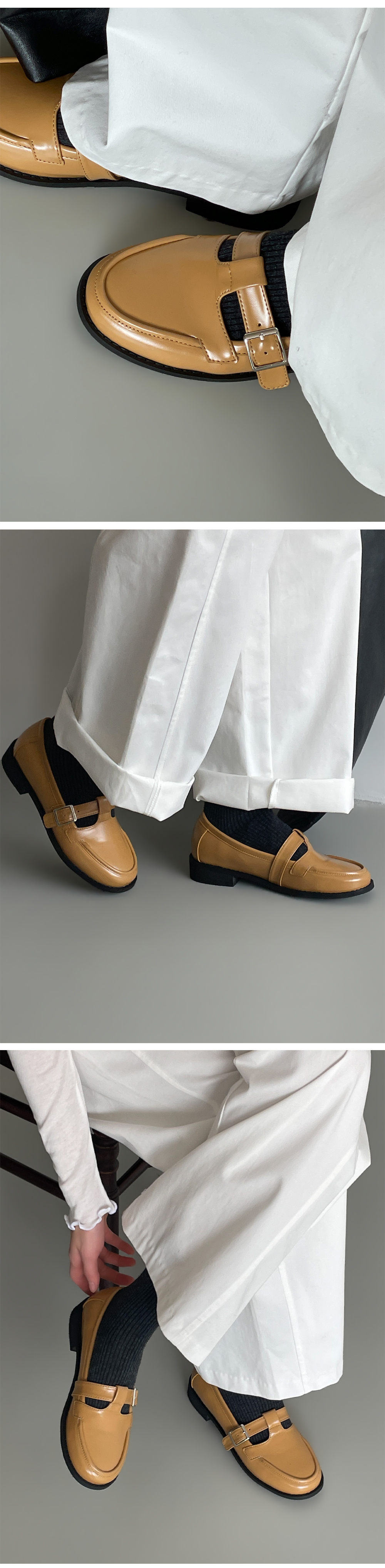 더엔 둥근코 T 버클 플랫 로퍼