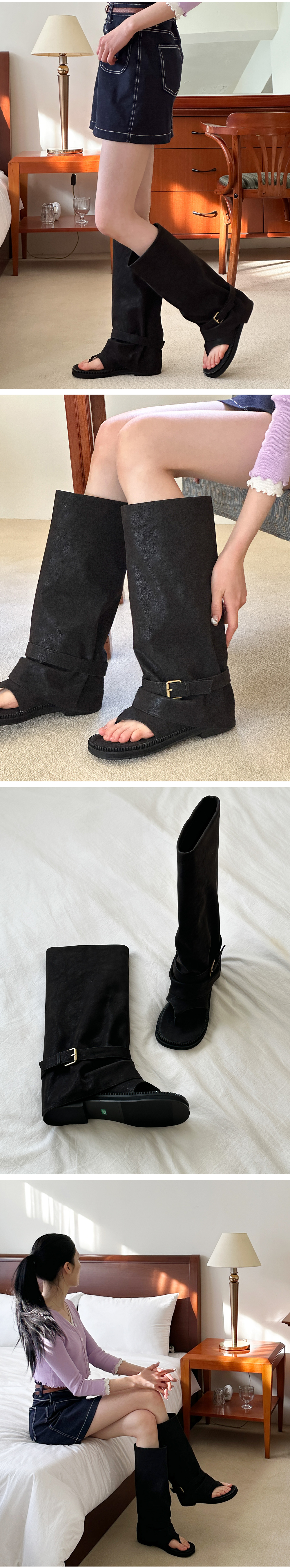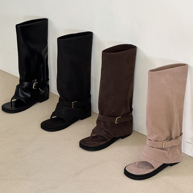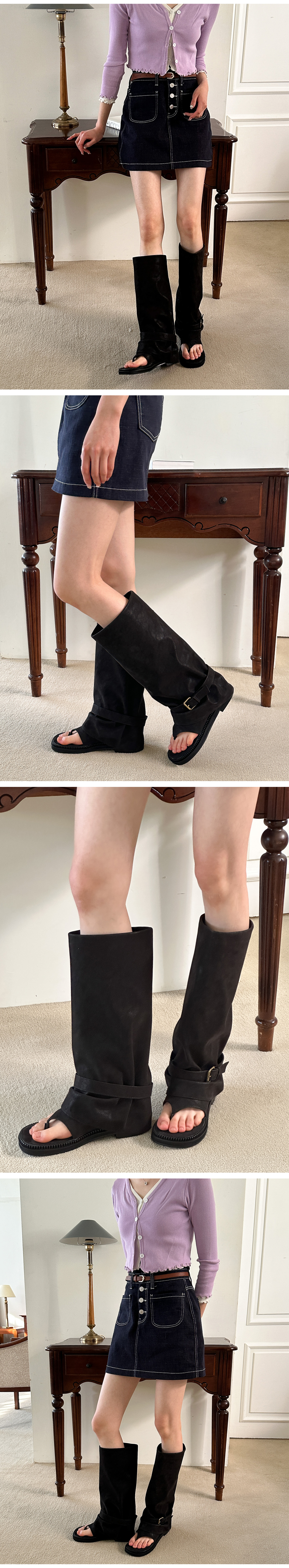 이튼 와이드 레그 워머 폴딩 쪼리 롱부츠