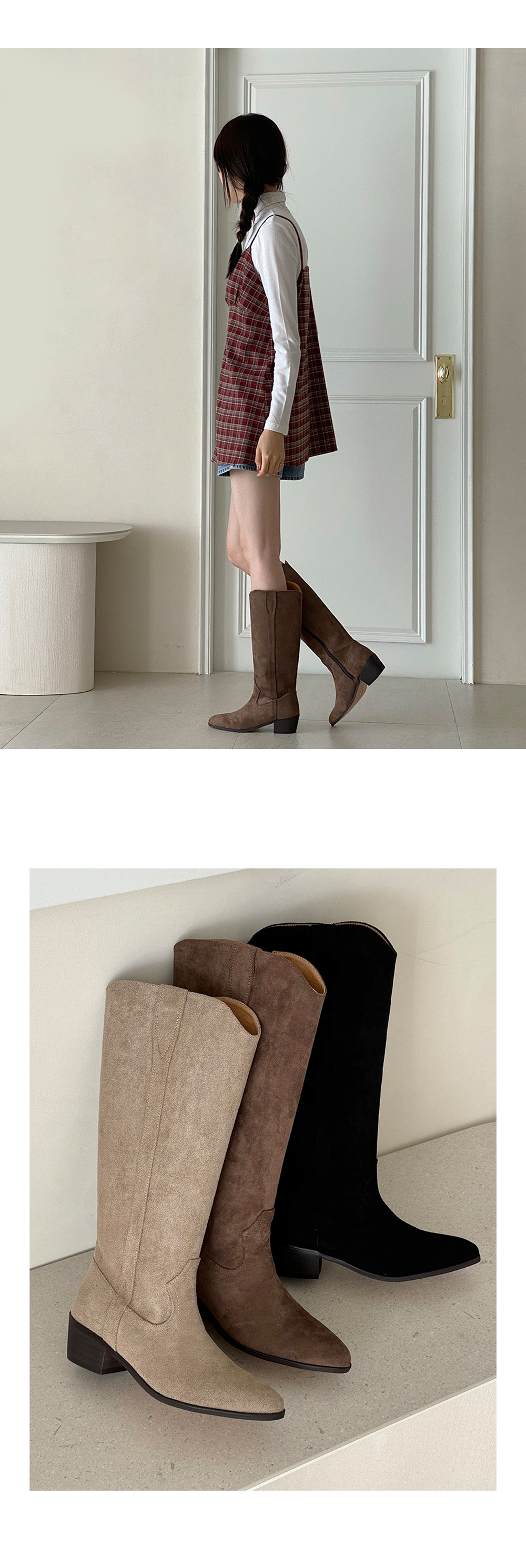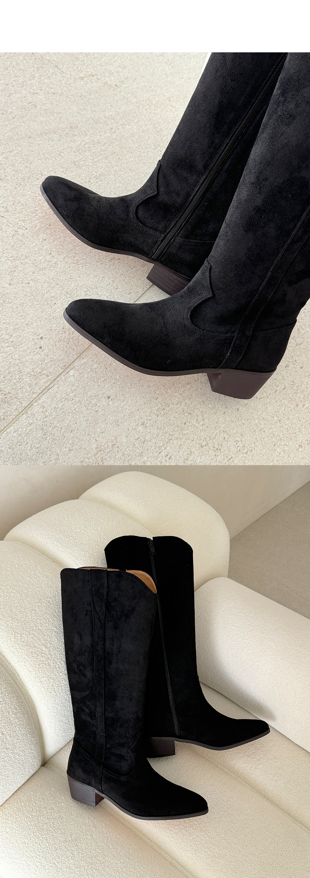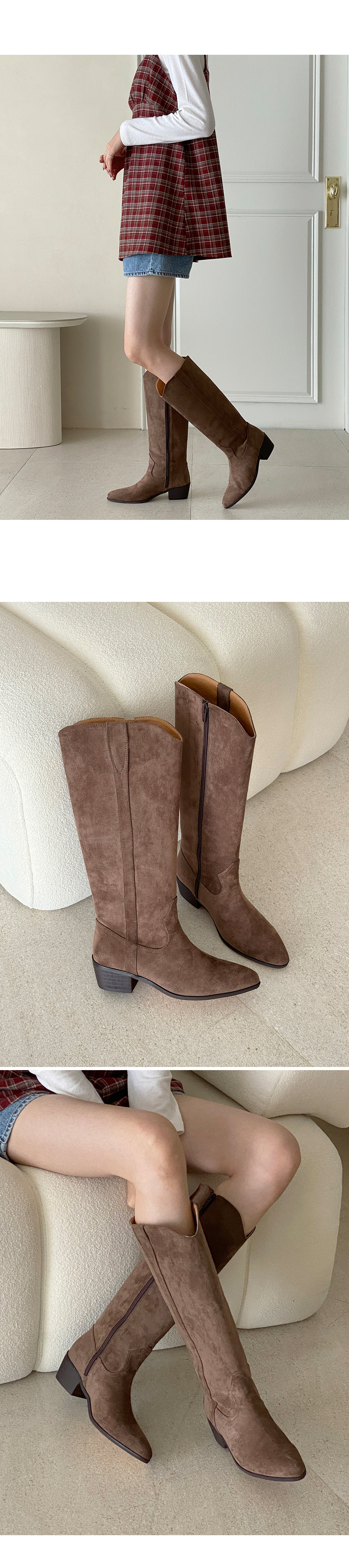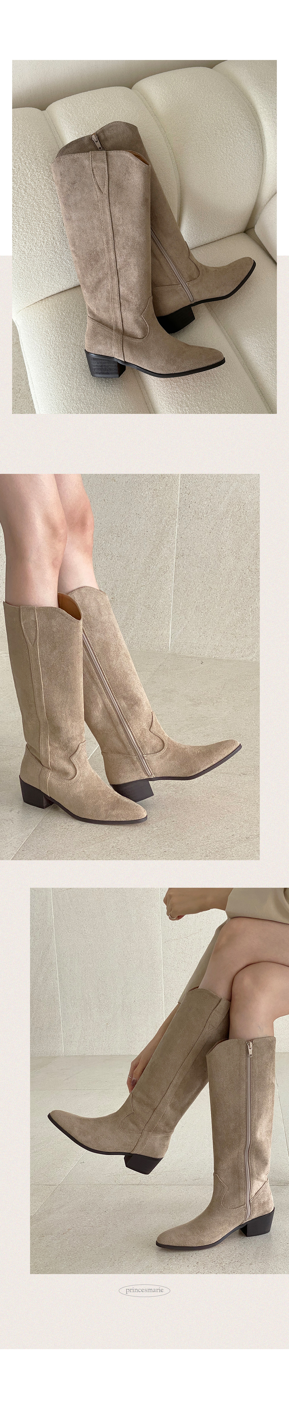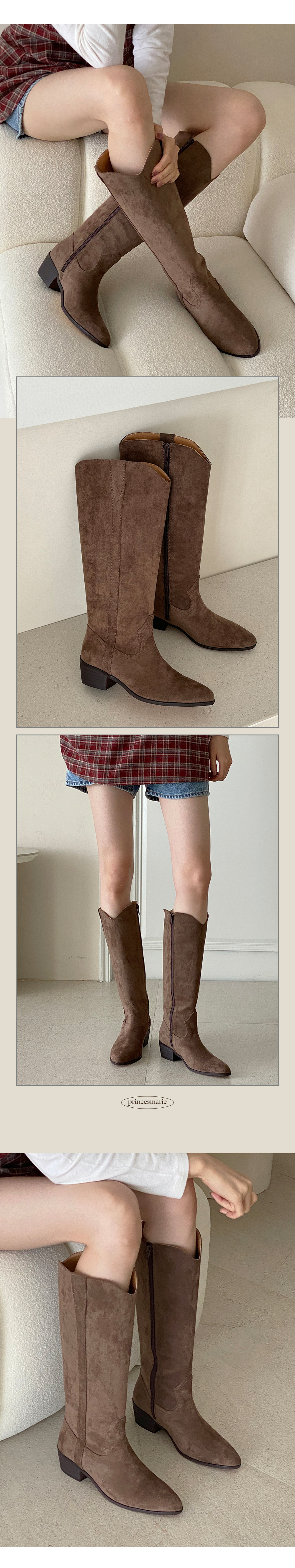 베이던롱 스웨이드 웨스턴 스틸레토 롱부츠