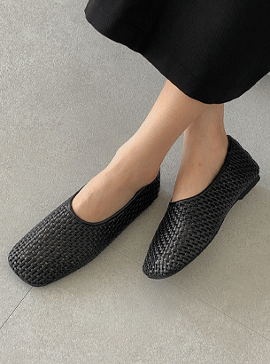 비엔트 착화감좋은 스퀘어 라탄 매쉬 플랫슈즈 (1cm)